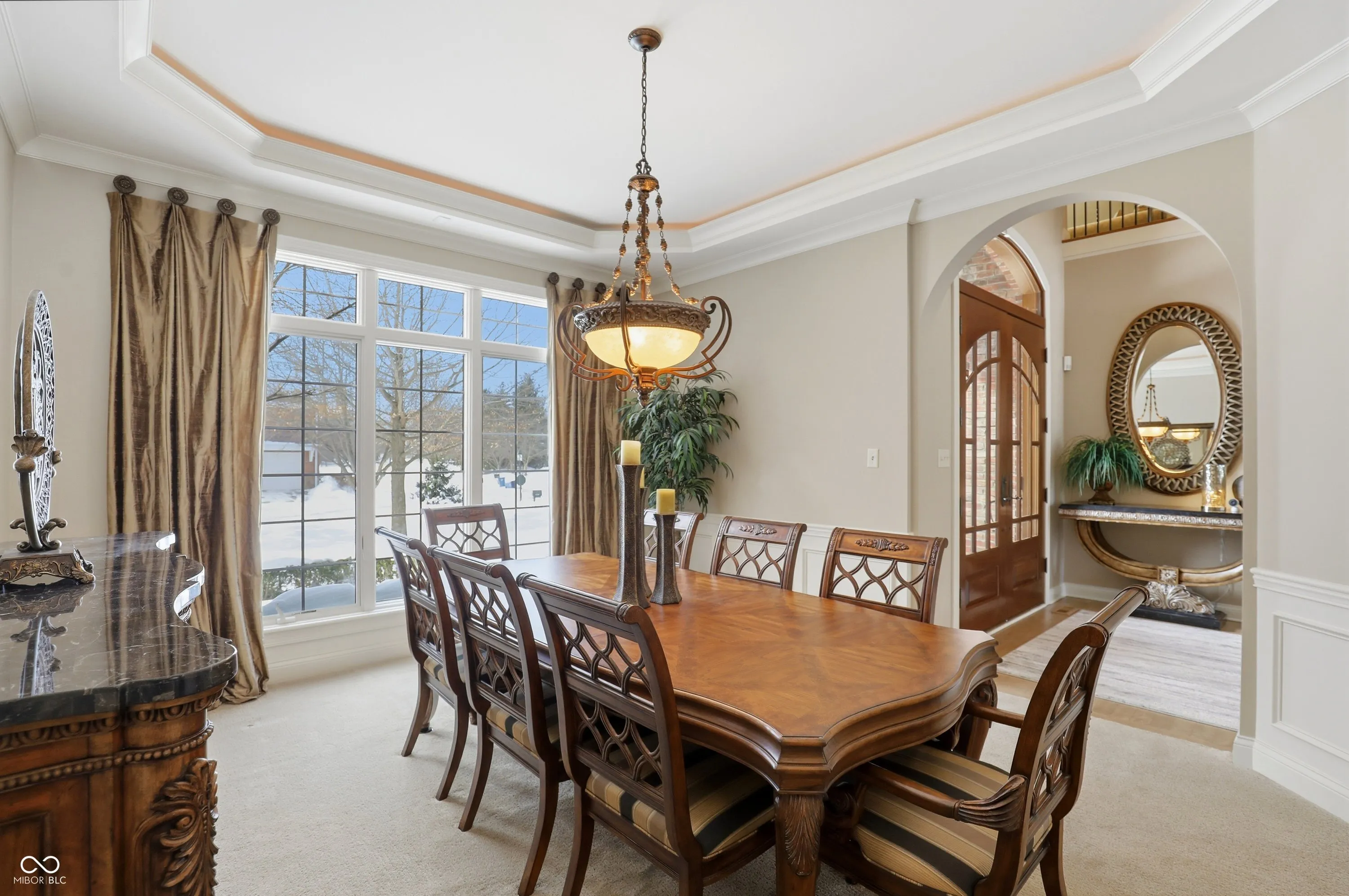 A STEPHEN GOLDBERG designed HAMILTON PROPER masterpiece just hit the market! As you drive through the GATED ENTRANCE you will notice the Hawthorns golf course on each side – COUNTRY CLUB LIVING at its finest! Offering 7400+ sq ft, this custom estate offers BREATHTAKING GOLF COURSE VIEWS, 5 bedrooms, 6 baths, finished WALKOUT BASEMENT, 3 fireplaces, 10′ ceilings on main & upper levels, plentiful storage, 4 CAR GARAGE & an incredible outdoor living space! The main level features a 19′ tall entryway, stately office w/wood paneling, custom built-ins & glass doors, a 15′ long elegant dining rm w/access to the kitchen through a butlers pantry, an inviting great rm w/14′ ceiling, wall of windows & beautiful gas fireplace, a hearth rm w/gas fireplace & open to a expansive chef’s kitchen w/WI pantry, high-end appliances (many BOSCHE), a 13′ center island & breakfast nook w/access to a cozy sunroom w/18′ ceiling & leads to a covered patio w/retractable screens, fireplace & TV! The main level also includes TWO half bathrooms + a mud room w/lockers & convenient work station! The upper level features a loft, 19×18′ owners suite w/11′ ceiling, a stunning spa bath w/dual vanities, jetted tub, WI shower w/dual heads, double tray ceiling & 14×11′ WI closet w/center island! The upper level also boasts 3 oversized secondary bedrooms, each w/10′ ceilings, WI closets & access to a full bathroom. The WALKOUT basement was built to entertain, offering a family rm w/built-ins, fully equipped bar, wine closet, card/game space, billiards rm (leads to an outdoor patio), 20×15′ exercise rm w/10′ ceilings (perfect space for a golf simulator), 5th bedroom, full bath & 23′ utility/storage rm! The main level outdoor living space features a 27×16′ patio w/grilling station & sink! A short walk/bike ride to the Hawthorns Country Club & close to shopping, dining, schools, parks, the interstate & more! Roof & both HVAC units replaced within last few years.