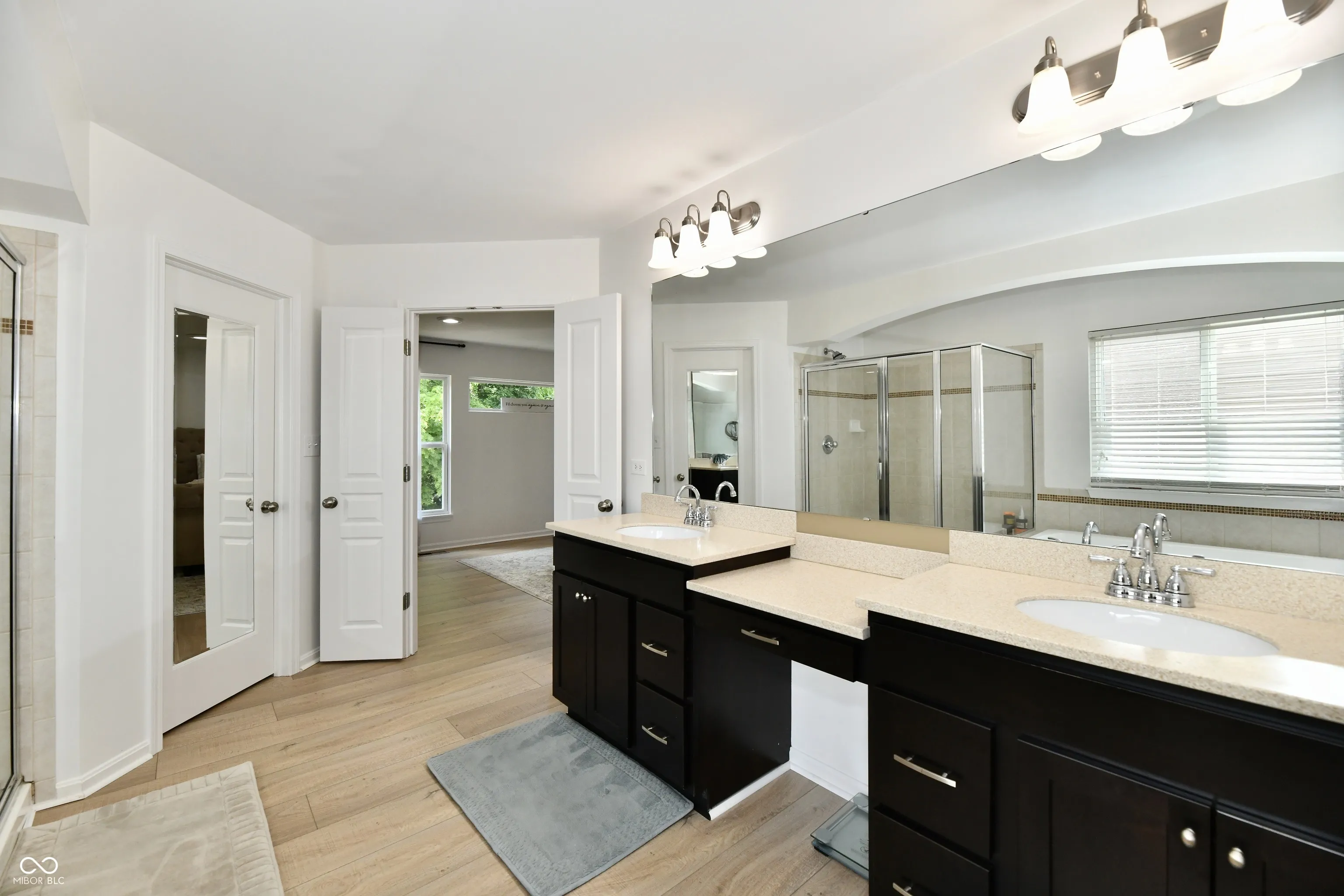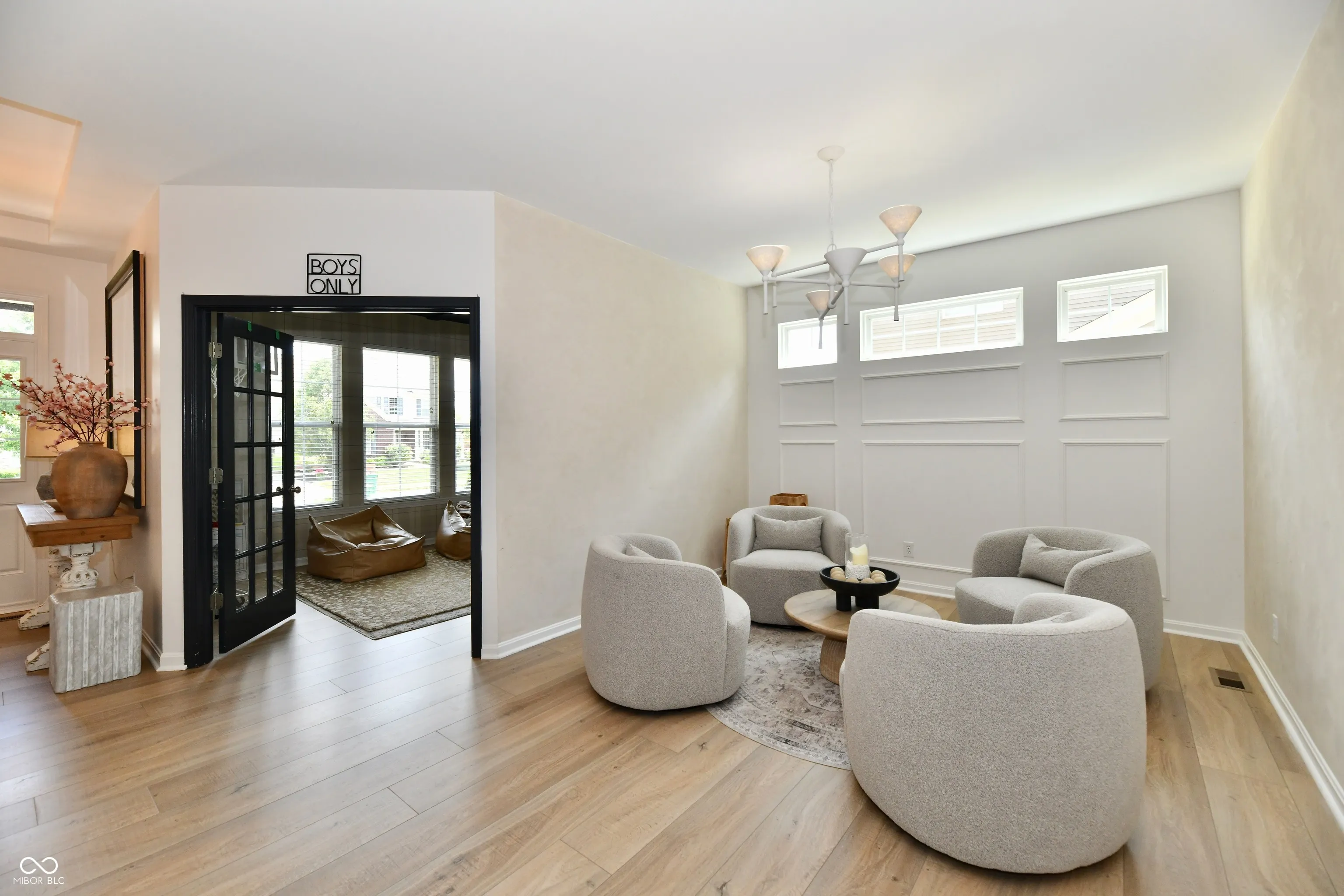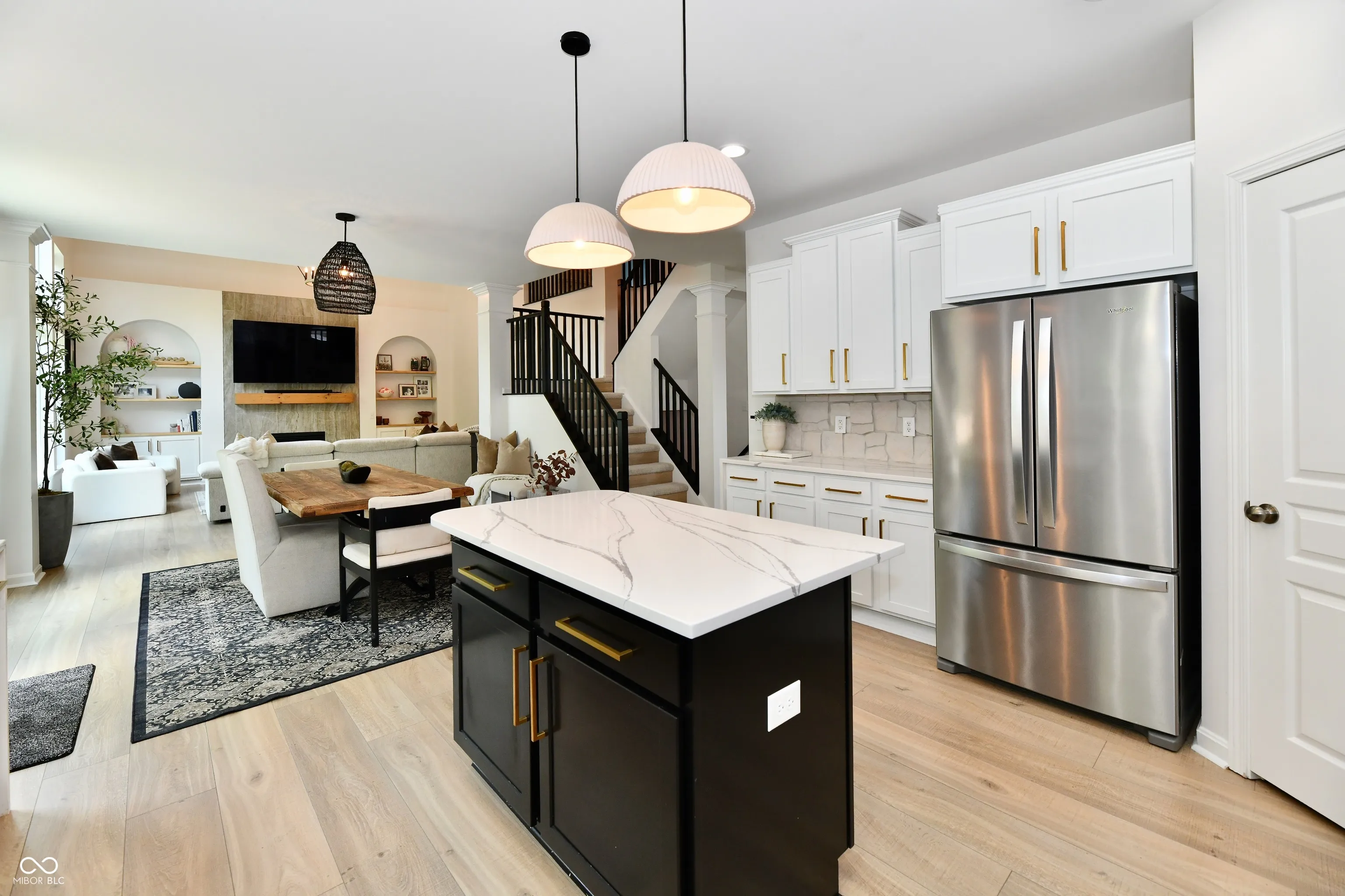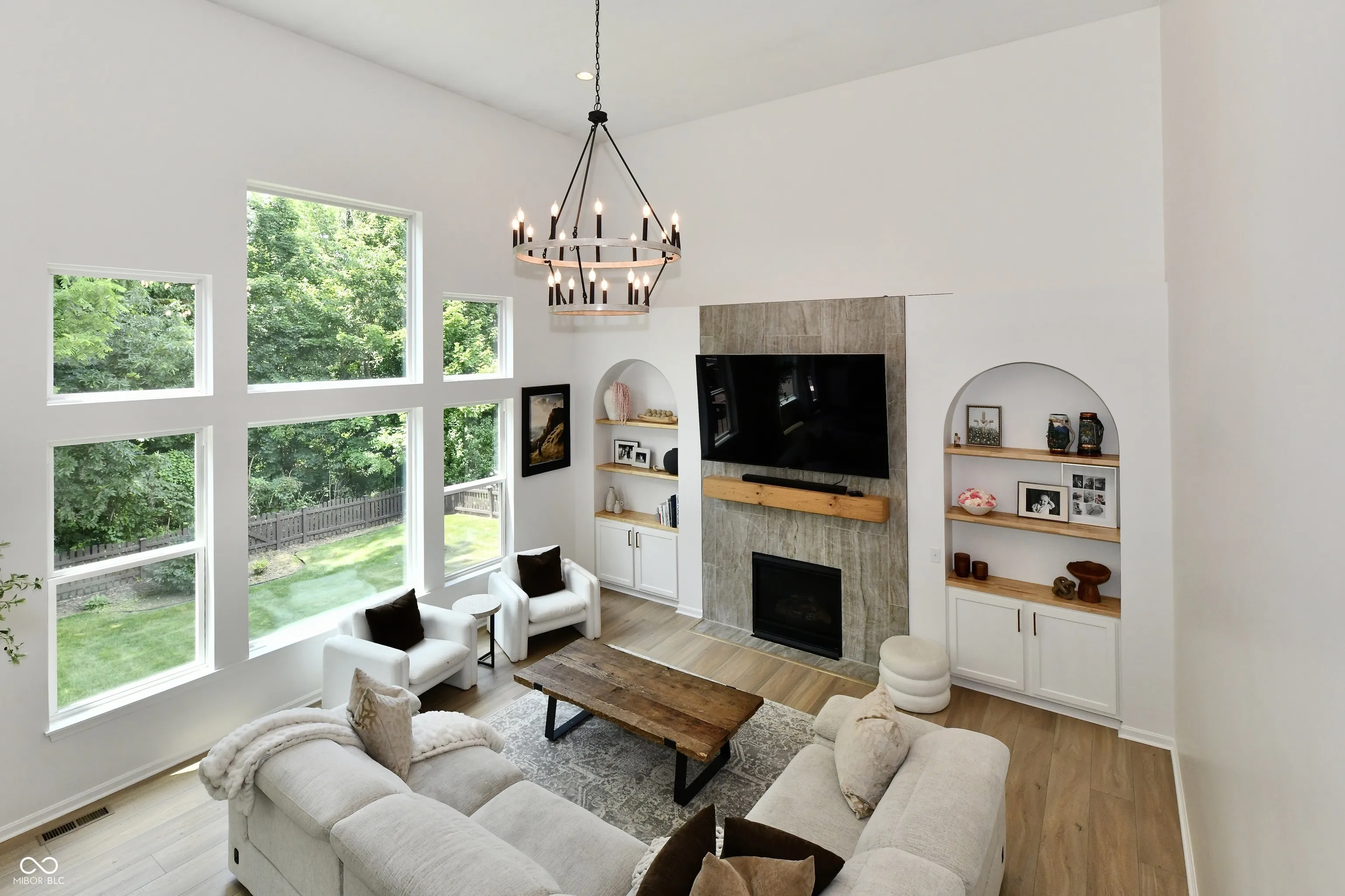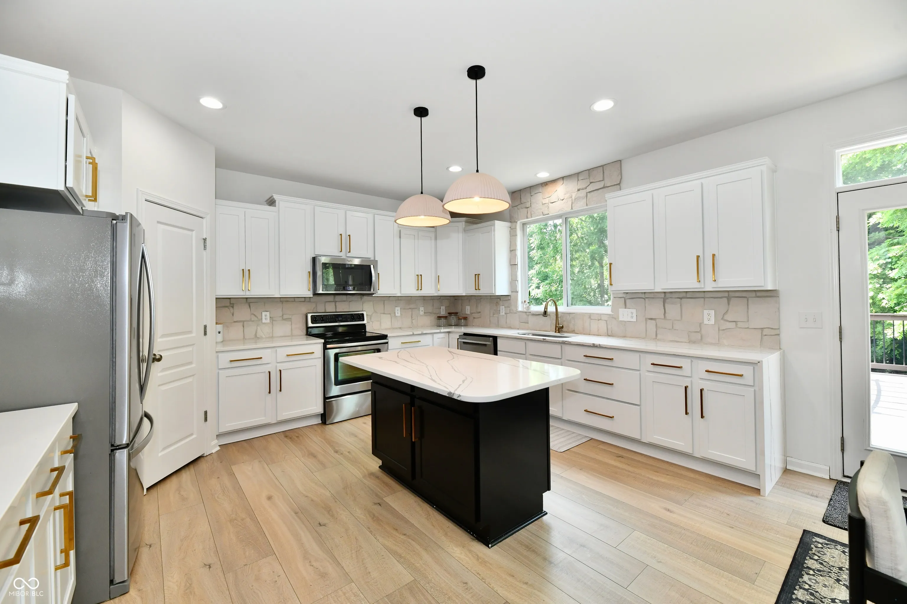The owners of this Fischer built home have spared NO expense in updating this beauty to make it the designer home you are dreaming of! Upon entering the foyer you will notice the high end white oak LVP flooring that extends throughout the ENTIRE home! The private office is no bore w/ French doors & sophisticated designer wallpaper! Next, you’ll find the dining/ flex room with transom windows and textured accent walls! The kitchen is a DREAM with quartz countertops including a waterfall finish, real stone backsplash ( which is SUPER COOL) a generous island, updated sink, hardware and faucet and French Door fridge. Adjacent is a very spacious dining area that opens to the deck/ backyard of your dreams with a covered pergola and tons of entertaining space overlooking the tree-lined yard! The highlight of this home is the spectacularly designed 2 story Great Room flooded with daylight, beautiful tile accent wall with wood mantle flanked by designer, arched bookcases! There is a corner overlook from the upstairs landing that adds a special charm to the space! The spectacular lighting adds even one more element of design to the main floor living areas! Upstairs, all rooms are the right size, including he primary suite with double door entry, spacious bath with walk-in shower and soaking tub. Laundry is also up! Walk-out Lower level was recently professionally finished and includes full daylight Bedroom #5 as well as a full bath, and Sauna! Whole house has been repainted, New HVAC in 2025, Tankless water heater 2025, New Flooring throughout, Full house water Filtration system, half bath remodel, Attic heat guard and insulation, New Garage Door motor, GR Wall built-ins! AND.. Fully Fenced Private YARD! Neighborhood pool, basketball, tennis, playground!