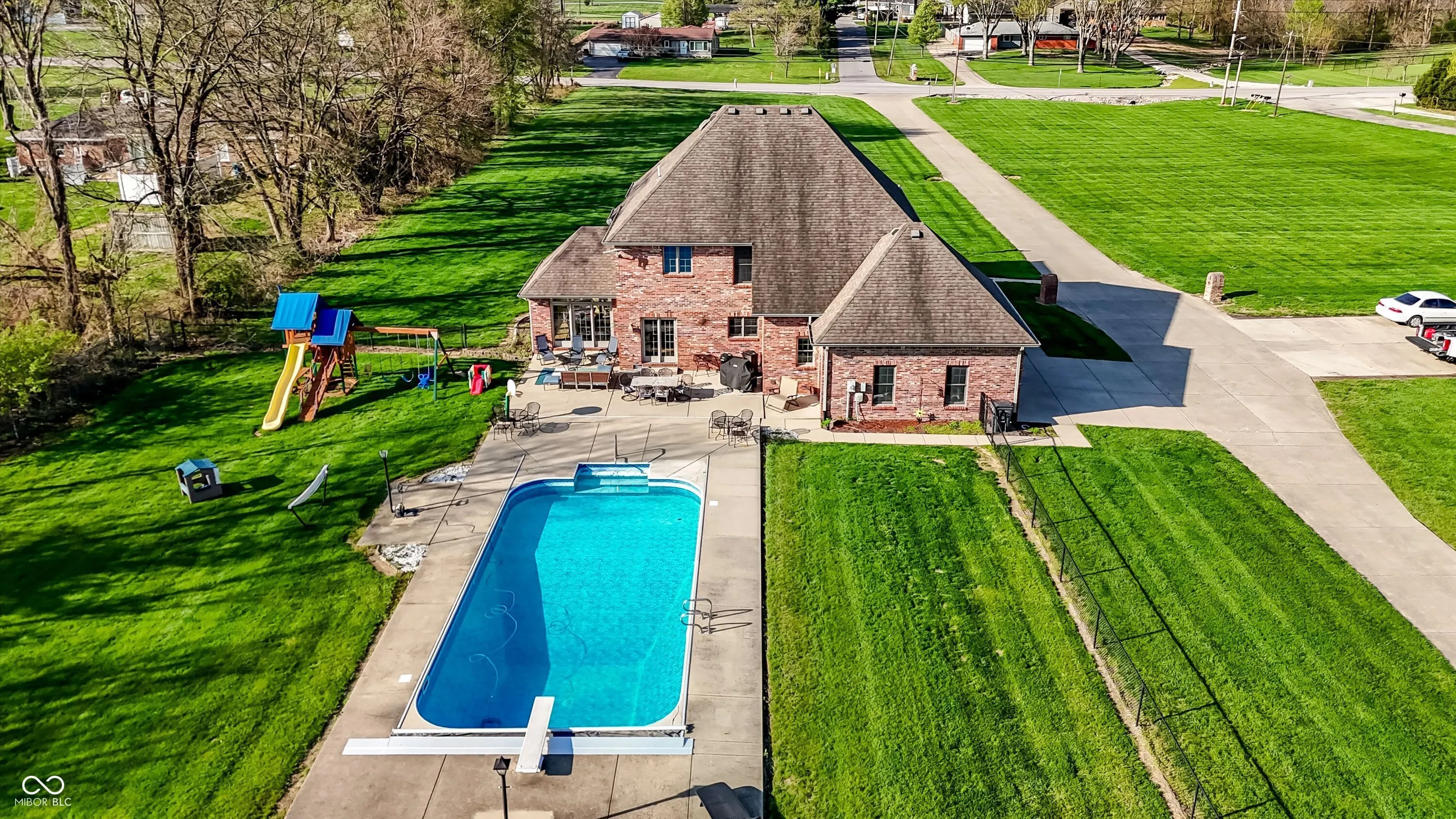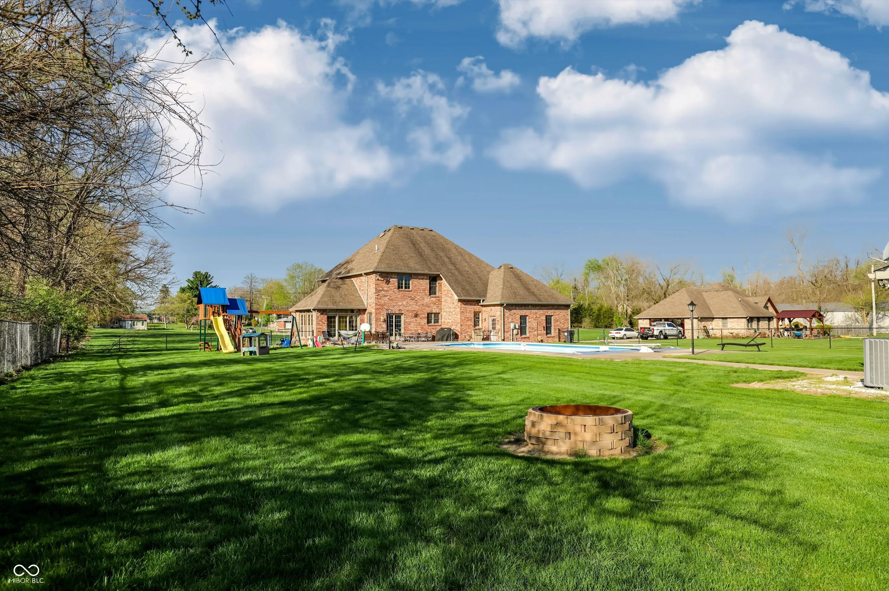 Custom home on 1.5 acres with fenced yard and resort-style outdoor living. Enjoy a large in-ground saltwater pool, large patio, and pool house with new HVAC, full bath, and wet bar-perfect as a guest suite, bonus room/game room. The home offers 4 bedrooms and 3.5 baths, including a primary suite with two closets and a private bath, plus a secondary bedroom with adjoining bath. Interior features include a formal dining room with cathedral ceiling and abundant windows, a formal living room with gas fireplace, and a large family room ideal for entertaining or home office use. Additional highlights include a 2-car attached garage, 1/2 detached garage with air compressor, floored attic storage, storage under the stairs, and a playset and basketball goal that will convey with the property. A rare property offering space, flexibility, and great indoor-outdoor living.