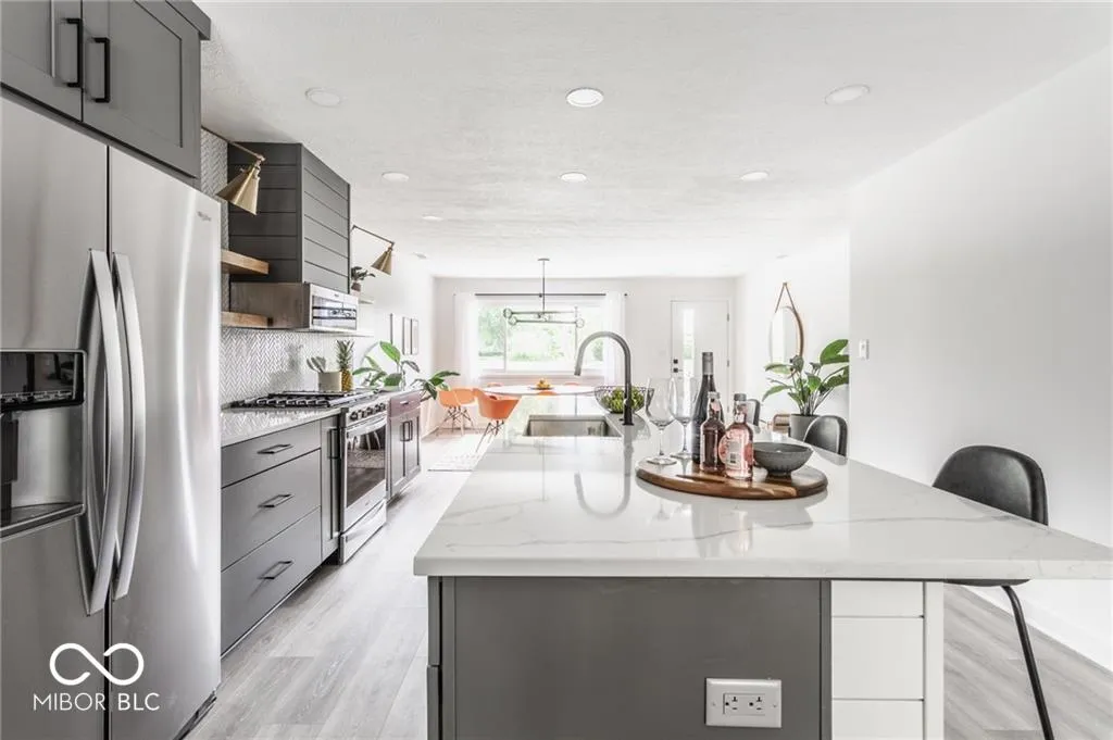 INCREDIBLE opportunity to live in a thoughtfully designed, completely renovated home, just steps from Carmel’s charming Midtown / Arts + Design District and Monon Trail. Rare 4 bed, 2 bath home including gorgeous modern finishes, a spacious backyard, 3 garage spaces + storage shed, NEW concrete driveway, patio, pergola and landscaping. No stone left unturned, this house is fully ready to become a haven and home. Attached garage and over-sized detached garage plus shed makes storage a breeze. In between builds but want something excellent? New to town and want to be walkable to all the action? An executive that wants something nice? You’re in luck!