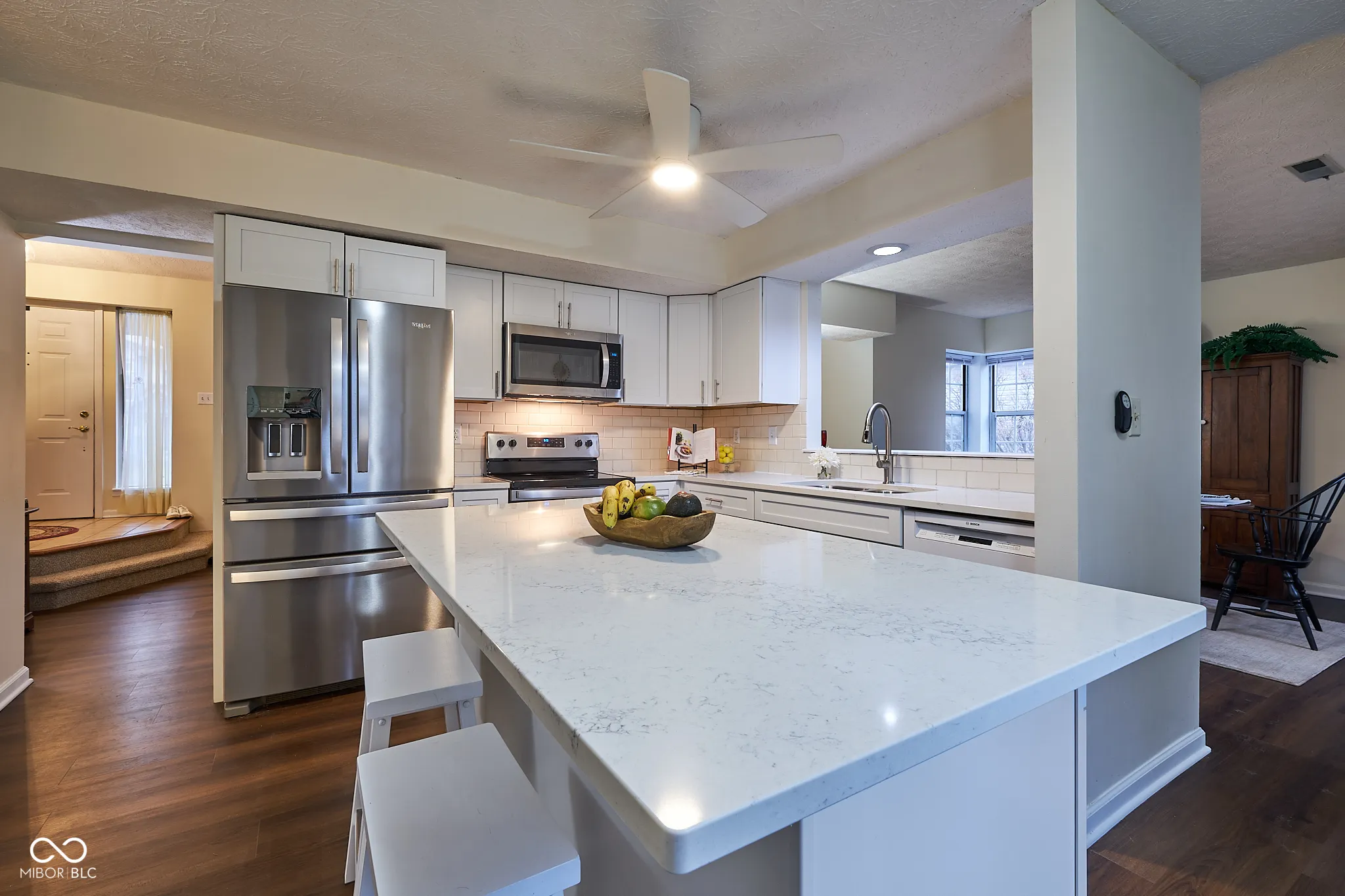 Wonderful 3 Bedroom home located in a convenient area of Lawrence Township. Large 2 story great room with warm stone front fireplace and extra-large windows. Remodeled kitchen with new cabinets, quartz countertops, backsplash, and all appliances staying. Updated half bath on main floor too. Laminate floors installed on both levels. Primary bedroom upstairs has big walk-in closet and updated bathroom. Two more good size bedrooms upstairs with updated hall bathroom. Nice relaxing backyard is fully fenced. Furnace is 5 years old and water heater is 3 years old. Location is close to shopping, restaurants, and close access to highways.
