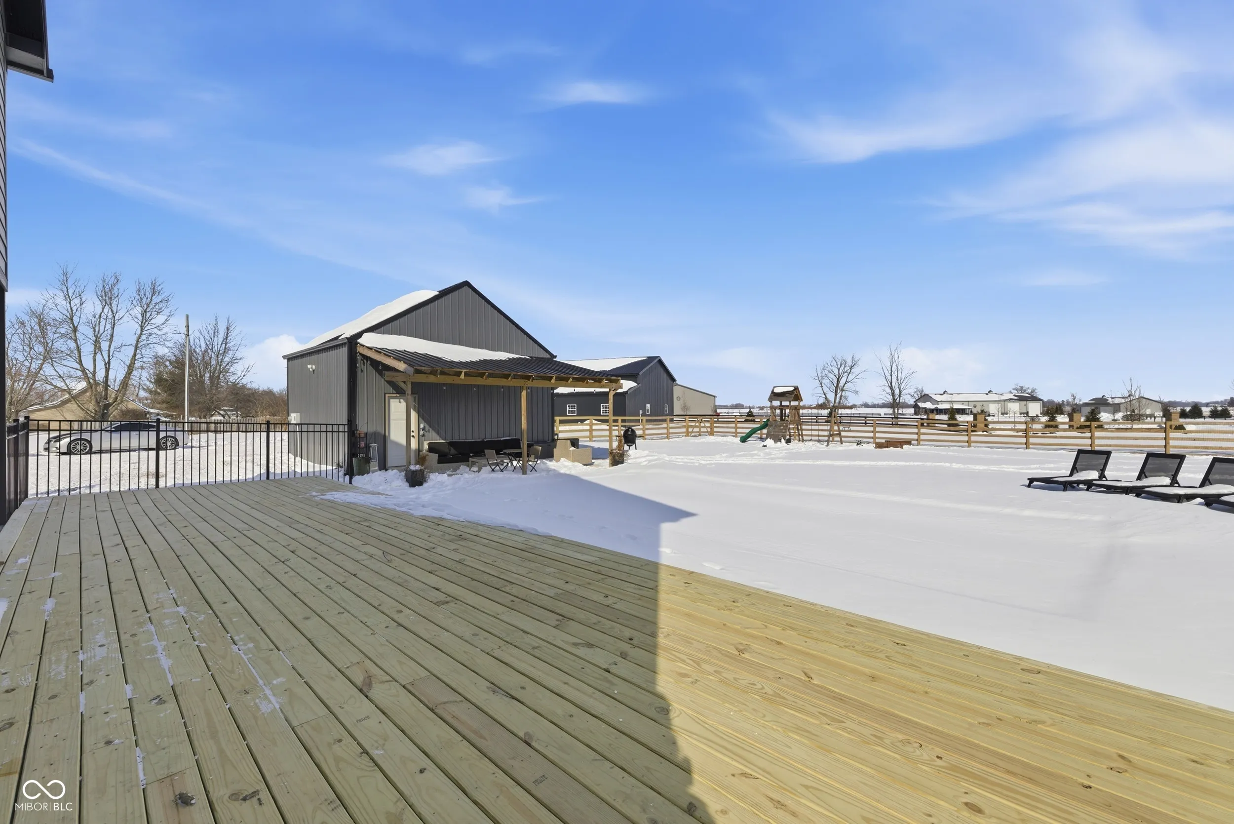 Welcome to 6564 Michigan Road in Fairland, Indiana, a rare opportunity to own a fully updated home on 2.17 acres with a pool, pole barn, and plenty of space to enjoy country living while staying close to city amenities. This 4-bedroom, 3.5-bathroom home offers 2,448 square feet of living space and was mostly rebuilt in 2023, blending modern updates with timeless character. The main level features luxury vinyl plank flooring, an open living and dining layout, and a beautifully designed kitchen with subway tile backsplash, stainless steel appliances, a center island, quartz and butcher block countertops, and ample cabinet space. The main-level primary suite includes dual sinks and a tiled shower, creating a comfortable and private retreat. Upstairs, you will find three spacious bedrooms with generous closet space, a large loft, two full bathrooms, and a bonus room that can be used as an office, playroom, or additional storage space. The outdoor space is a true highlight. Enjoy summer days in the heated 16×32 inground salt water pool w/ an auto cover, relax on the new deck, and take advantage of the partially fenced yard around the pool area. The property also includes a chicken coop and plenty of open land, ideal for gardening, animals, or simply enjoying the privacy of acreage living. A 40×80 pole barn with a finished office area provides incredible flexibility for storage, hobbies, or workspace, along with a detached two-car garage for added convenience. This home offers the perfect combination of space, privacy, and modern comfort. Truly move-in ready and full of potential.