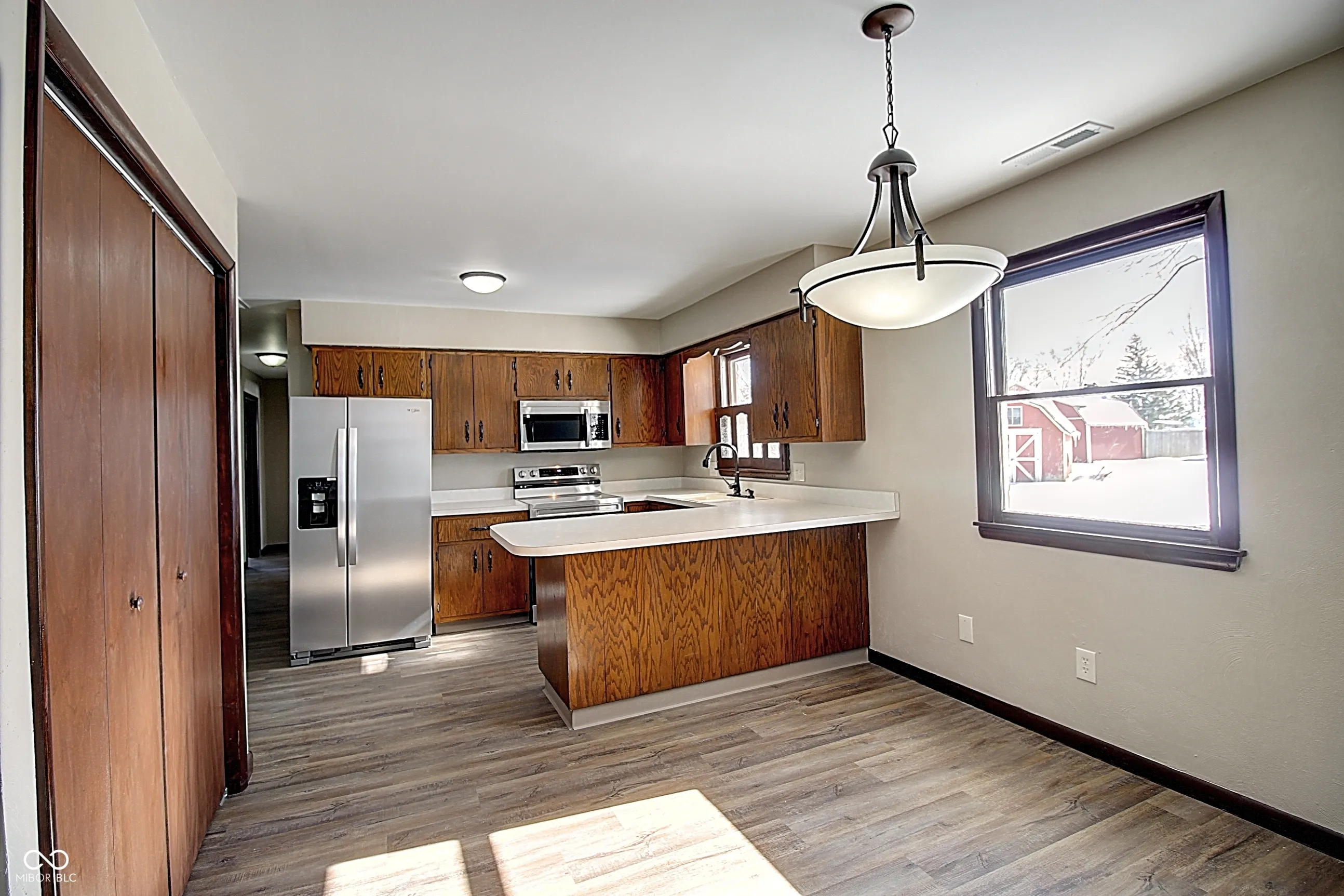 Nestled at 5405 Emerson WAY in ANDERSON, IN, USA, an inviting TOTALLY RENOVATED home stands ready for immediate enjoyment. The heart of the home, a spacious Living Room, invites moments of serene relaxation around its charming fireplace, promising cozy evenings and warm gatherings. Culinary aspirations find a delightful setting within the Kitchen, where a practical kitchen peninsula provides an ideal surface for meal preparation and casual enjoyment. A private sanctuary awaits in one of the comfortable Bedrooms, complete with an ensuite bathroom offering a dedicated space for personal refreshment. Within this private bath, a convenient walk-in shower provides ease and comfort for daily routines. This single family residence, built in 1974, offers a comfortable 1384 square feet of living area, all thoughtfully arranged on a single story for effortless navigation. The expansive 15000 square feet lot provides abundant outdoor possibilities. With three bedrooms and two full bathrooms, the residence accommodates a variety of arrangements. Imagine a life of ease and comfort in this delightful residence.