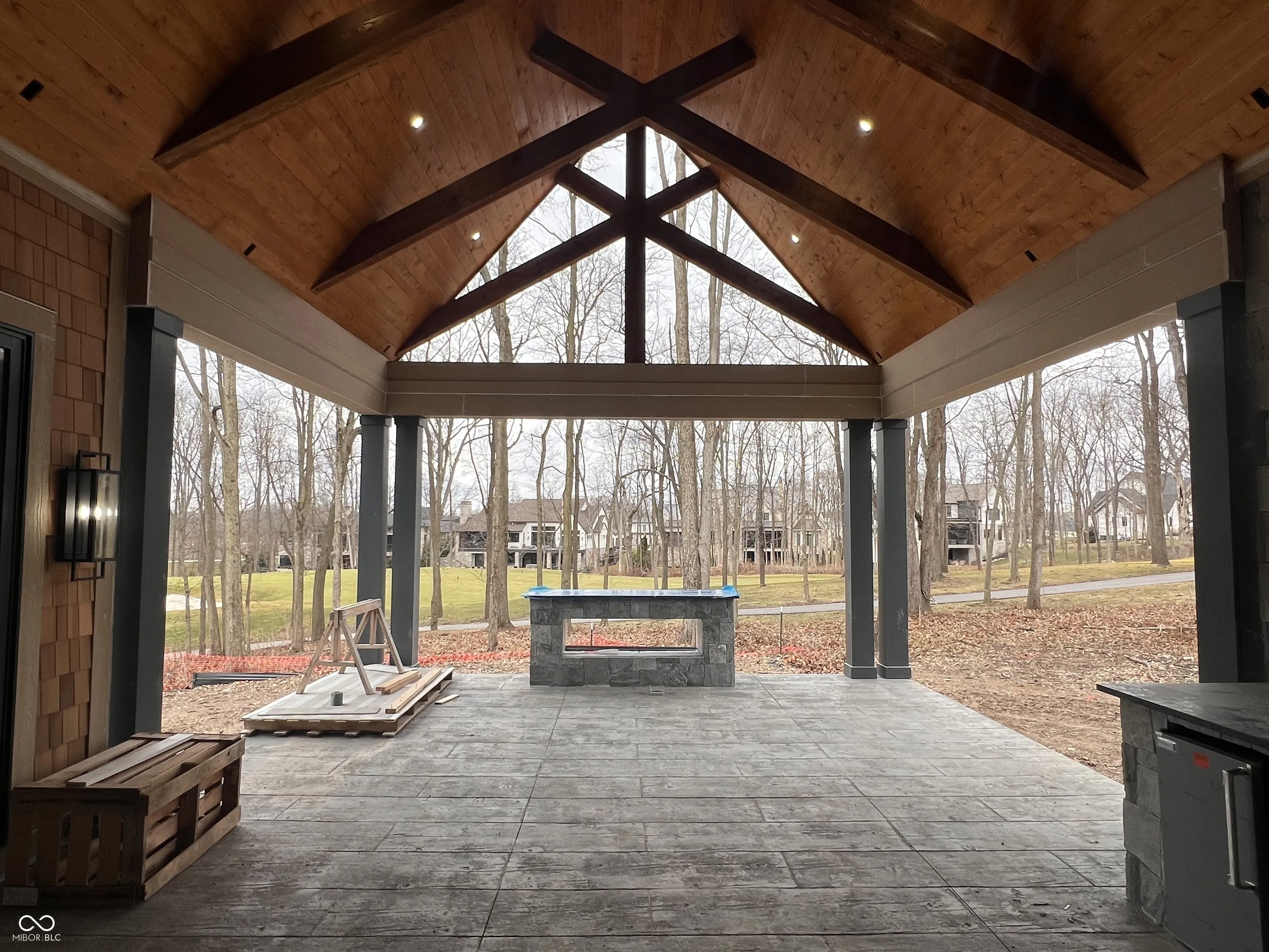 Designed to impress yet built for everyday living, this Chatham Hills new construction estate delivers effortless luxury throughout, perfectly positioned overlooking the 16th hole of the championship golf course. Set on half an acre, the mixed gray stone exterior, Bighorn Iron front door, dramatic metal rooflines, and expansive Pella windows create a striking presence that sets the tone from the moment you arrive. Inside, the main level flows seamlessly, ideal for both daily living and entertaining. The open-concept kitchen anchors the home, connecting the dining and living areas as clean sightlines and walls of windows fill the space with natural light and frame views of the wooded landscape and golf course. Cooking and gathering feel intuitive with white oak shaker cabinetry, luxe gold hardware, a Thermador refrigerator, freezer, and range, and a Bosch dishwasher. A tucked-away prep kitchen adds function with a double-door entry, built-in coffee machine, extra oven, sink, and additional storage, keeping the main kitchen open and inviting. The main-level primary suite offers a calming retreat with a spa-like bath, expansive walk-in closet with center island, and a laundry room connected to both the suite and hallway. A study with an ensuite full bath, dramatic two-story great room, and hearth room complete the main level, providing spaces that feel connected yet purposeful. Upstairs, three spacious bedrooms each feature ensuite baths, complemented by two generous bonus rooms ideal for guests, fitness, play, or media use, along with a convenient second laundry room. The finished lower level expands the living space with a theater area, game space, full wet bar, half bath, and two bedrooms connected by a Jack-and-Jill bath, plus generous storage. Outdoor living extends naturally to the covered rear porch, featuring a built-in grill station, fireplace, and electric heaters, all overlooking the peaceful wooded setting and scenic views of the green.