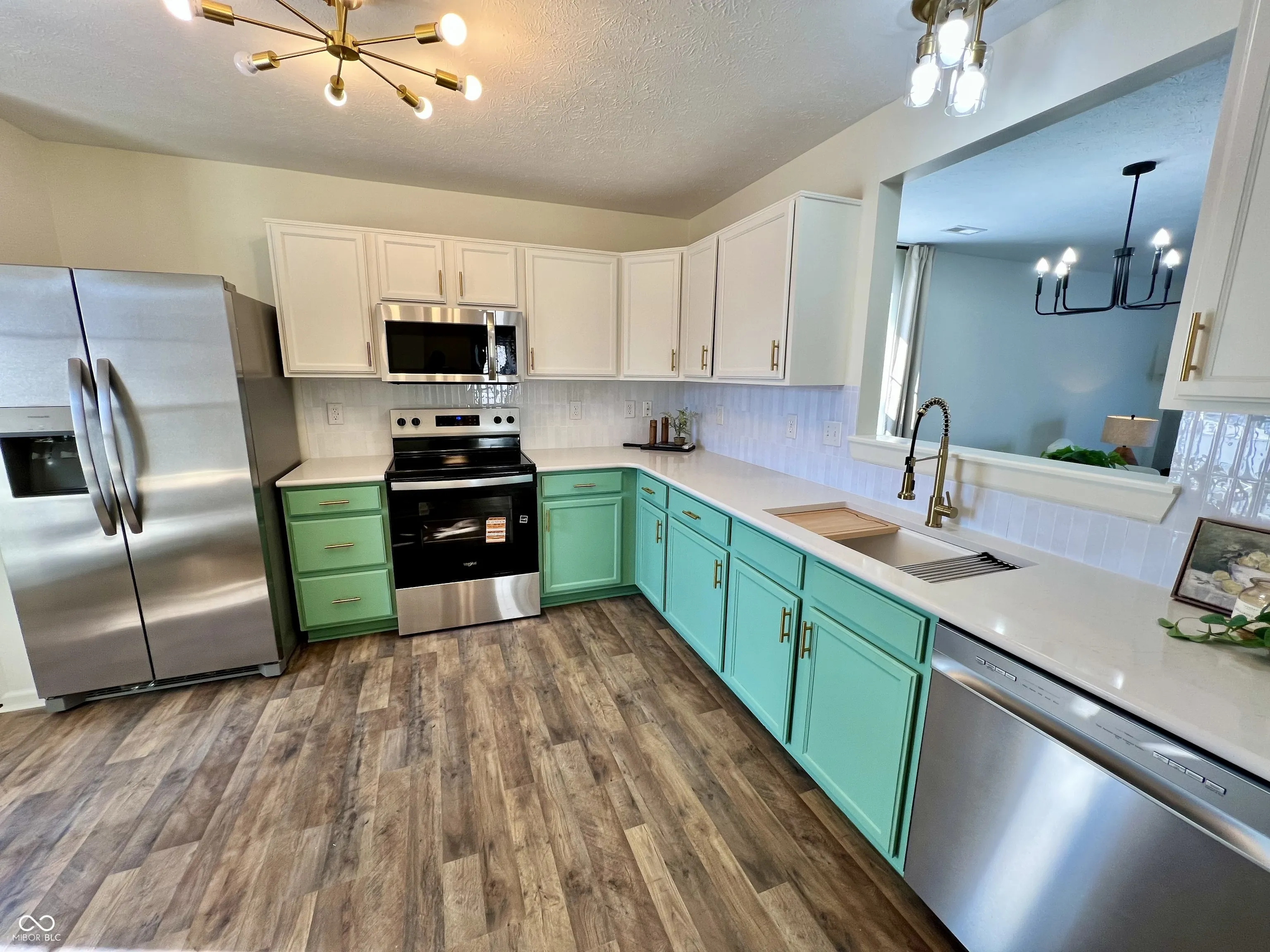 Gorgeous ranch in McCordsville on phenomenal pond lot. Brand new flooring, paint, kitchen appliances, bathroom vanities, primary bath shower, toilets, light fixtures, exterior paint trim, quartz counters, backsplash, kitchen sink, garbage disposal, tile flooring and more! This one is so welcoming the moment you step onto the front porch, which has plenty of space for a porch swing or chairs. You can see the pond view the moment you open the front door, no lack of natural light in this one!! Laminated hardwood in every room except the brand new tiled bathrooms. Kitchen has beautiful quartz counters with timeless gold accents and brand new kitchen appliances, including a garbage disposal. Great room has a centerpiece fireplace and the pond view with plenty of space for multiple furniture arrangements. Very large primary bedroom has fully updated ensuite with a large walk in closet. Two more bedrooms and another updated bath finish out the updates inside. Outside is large wooden deck to again enjoy your pond view. Spacious lot in a great neighborhood with good proximity to amenities. All this with close proximity to Fishers or Fortville and in Mt Vernon Schools!!