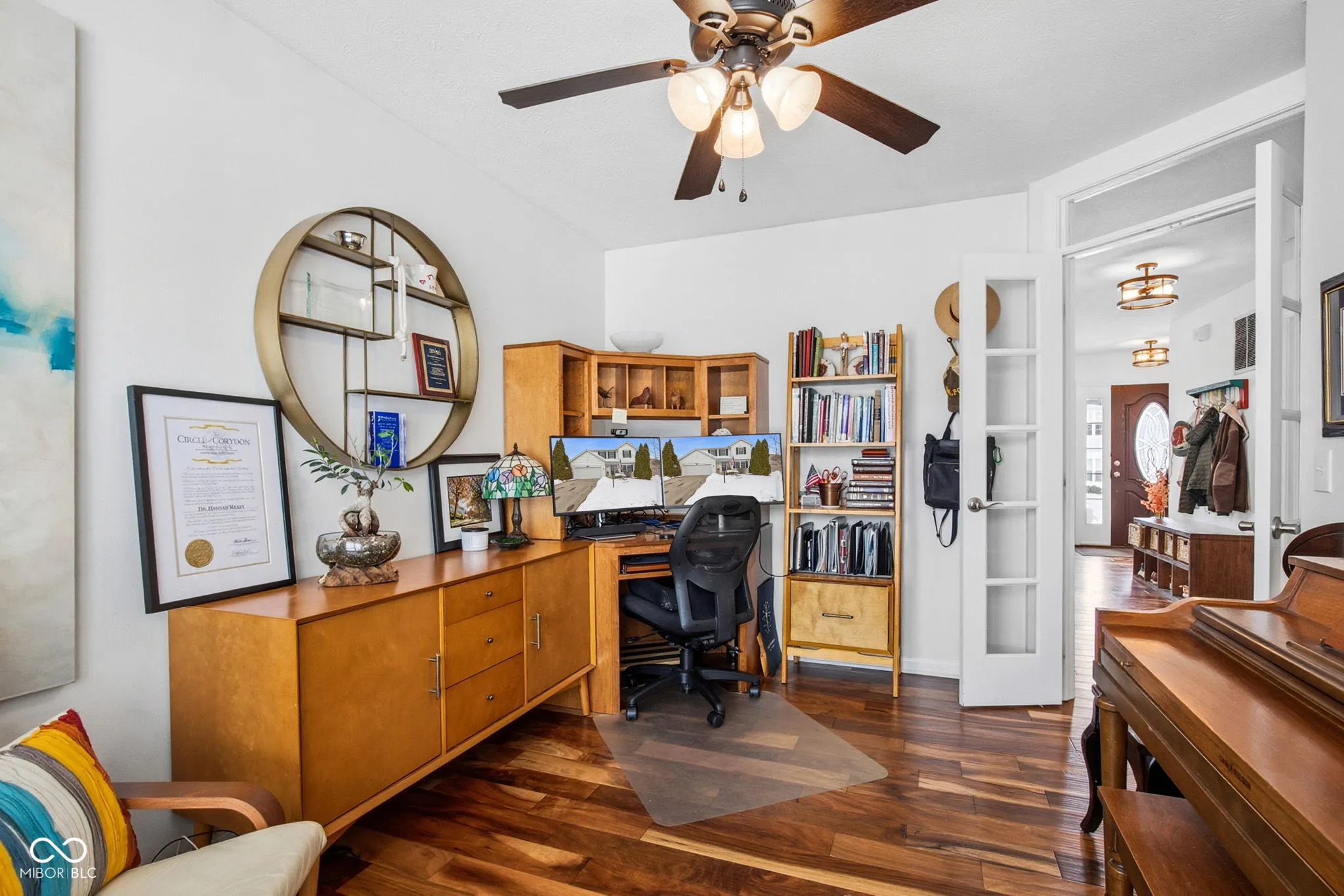 Welcome to this thoughtfully updated 4-bedroom, 2.5-bath home nestled on a peaceful cul-de-sac in the sought-after Harrison Green neighborhood. This home seamlessly blends modern convenience with family-friendly living! Smart Home Features Throughout: Enjoy the ease of WiFi-enabled water heater, smart appliances (including a dishwasher that talks to you), Ring doorbell, and smart garage door opener-control your home from anywhere! Beautifully Updated Spaces: Renovated and customized kitchen and bathrooms showcase quality finishes. Main floor boasts lovely acacia wood flooring throughout. Master bathroom features luxurious heated flooring and a spa-like shower panel for ultimate comfort. Beautifully updated fireplace adds warmth and charm. Work from home in style in the dedicated home office featuring custom-made glass French doors-perfect for privacy and professionalism. Enhanced Throughout: Updated windows on all four sides of the home provide energy efficiency and natural light. Mature trees professionally installed by Circle City Trees in 2024, including a stunning River Birch framing the front window and a majestic White Spruce outside the office window. Room to Grow: Partial unfinished basement offers excellent potential for future expansion, storage, workshop space, or man cave. Modern Conveniences: New water softener ensures quality water throughout. Updated garage door opener adds security and ease. Vibrant Family Neighborhood and Low HOA dues! This community truly comes alive year-round-watch Conner Prairie fireworks from your own driveway in summer, welcome 100+ trick-or-treaters each Halloween, & enjoy easy access to the Nickel Plate Trail for walking, biking, and jogging. Two neighborhood parks just steps away with baseball, soccer, and basketball courts within a 2-minute walk. Walking distance to Harrison Park Elementary. One of the few neighborhoods in the area with streetlights for added safety and peace of mind. A stone’s throw from Conner Prairie.