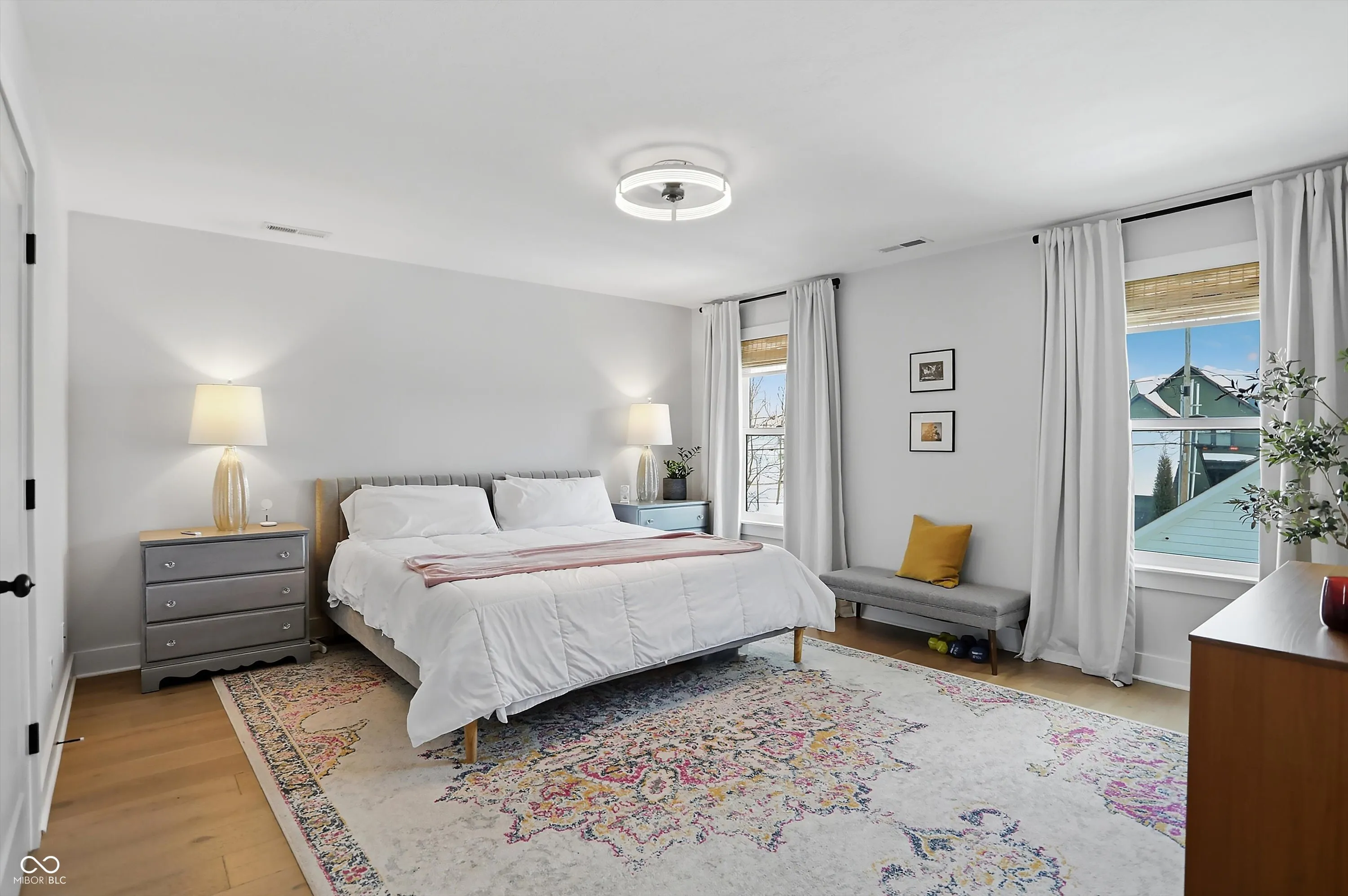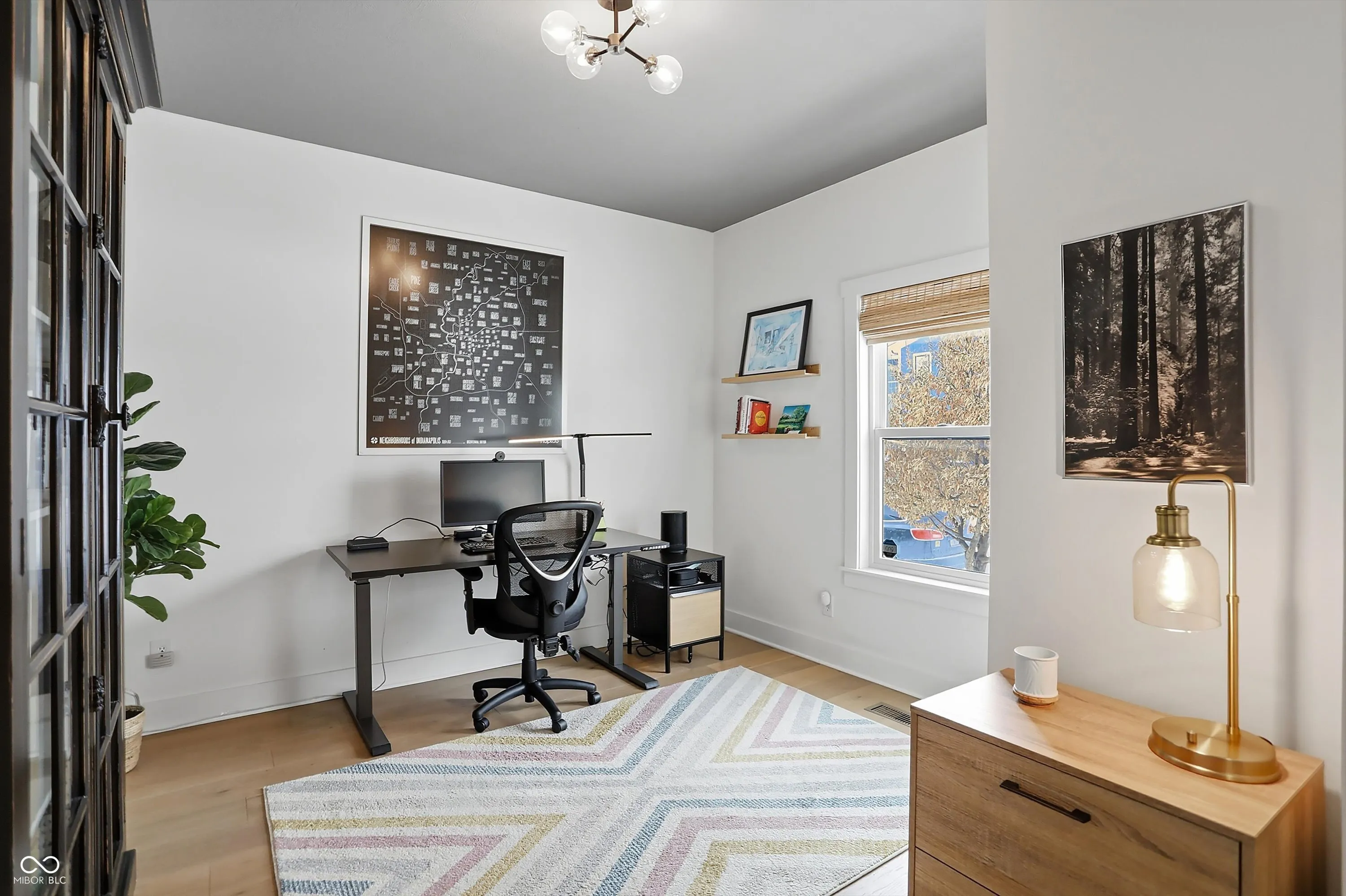 Step into elegance in the desirable Kennedy-King neighborhood of Indianapolis! This 5-bedroom, 3.5-bathroom home offers 3,399 square feet of stylish living space. The open floor plan invites warmth and connection, featuring an office/5th bedroom with beautiful glass French doors. The chef’s kitchen impresses with a large center island, top-of-the-line stainless steel appliances, striking quartz countertops, and a marble backsplash, with a custom walk-in pantry for added convenience. Enjoy the spacious backyard deck, perfect for outdoor gatherings. The finished basement is a true retreat, while the luxurious primary suite boasts an oversized walk-in closet and a spa-like ensuite bath with double vanities. This home is adorned with oak hardwood floors, designer lighting, and custom blinds, and is ideally situated near parks, the Monon Trail, Bottleworks, Mass Ave and other downtown attractions.