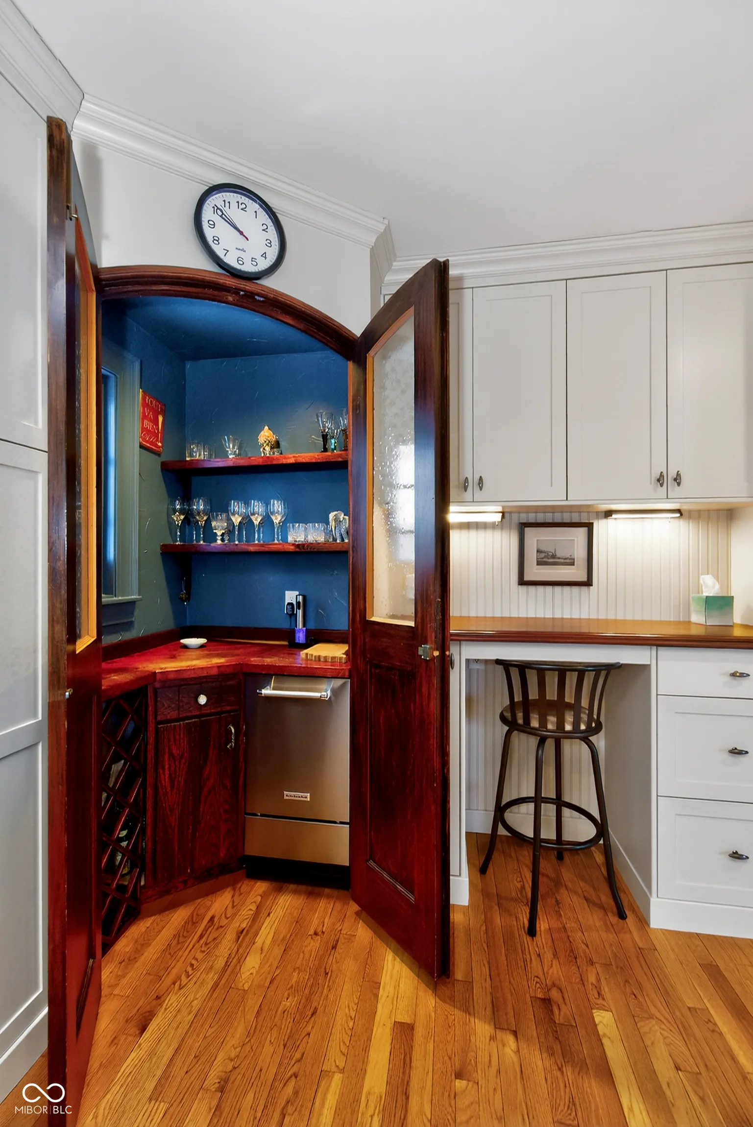 This charming Meridian Hill home, originally built in 1922 offers timeless, character, complemented with a seamless addition in 1995 that blends with the original architecture, allowing the best of both worlds. The home is light and cheery. The living room provides an inviting space enhanced by the warmth of the fireplace & the detailed crown molding. The screen porch is a comfortable place to enjoy the warm weather. The dining room is accessible from both the kitchen and the entry hall. The kitchen stands as a testament to both style and functionality, featuring updated cabinets, quartz countertops, a larger kitchen island with area that seats 6. High end appliances including a refrigerator, built-in oven, microwave, warming drawer, gas cook top, trash compactor, and a bar hidden in the corner with its own ice machine. The family room has impressive beamed ceiling, gas fireplace, large mounted TV & practical built-ins. An office with built-ins is conveniently located off the family room & would also make a great toy room. Laundry room, located by the backstairs, has a sink, hanging rack, washer and dryer that stay with the home. Upstairs off the sitting room is the primary bedroom that offers a serene retreat. French doors open to outdoor balcony, a classy primary bath, & large closet with laundry chute . The upstairs has 4 additional bedrooms all with large closets and character & 3 additional baths. The fifth bedroom is currently used as a workout room. The hall has a laundry chute, built-in window seat with storage. and there are 2 wall access areas, 1 in the hall & the other in the guest bedroom. Both are lined with whiteboard so coloring on these walls is encouraged & fun. These areas give additional storage too. Basement, with its 4 large egress windows and built-in bar along with a full bath provides excellent additional living and entertaining space. The 3-car garage is enhanced with an additional oven, plus a dog and car wash station.