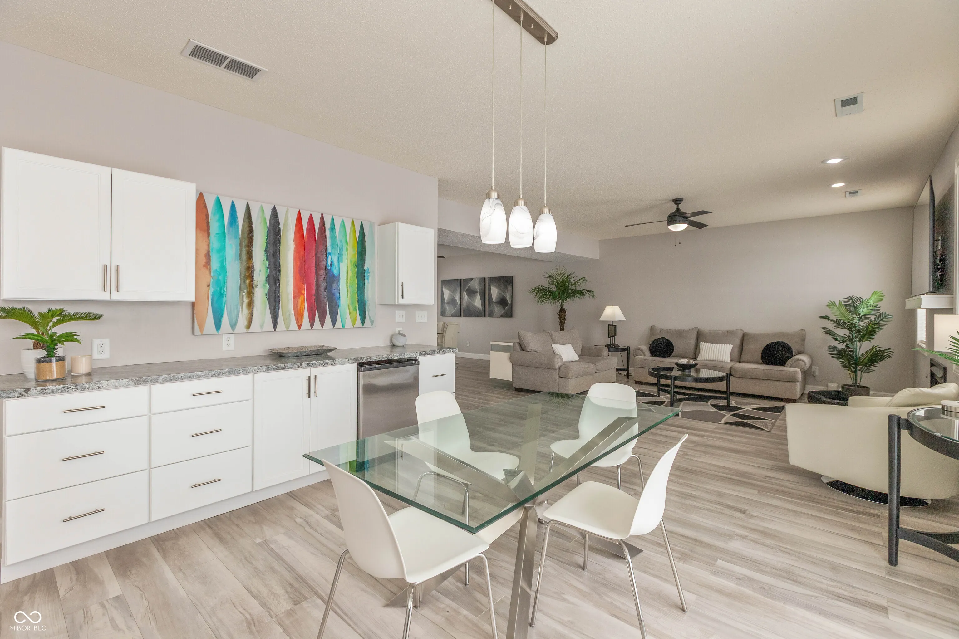Marvelously Modern and well updated 3 bedroom with loft in Southside School district. Backs up to the pond and has beautiful 18x 24 concrete patio with privacy panels. Newer laminate floors, paint, trim, light fixtures, buffet cabinets in dining and breakfast, added built in pocket office. Spacious master retreat with shower and garden tub, tons of storage, happy laundry rm. All bedrooms have walk in closets. Gas furnace and water heater 2020, kitchen appliances 2019. Well loved and neutral decor is move in ready. Enjoy the gas fireplace on snowy days or wonderful warm nights on the patio! Community amenities include pool, tennis courts, and miles of walking trails.