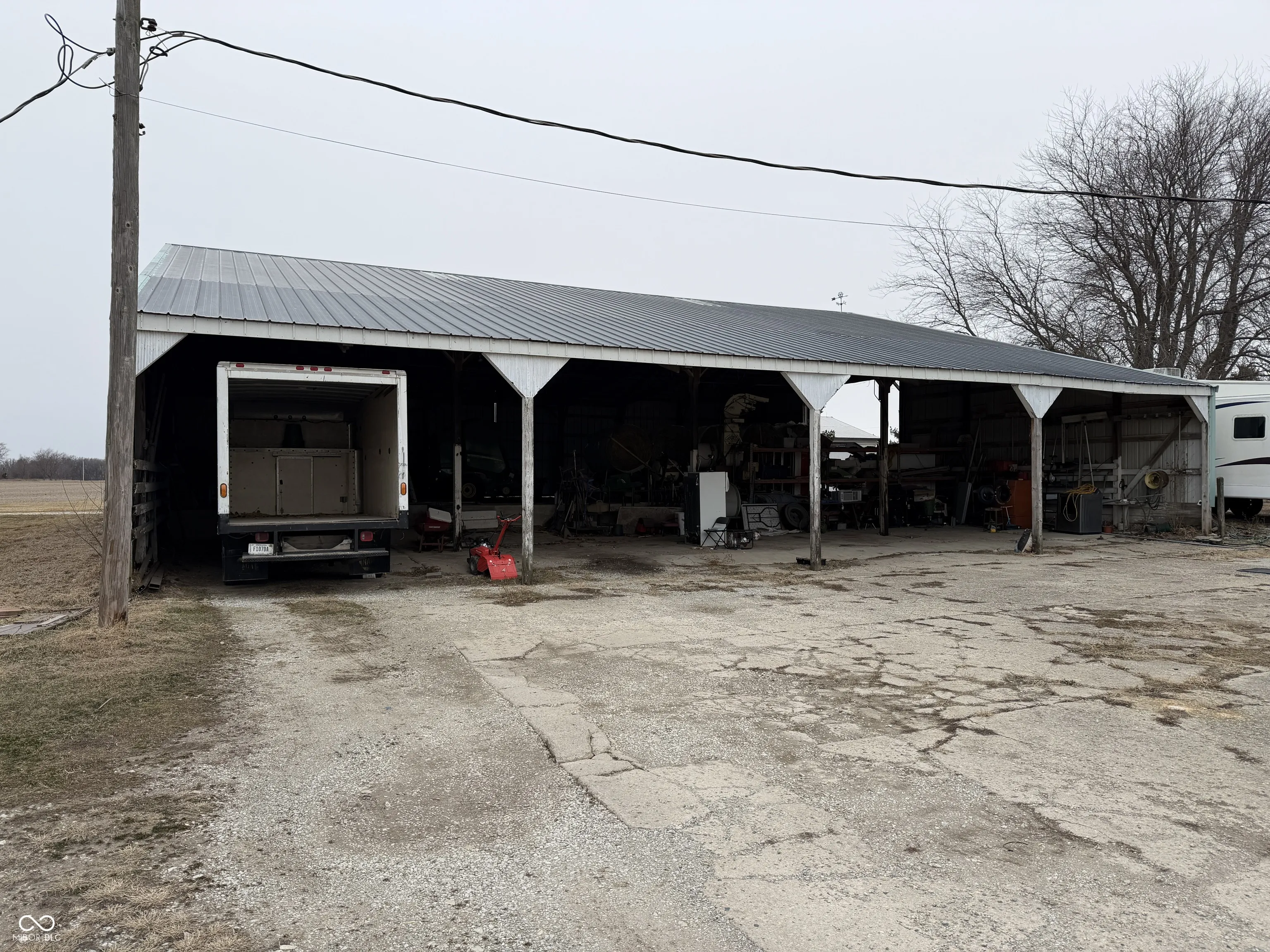To be sold at Auction – LIVE In-Person and Online on Thursday, March 12th @ Approx. 1 PM EST. An exceptional offering of Real Estate. A total of 80 +/- acres being offered in two tracts. This listing is for Tract 1 – 10 +/- Acres with a full list of great features including the 3 Bedroom / 2 Bathroom 2,092 sqft home! Downstairs is over a 1,000 sqft basement that was used for storage, utilities, and extra space! Large primary bedroom with walk in closet and bathroom. Spacious family room just off the kitchen. Stainless appliances with a newer LP Gas Stove and a newer microwave. Spare dining room and an office space just outside 2 other bedrooms. Multiple new upgrades! Within last two years this home has had all new windows and a new roof! The water softener is owned and was upgraded to a quality system in last few years. New vinyl plank flooring throughout part of the house. New carpet in primary bedroom. The list goes on! The home has a detached 2+ car garage with a large open porch that was used for relaxing and seeing over the large yard and firepit area. Tract 1 comes with over 80,000 bushels of grain storage! 4 Brock Grain Bins and an additional 2,000 bushel holding bin. The bins are 40,000 Bushels, 20,000 Bushels,12,000 Bushels, and 12,000 Bushels. All 4 bins have air tubes on them currently. There is no shortage of farm storage on this property as well! 2 Morton Barns – 1 has a 3654 heated shop and 5463 storage area. The second Morton Barn measures 6971 – Featuring a loading dock setup and a 1726 insulated vegetable cooler! There is also a 2945 Pole Barn and a 2429 block building.