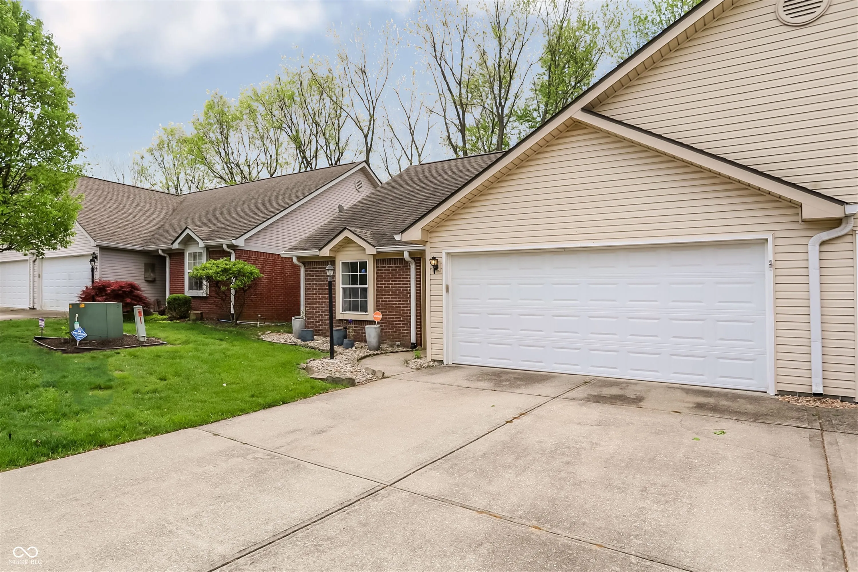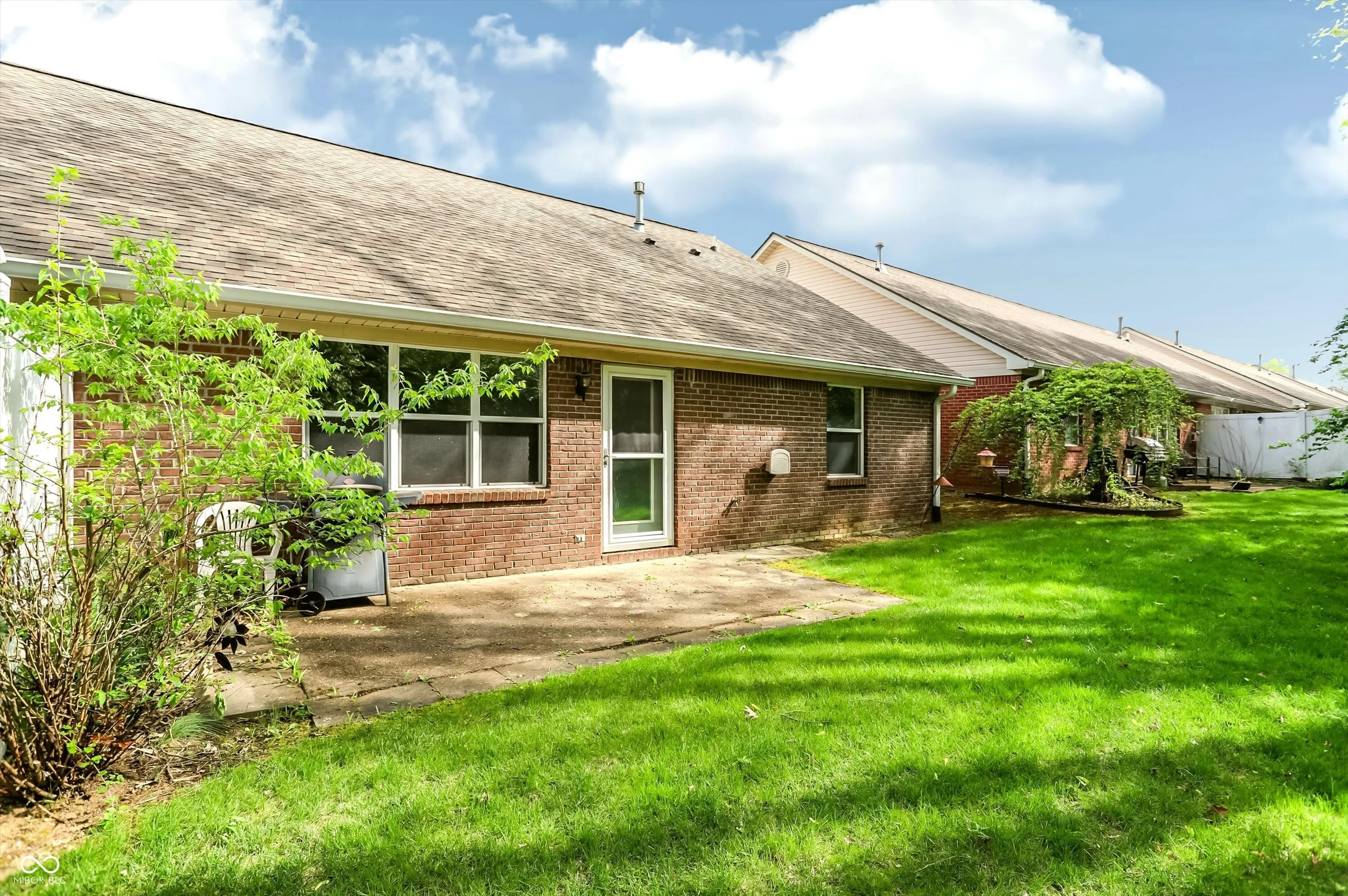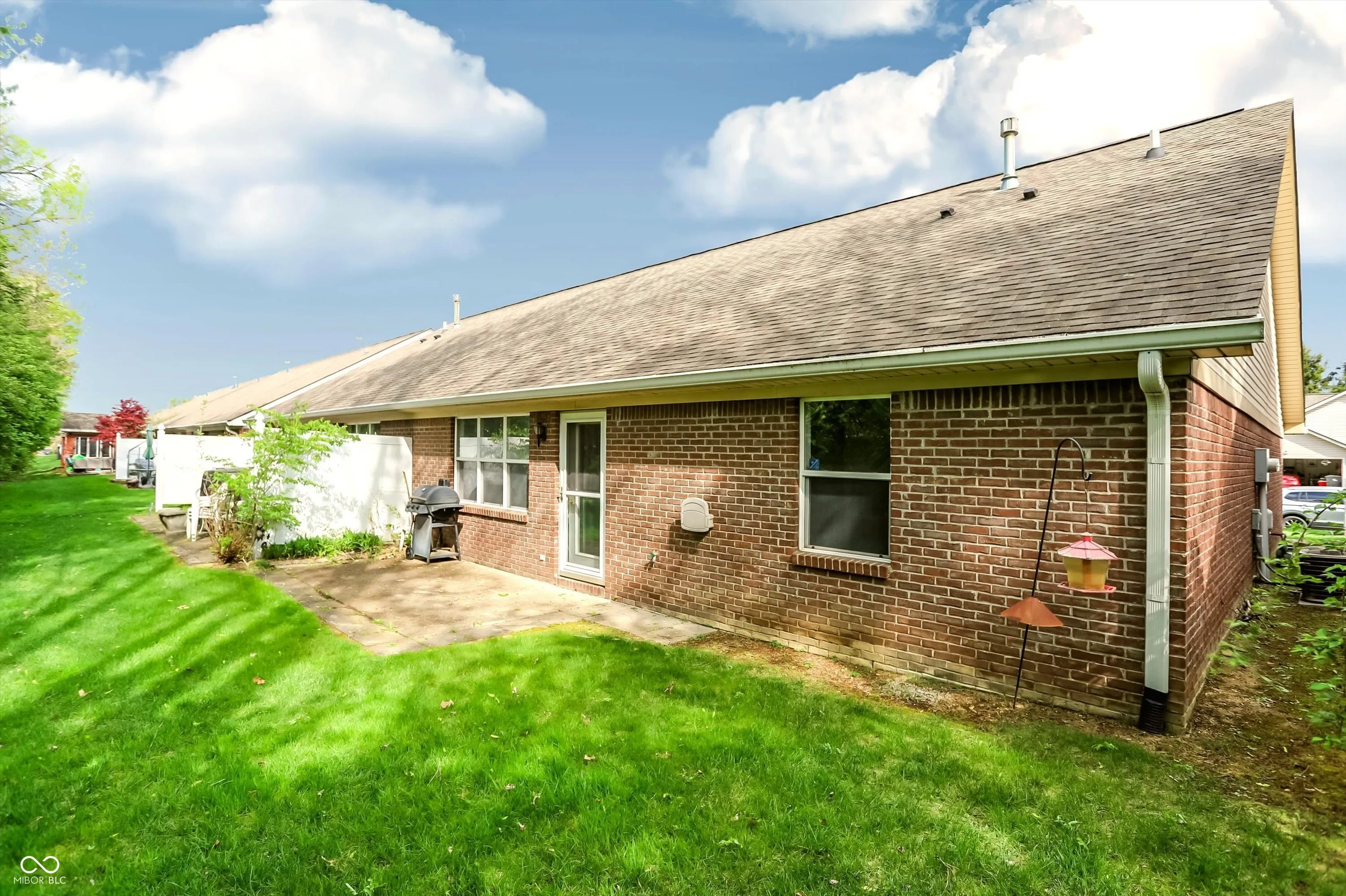 Gray Farm Estates – Move-in ready all-brick 2BR/2BA paired patio ranch with 2-car garage. 1,180 sq ft open-concept layout with vaulted ceilings, split-bedroom design, private laundry, and spacious primary suite with walk-in closet & shower. Enjoy the back patio on a summer day. Low-maintenance living with HOA covering lawncare, exterior maintenance, and snow removal. Quiet street, yet minutes to I-65, I-465, US 31, Madison Ave, Old Town Greenwood, UIndy, IU Indianapolis, Community South & St. Francis hospitals, plus shopping, dining, Costco, and more.