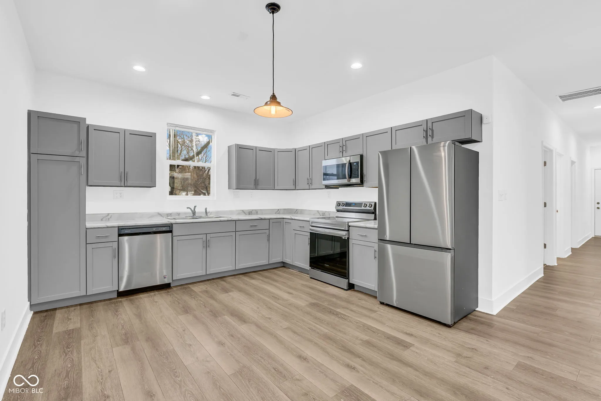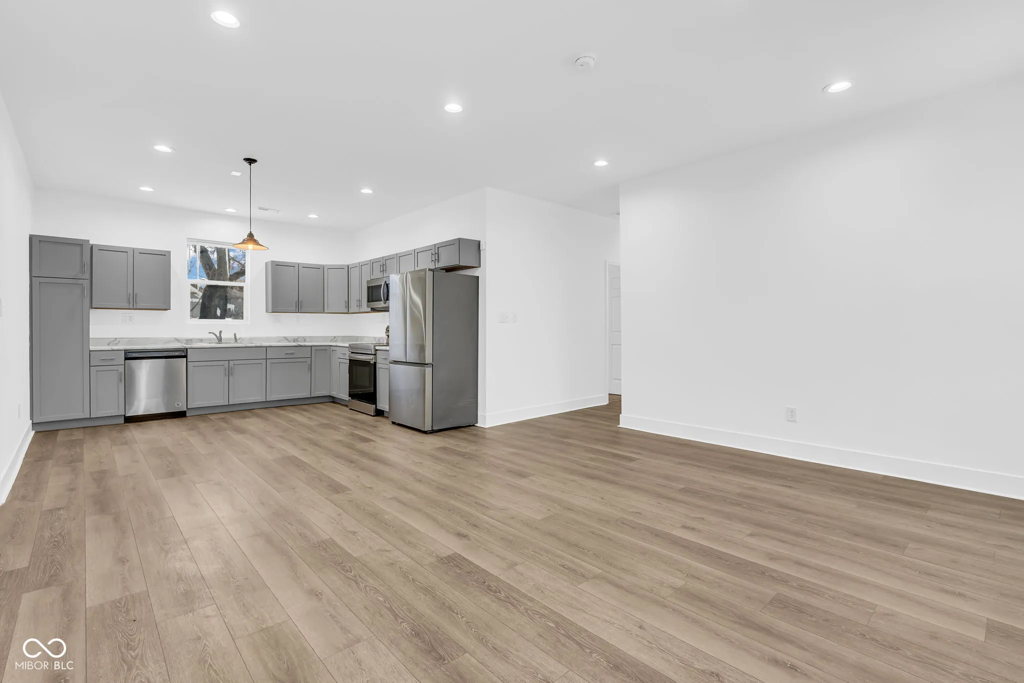 Welcome home to this well-maintained 3-bedroom, 2-bath single-family ranch located in the heart of Perry Township. Offering 1,617 square feet of thoughtfully designed living space, this home combines comfort, functionality, and a convenient location. Fresh brand new interior paint gives the home a bright, clean feel and makes it truly move-in ready. Step inside to an inviting open-concept great room featuring durable vinyl plank flooring and plenty of natural light, perfect for everyday living or entertaining guests. The great room flows seamlessly into the kitchen, creating a connected and welcoming atmosphere. The kitchen is equipped with all new stainless steel appliances, ample cabinetry, and generous counter space, making meal preparation and hosting effortless. The private owner’s suite serves as a relaxing retreat and includes a walk-in closet and a full en-suite bathroom. Two additional bedrooms offer flexibility for guest rooms, a home office, or hobby space, while the second full bathroom is conveniently located nearby. With 9-foot ceilings throughout, the home feels open, airy, and comfortable. An attached 2-car garage provides additional storage space for vehicles, tools, and seasonal items. Be sure to explore the home through the interactive 3D tour, complete with floor plans and video, allowing you to experience the layout and features from anywhere. Ideally situated, this home offers quick access to I-65, a variety of dining options, Garfield Park, and Sarah Shank Golf Course. Located within the Perry Township School District, this property offers a wonderful opportunity to enjoy easy living in a well-connected and desirable area.
