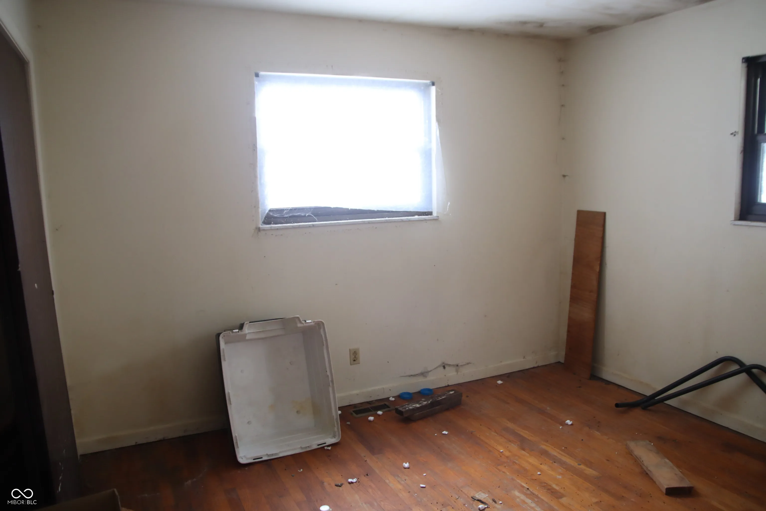 Fixer Upper in need of LOVE. Full brick ranch home with good bones, but needs major renovations–including roof, heat source in family room, and landscaping. Could be a flip or worthwhile homeowner project. Hardwood floors believed throughout the home–buyer to confirm. Electric & gas utilities are on, at minimum settings. Owner has a permit to connect to city water, but has not connected. Sale includes huge lot south of home to 100S. No neighbors behind (east) home.