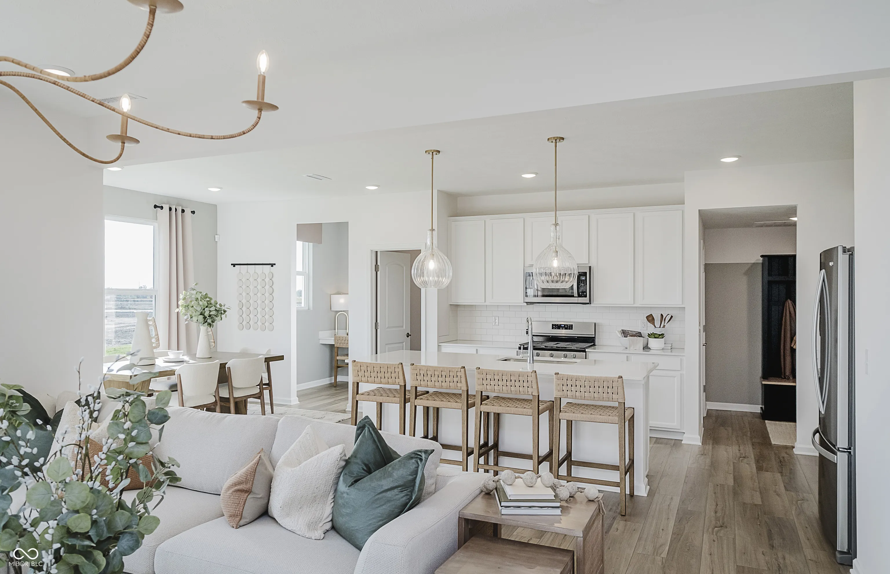 Welcome to the Dakota Floorplan by Pulte Homes, nestled in the charming Parkside at Finch Creek Community. This thoughtfully designed home perfectly balances style and functionality. The heart of the home is a chef-inspired kitchen with Stone Gray cabinetry and Aruca White quartz countertops with a central layout that seamlessly flows into the cafe dining area and gathering room. The main level also features a versatile flex room, offering the perfect space for a home office, playroom, or cozy den. The Pulte Planning Center ensures effortless organization for a busy household. Upstairs, retreat to the luxurious owner’s suite, complete with shower, dual sink vanity and an expansive walk-in closet. Three additional bedrooms provide ample space, and an upstairs laundry room adds convenience to your daily routine. Enjoy top-tier amenities, including a Community Clubhouse with an Expansive Covered Back Deck with Seating Areas, Community Pool, Half-Court Basketball, Two Pickleball Courts, Fully Equipped Fitness Center, Meeting Room Available for Reservation, Indoor Gathering Space Community Prep Kitchen, and an Outdoor Playground. Just minutes from I-69 and Hamilton Town Center, you’ll have easy access to shopping, dining, and entertainment. Experience the perfect balance of community charm and modern convenience at Parkside at Finch Creek. Photos of similar model.