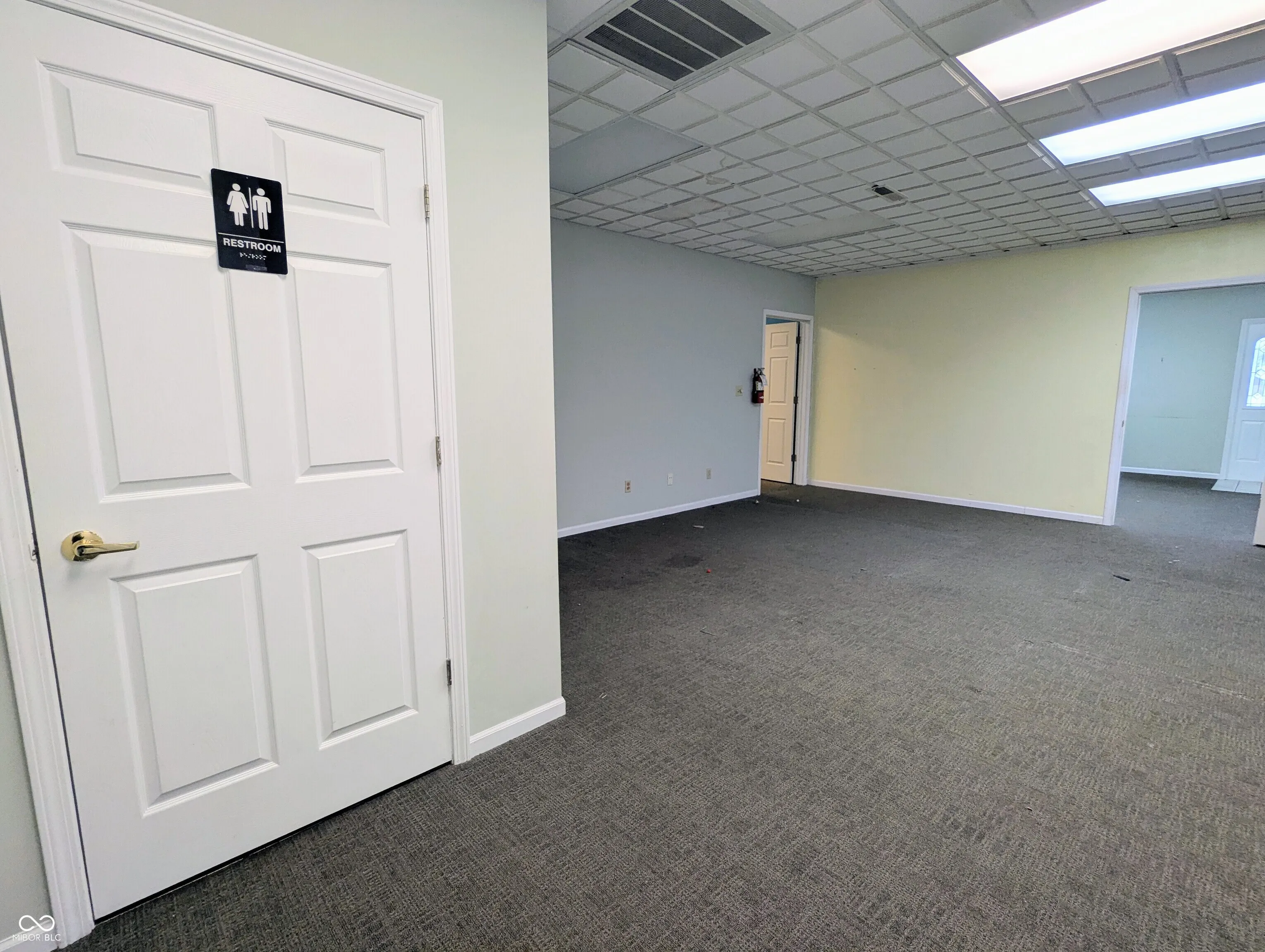 Commercial office space available for lease in a multi-unit commercial building on S Baldwin Avenue in Marion, located near the Marion bypass. This unit is approximately 1,079 square feet and offers a functional layout suitable for a variety of professional uses. The main level includes a waiting area, open general office space with flexibility for cubicles or future partitioning into private offices, and a restroom. The upper level provides an additional room with a landing area and a second restroom, offering supplementary space that may be used for office functions, storage, or ancillary use. The property features on-site parking, strong road frontage, and convenient access to major thoroughfares.