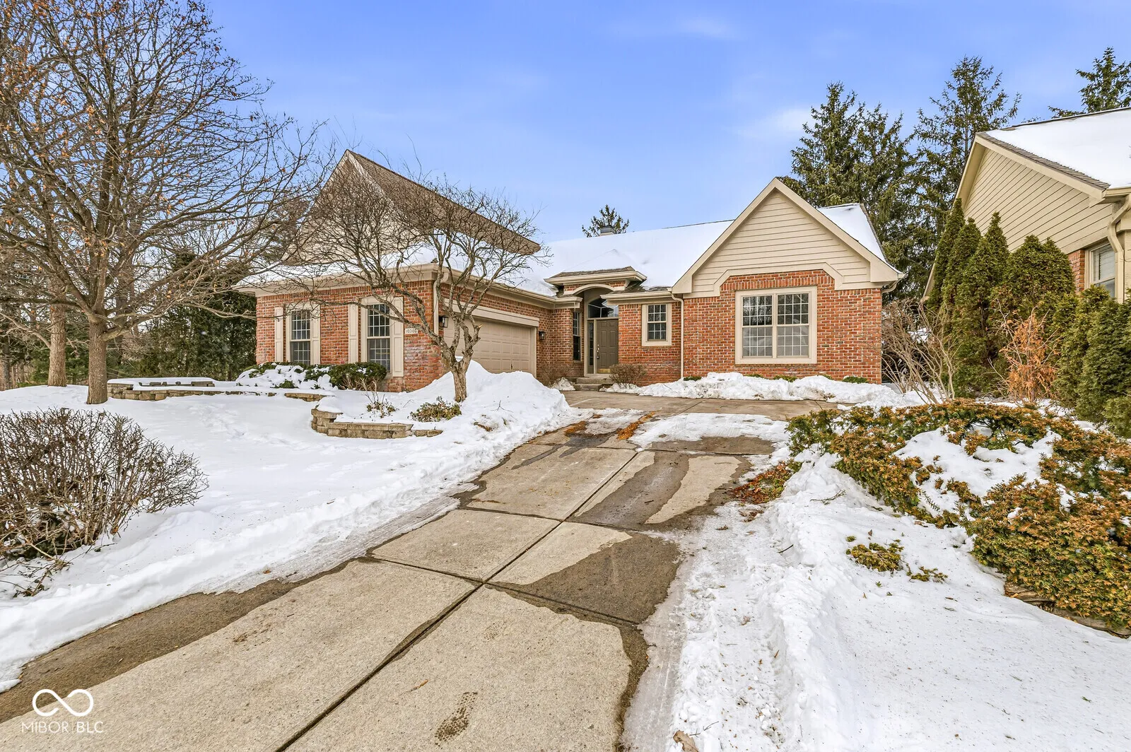 Situated on a quiet, private cul-de-sac in the sought-after Reserve at Springmill, this residence has been completely reimagined with a sophisticated, modern aesthetic. The home feels brand new, showcasing all-new neutral paint throughout, luxury laminated hardwood flooring, and new plush carpeting. The design is punctuated by trending lighter gold and champagne bronze fixtures that add a refined elegance to the interior. The heart of the home is the open-concept living area, where soaring ceilings and a cozy gas fireplace create an inviting atmosphere. The chef’s kitchen has been beautifully updated to feature gleaming quartz countertops, pristine cabinetry, and a full suite of appliances. Whether hosting in the formal dining room or relaxing in the light-filled sunroom, the single-level layout is designed for both grand entertaining and quiet comfort. The sleeping quarters offer exceptional privacy and versatility. The primary suite serves as a true sanctuary, complete with a generous walk-in closet and a spa-inspired bath featuring dual sinks and a remodeled shower. A standout feature is the second bedroom, which includes its own private full bath with a tub, creating an ideal guest suite. The third bedroom offers further flexibility, easily doubling as an executive office or den. Ideally located within the Carmel Clay School district, this home offers the ultimate “lock-and-leave” lifestyle. The monthly association fee covers all grass mowing, bush trimming, and snow removal, allowing you to enjoy your weekends or travel with peace of mind. Complete with a built-in irrigation system and a finished side-load garage, this turnkey masterpiece offers the freedom of low-maintenance living without compromising on luxury.
