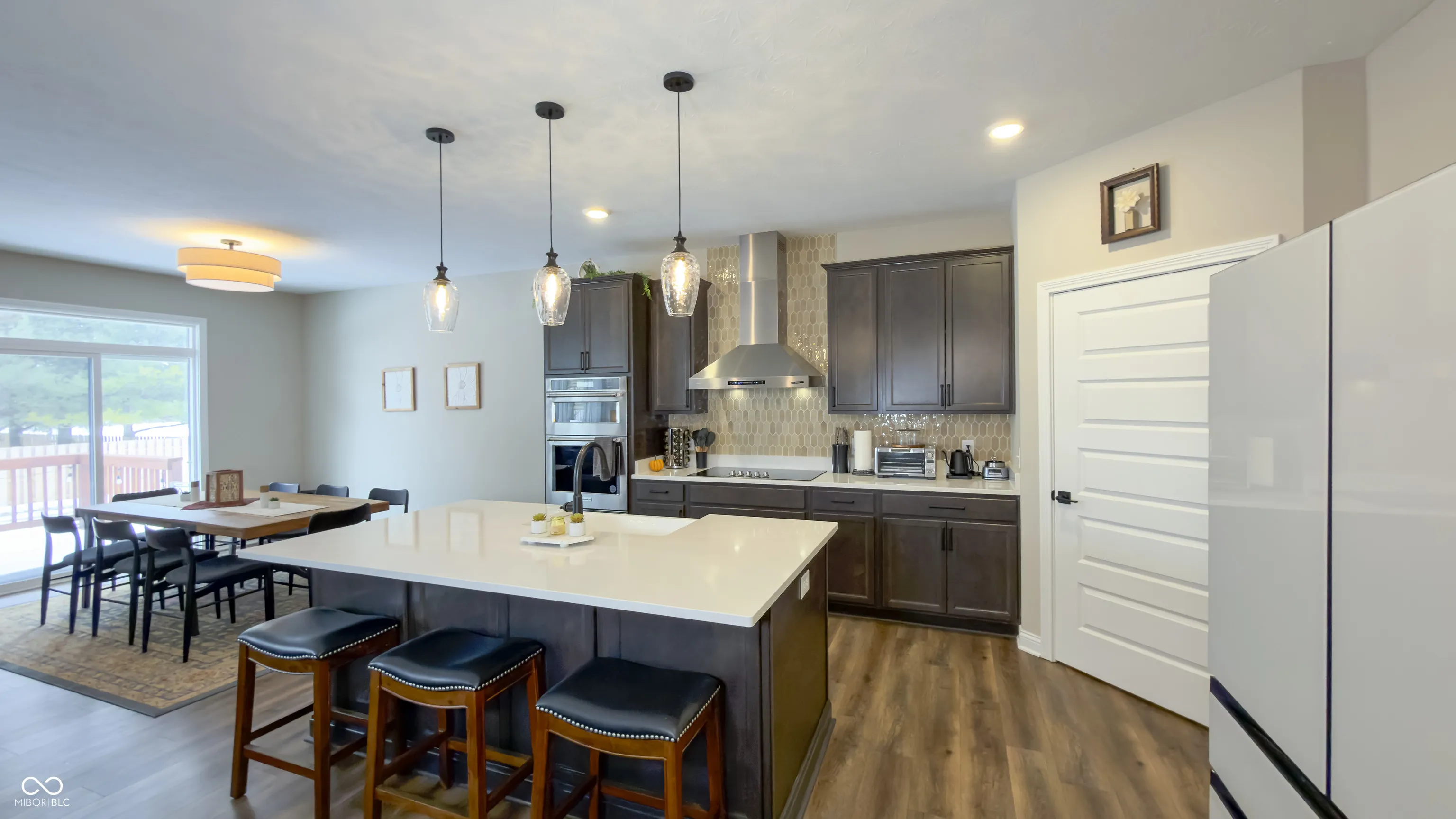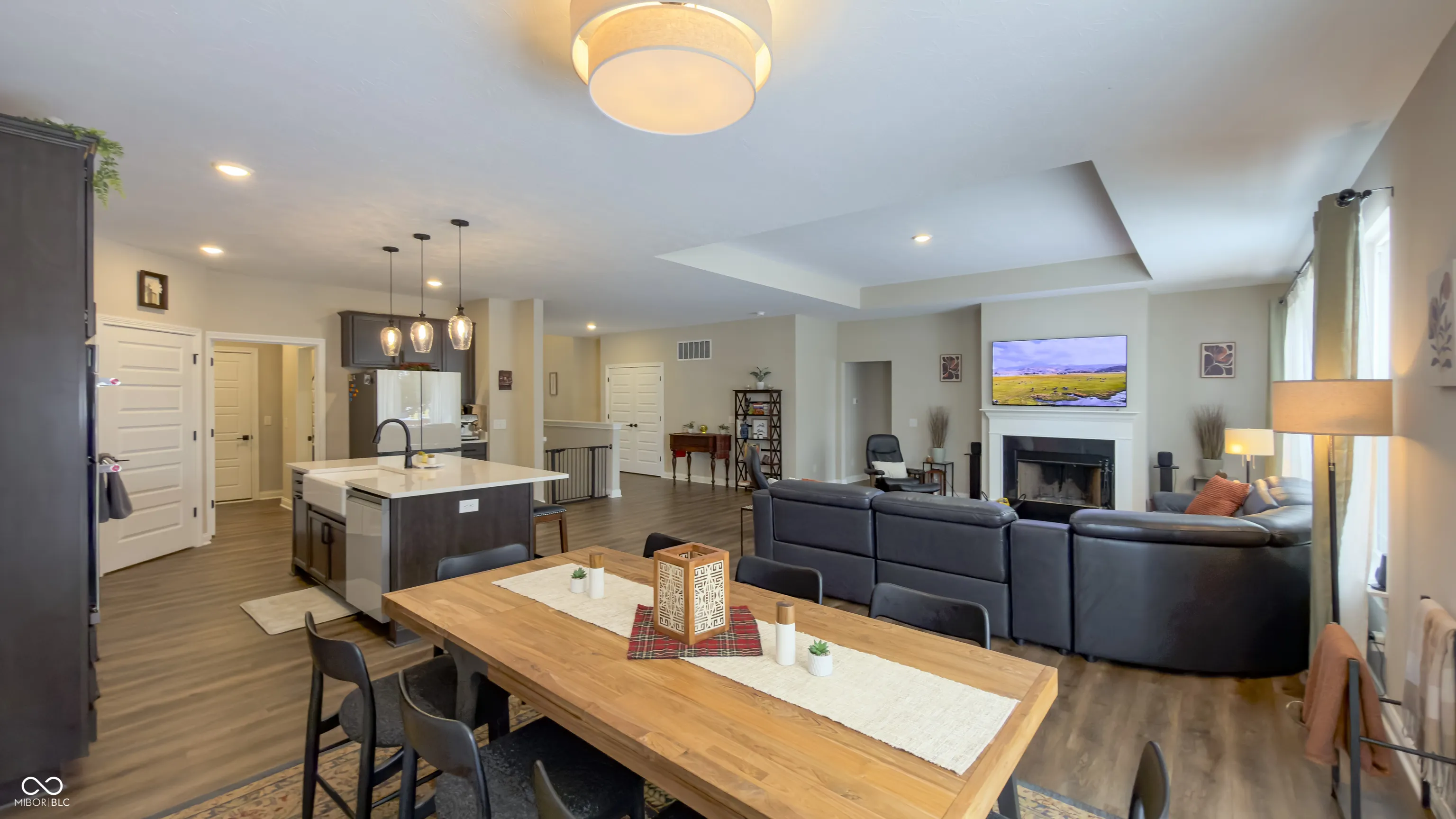 Motivated Sellers will consider up to $7,500 towards a rate buy down, closing cost assistance or fence installation with a strong offer! Custom-built in 2023 by Davis Homes, this full-brick ranch offers 3,719 sq ft of move-in ready living in Blossom Trace – one of Fortville’s premier all-custom neighborhoods. Builder’s warranty still in place. No wait, no compromises. The main-level layout puts everything on one floor. A raised-ceiling foyer opens to a dramatic great room with wood-burning fireplace and oversized windows. The chef’s kitchen features quartz countertops, designer backsplash, white apron sink, soft-close cabinetry, built-in oven, convection microwave, electric cooktop, smart refrigerator, and walk-in pantry. A new half bath and mudroom lead to the 3-car side-load garage – extended 2 ft with EV charging outlet. The 288 sq ft primary suite is separate with a tiled shower, double vanity, water closet, linen storage, and a walk-in closet connected directly to the main-level laundry. A private office with French doors, two additional bedrooms, and a full bath with double sinks complete the main floor. The partially finished basement adds 682 sq ft: a legal bedroom or family room with egress window, full bathroom, and sitting area – plus unfinished space ready for a gym, theater, or workshop. Plumbing is accessible for a future kitchenette – ideal for multigenerational living. Outside, a 20×10 deck overlooks a quiet, tree-lined 0.35-acre lot. Additional features: SEER 16+ HVAC, smart thermostat, tray ceilings, and 36-inch hallways. Minutes to downtown Fortville, SR 67, and I-69 – quick access to Indianapolis, Fishers, and Noblesville. New-construction quality, builder’s warranty, immediate occupancy. Schedule your private tour today.