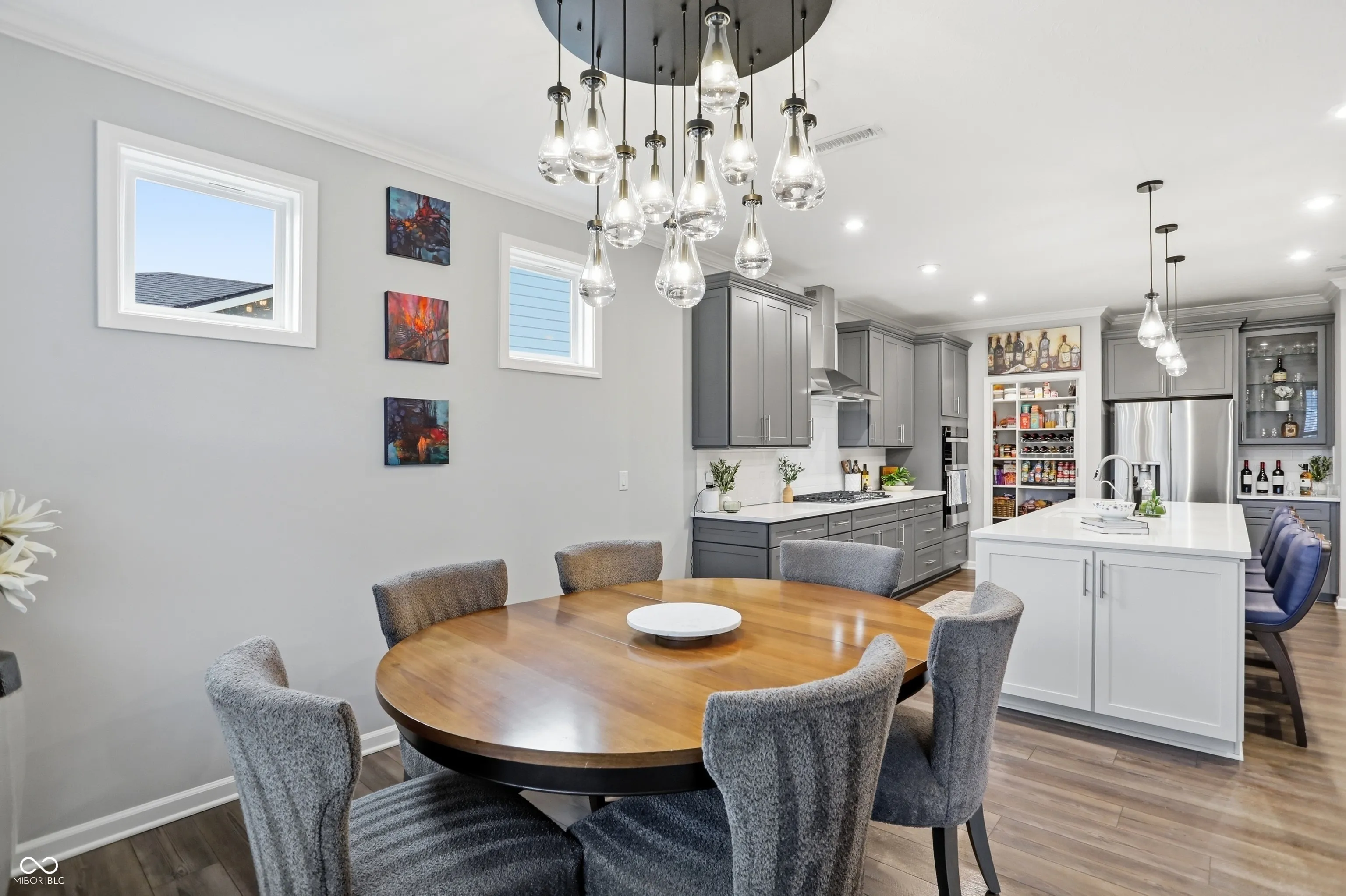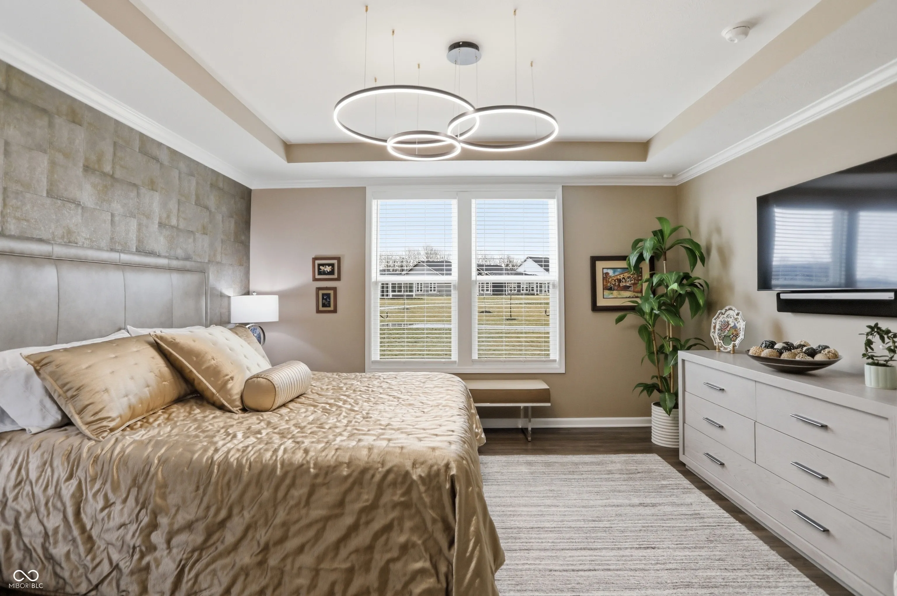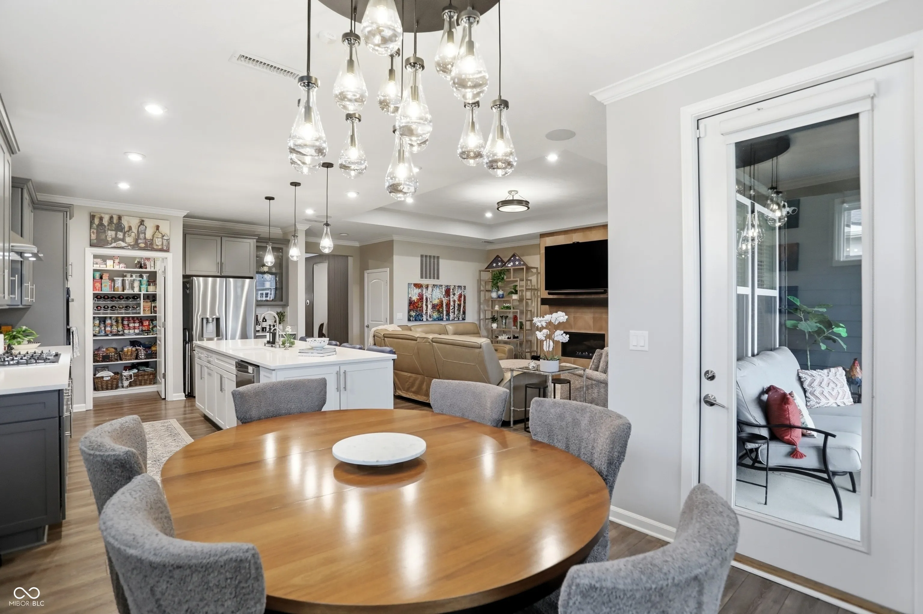 Experience luxury, low-maintenance living. This beautifully appointed Prestige floor plan, one-level home offers 2 bedrooms, 2.5 baths, and a versatile office/flex space enhanced with a retractable opaque electric privacy screen. Buyer has done over $100,000 in upgrades, beginning with a striking entry highlighted by a fluted paneled accent wall and modern custom lighting throughout. The professionally designed interior showcases a spacious great room with surround sound and a fireplace framed by custom tile. A chef-inspired kitchen is complemented by a huge walk-in pantry with custom shelving, huge quartz island and 5 burner gas cooktop. The home has practical, thoughtful touches such as a reverse osmosis system and an invisible fence. The extended two-car garage provides extra storage space. Step outside to an expansive covered patio with retractable screens, perfectly positioned to overlook peaceful green space and walking trails. Why wait to build when you can move right in and enjoy all the upgrades already completed for you? All landscaping, lawncare, irrigation and snow removal is taken care of through the HOA. Your HOA fees also include high speed internet and tv! The exceptional 55+ community, featuring a stunning clubhouse with resort-style indoor and outdoor pools, pickleball courts, golf simulator, fitness room, and more. This home offers the perfect blend of comfort, style, and resort-style amenities.