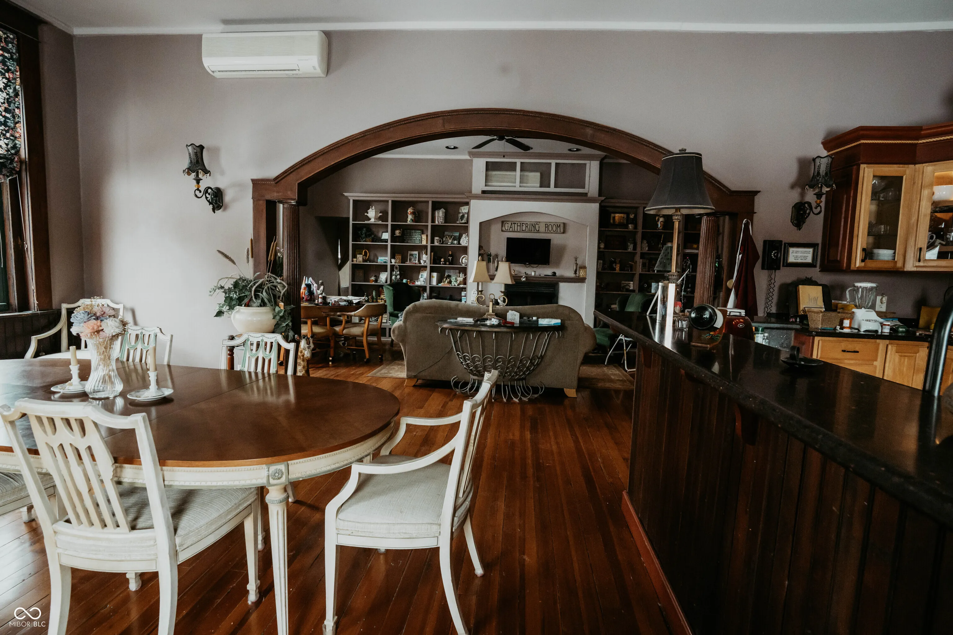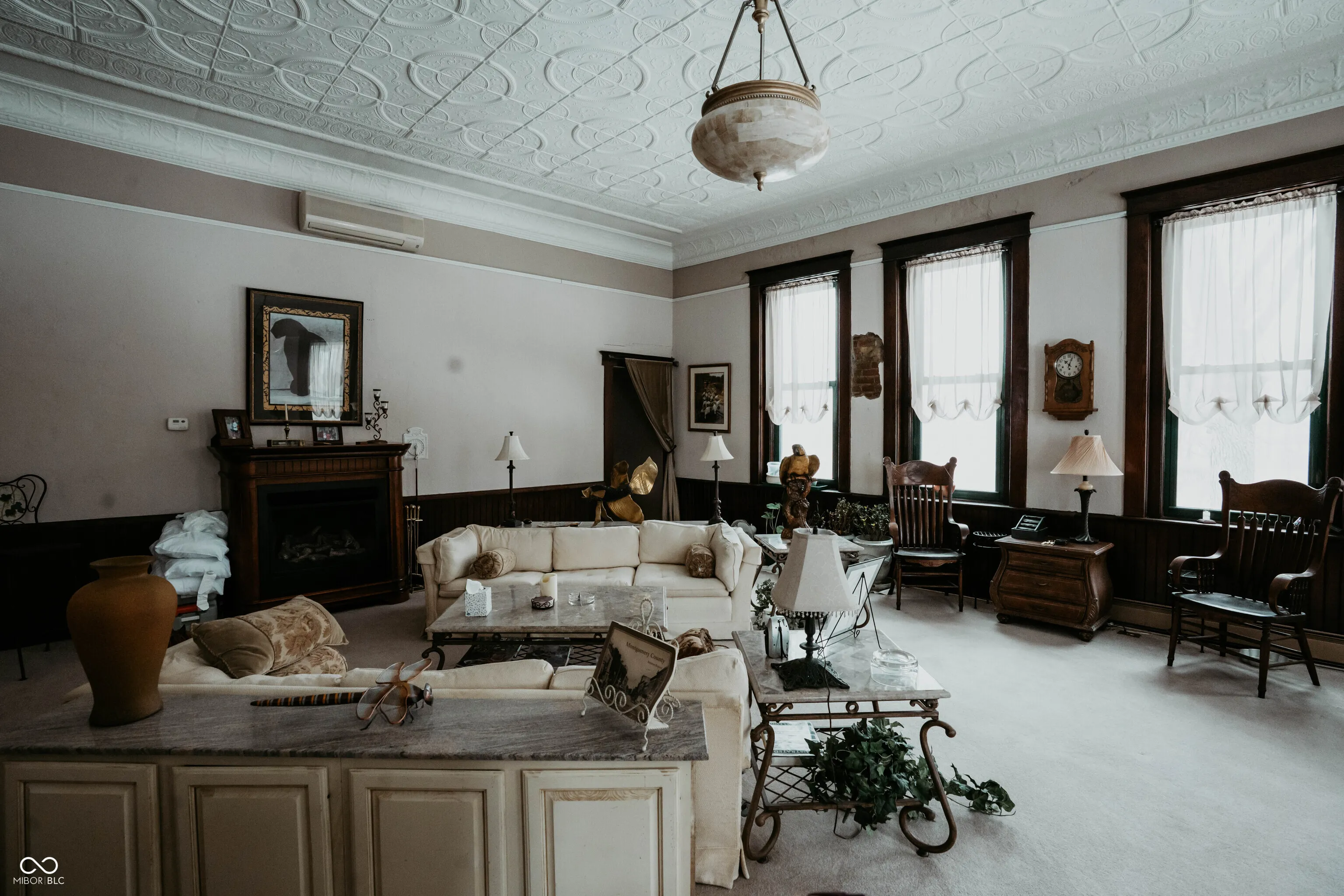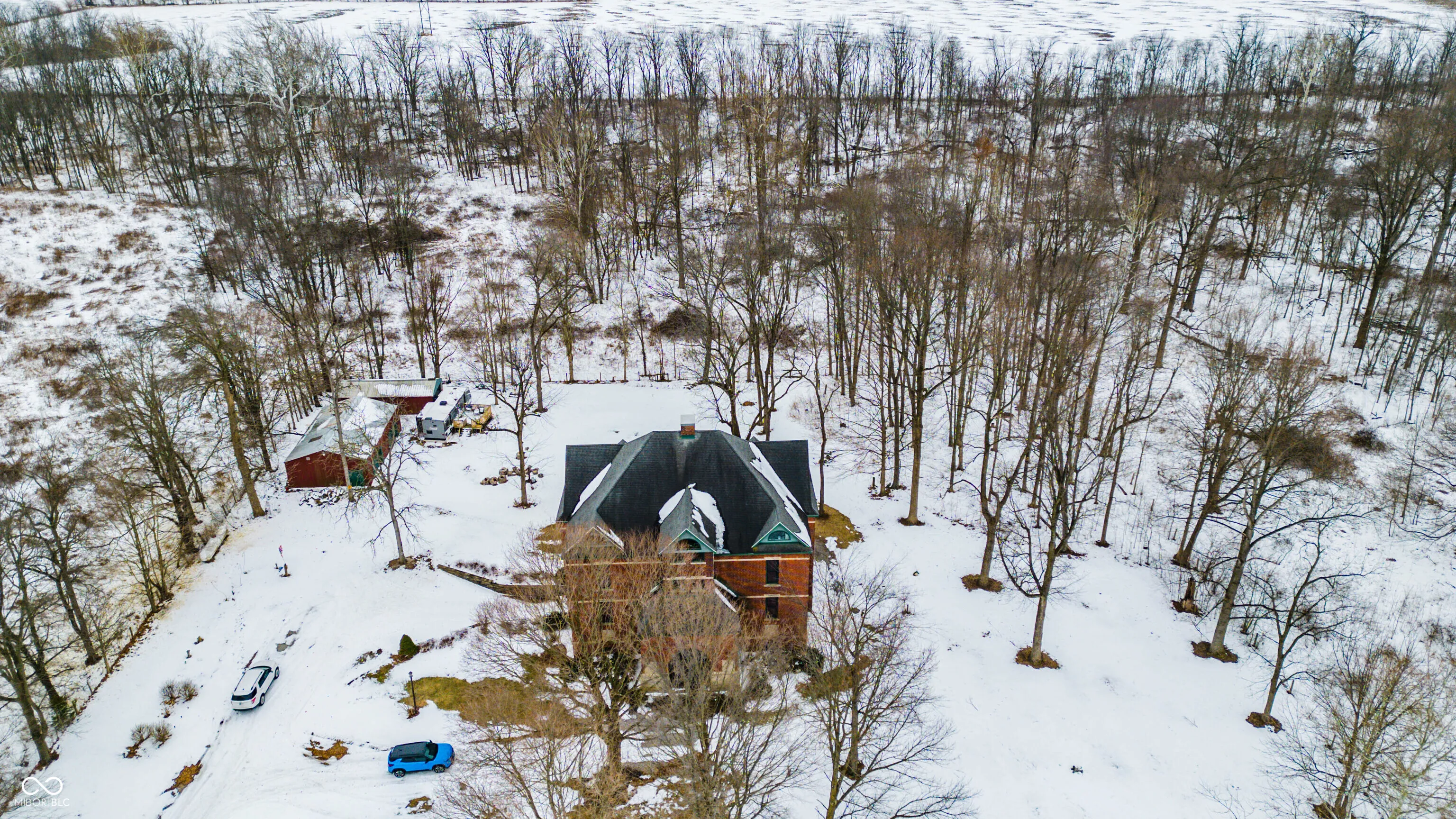 Step into history at this truly unique former Breaks School thoughtfully converted into a spacious single-family home set on 2 acres in the countryside of Crawfordsville. With 4 levels, including basement, 1st, 2nd, and 3rd floors, this remarkable property offers incredible flexibility, character, and charm you simply can’t replicate. The main level welcomes you with a large foyer and wide hallways showcasing beautiful hardwood floors. This floor features a fully equipped kitchen with all appliances included, dining room, cozy family room with fireplace, and a large living room complete with its own fireplace and library; ideal for everyday living and entertaining. The 2nd floor features 2 expansive primary suites; each offering walk-in closets, full baths, and fireplaces, along with a conveniently located laundry room. The 3rd floor adds even more versatility with a 2nd kitchen, dining area, living room, 2 bedrooms, and full bath; perfect for guests, extended living, or multi-generational use. The basement level includes a finished 1/2 bath & laundry combo, a 1 car garage, wine cellar, additional storage space and workshop. Throughout the home, you’ll appreciate the wide hallways, original hardwood floors, and the thoughtful blend of historic character and modern convenience. The property is equipped with dual heating and cooling systems for added comfort and efficiency. Outside, the setting is just as impressive with a pole building featuring two overhead doors, a small barn, and a travel trailer with a wood deck that can remain with the property. A deck off the home provides space to relax and enjoy the peaceful surroundings, all set on 2 beautiful acres. This historic property offers endless possibilities from a distinctive private residence to a potential bed & breakfast or creative retreat. A rare opportunity to own a one-of-a-kind piece of local history with space, character, and flexibility.