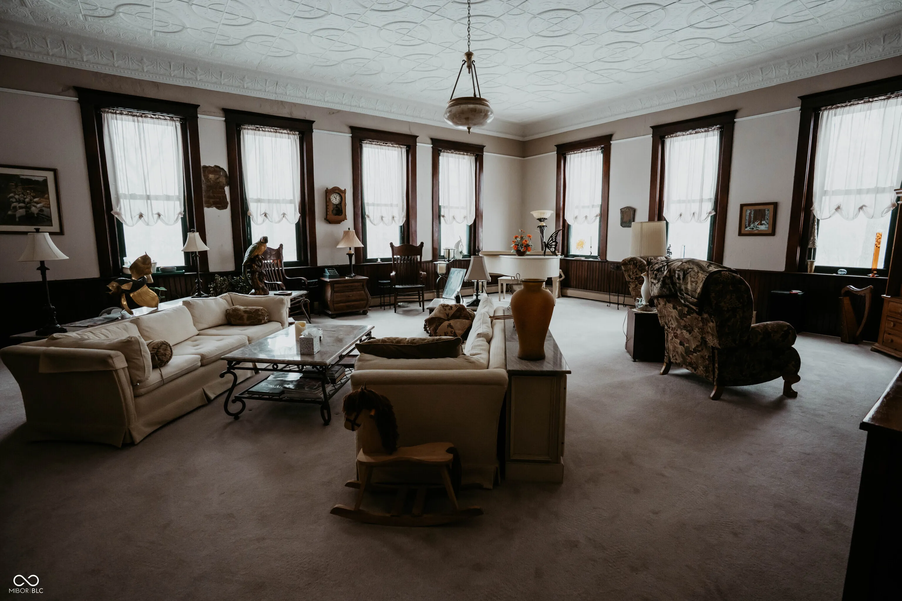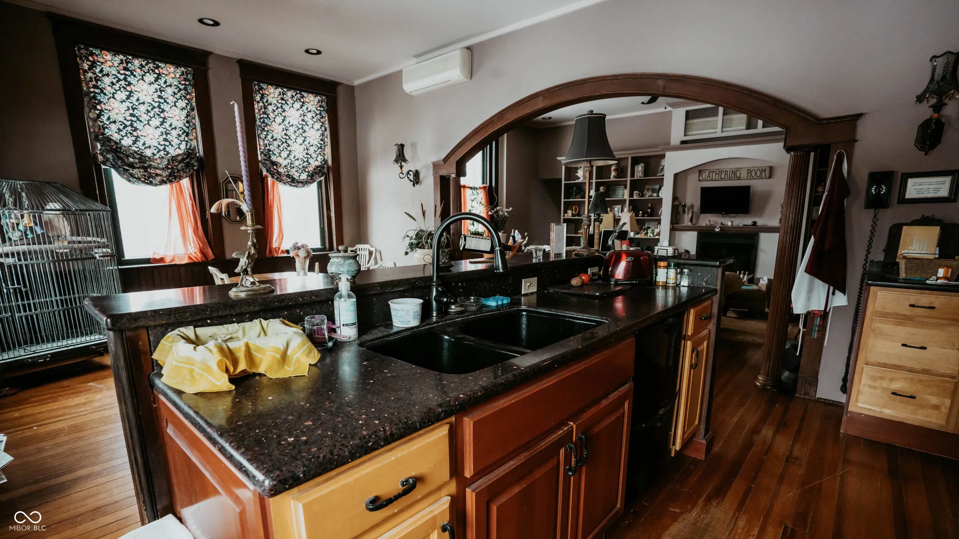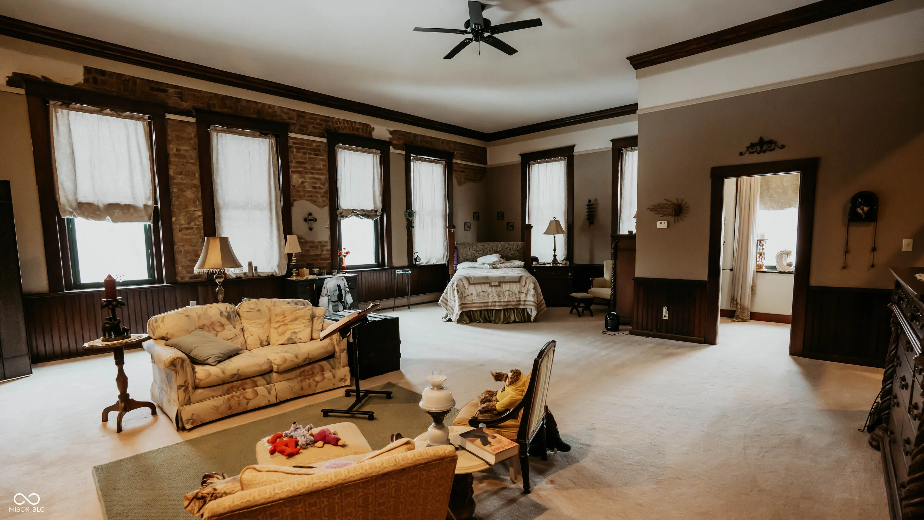 Step into history at this truly unique former Breaks School thoughtfully converted into a spacious single-family home set on 2 acres in the countryside of Crawfordsville. With 4 levels, including basement, 1st, 2nd, and 3rd floors, this remarkable property offers incredible flexibility, character, and charm you simply can’t replicate. The main level welcomes you with a large foyer and wide hallways showcasing beautiful hardwood floors. This floor features a fully equipped kitchen with all appliances included, dining room, cozy family room with fireplace, and a large living room complete with its own fireplace and library; ideal for everyday living and entertaining. The 2nd floor features 2 expansive primary suites; each offering walk-in closets, full baths, and fireplaces, along with a conveniently located laundry room. The 3rd floor adds even more versatility with a 2nd kitchen, dining area, living room, 2 bedrooms, and full bath; perfect for guests, extended living, or multi-generational use. The basement level includes a finished 1/2 bath & laundry combo, a 1 car garage, wine cellar, additional storage space and workshop. Throughout the home, you’ll appreciate the wide hallways, original hardwood floors, and the thoughtful blend of historic character and modern convenience. The property is equipped with dual heating and cooling systems for added comfort and efficiency. Outside, the setting is just as impressive with a pole building featuring two overhead doors, a small barn, and a travel trailer with a wood deck that can remain with the property. A deck off the home provides space to relax and enjoy the peaceful surroundings, all set on 2 beautiful acres. This historic property offers endless possibilities from a distinctive private residence to a potential bed & breakfast or creative retreat. A rare opportunity to own a one-of-a-kind piece of local history with space, character, and flexibility.