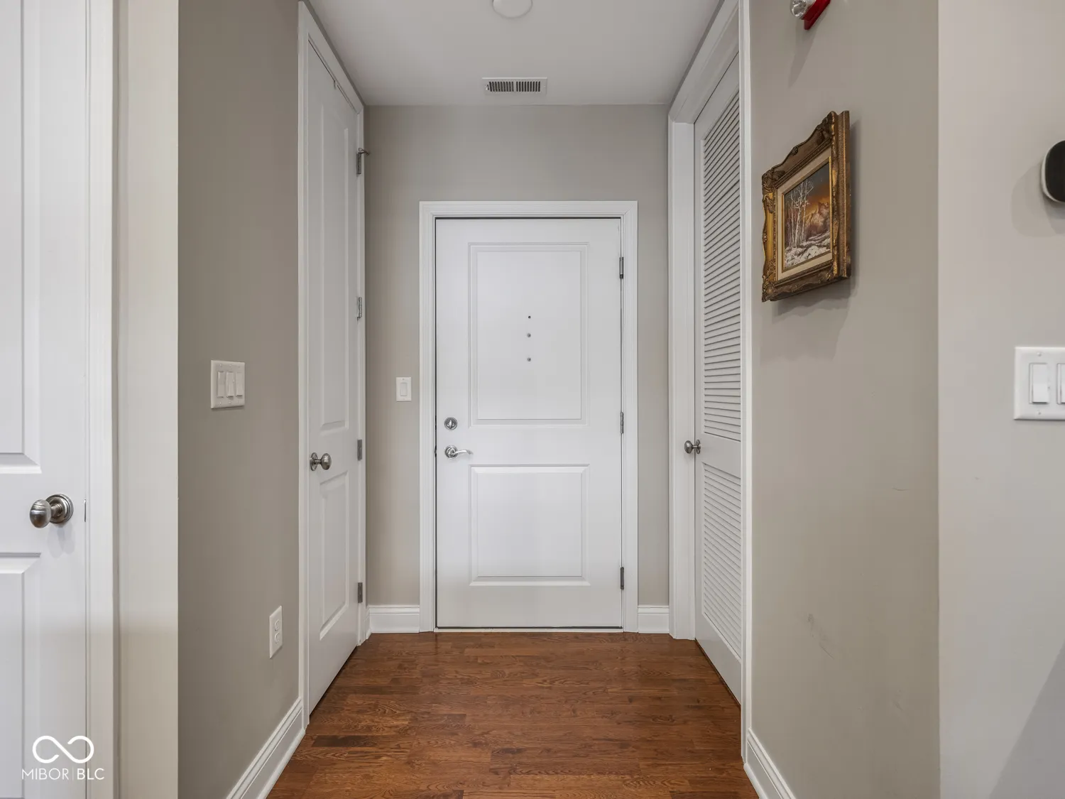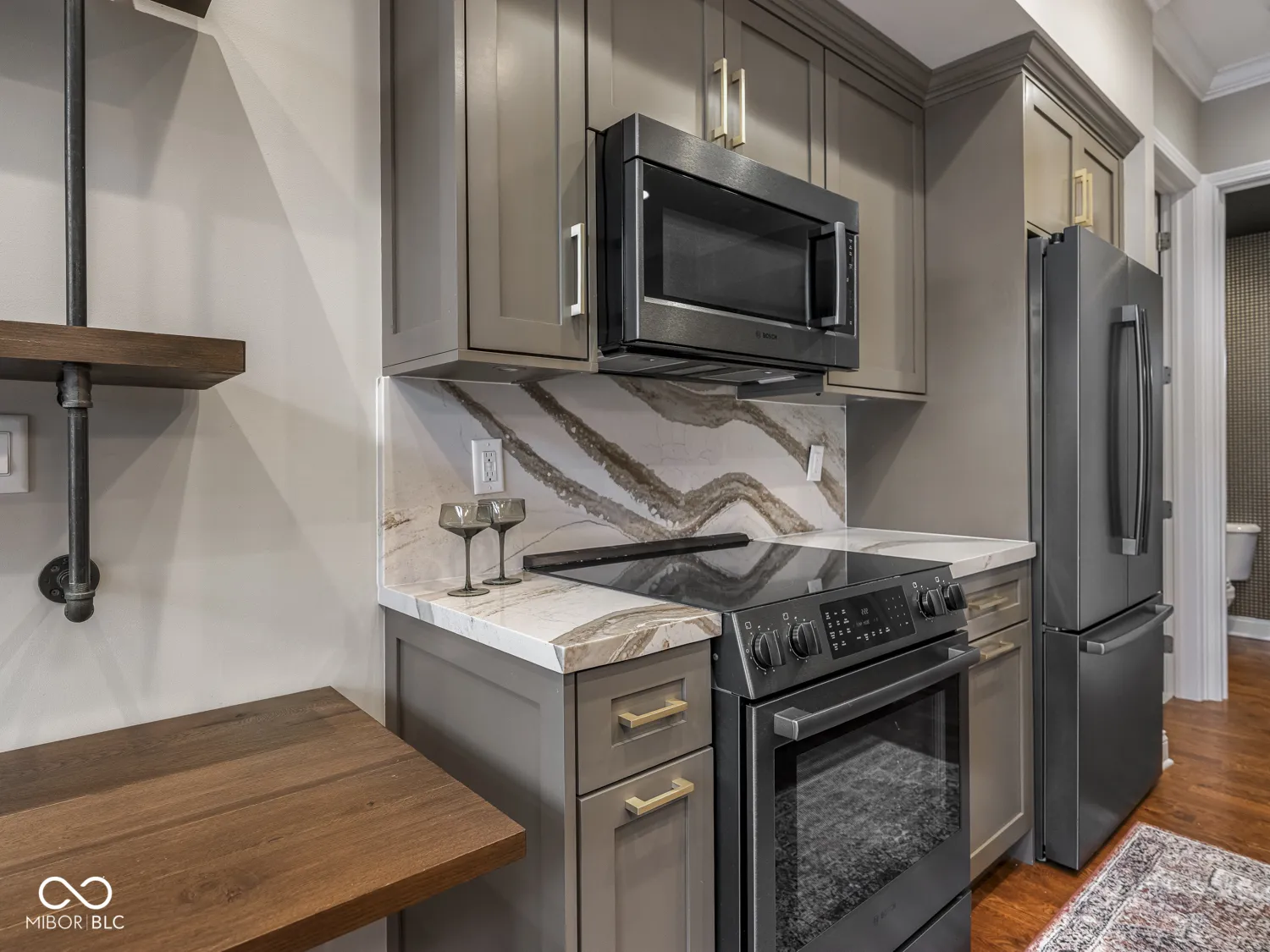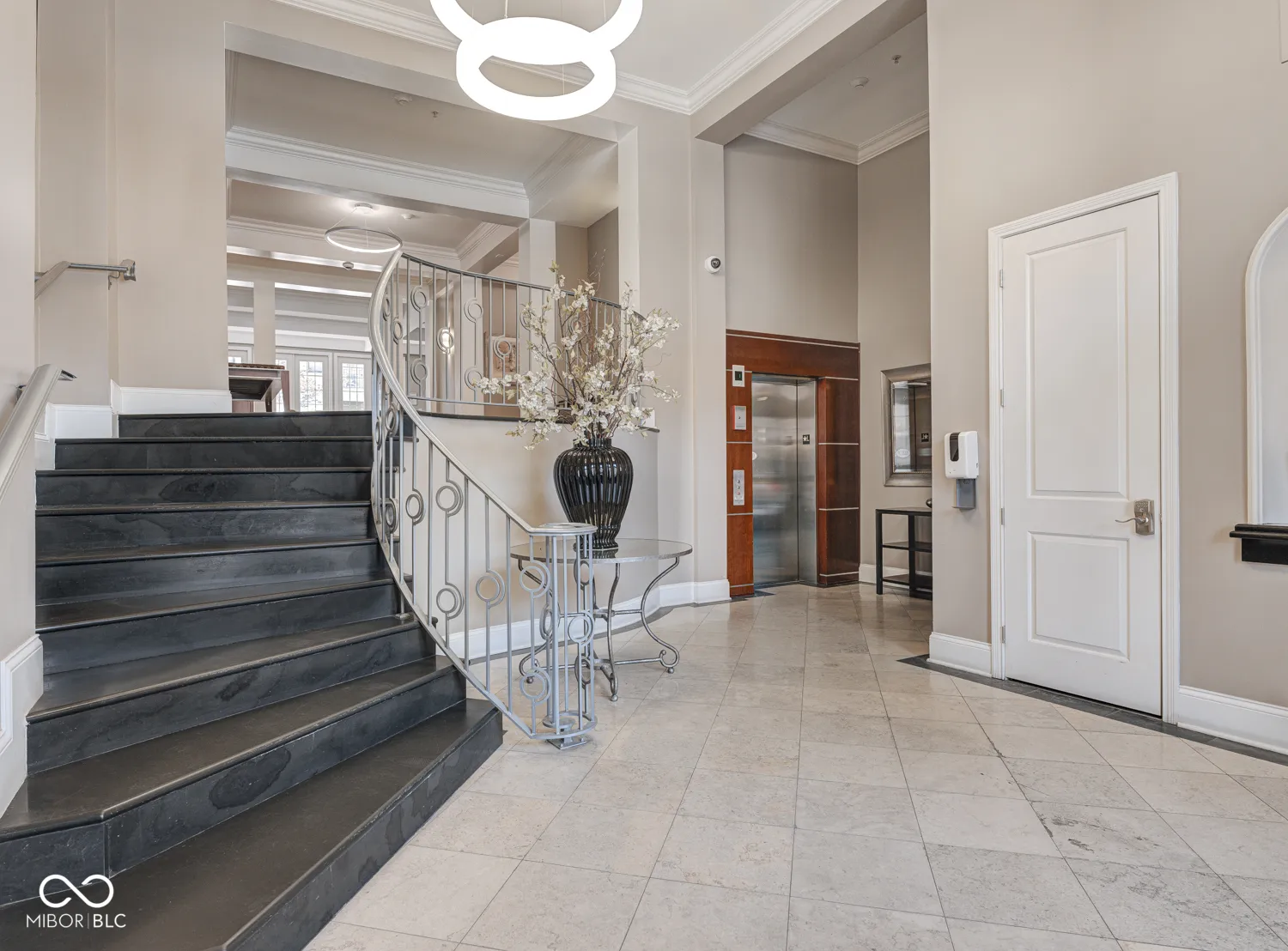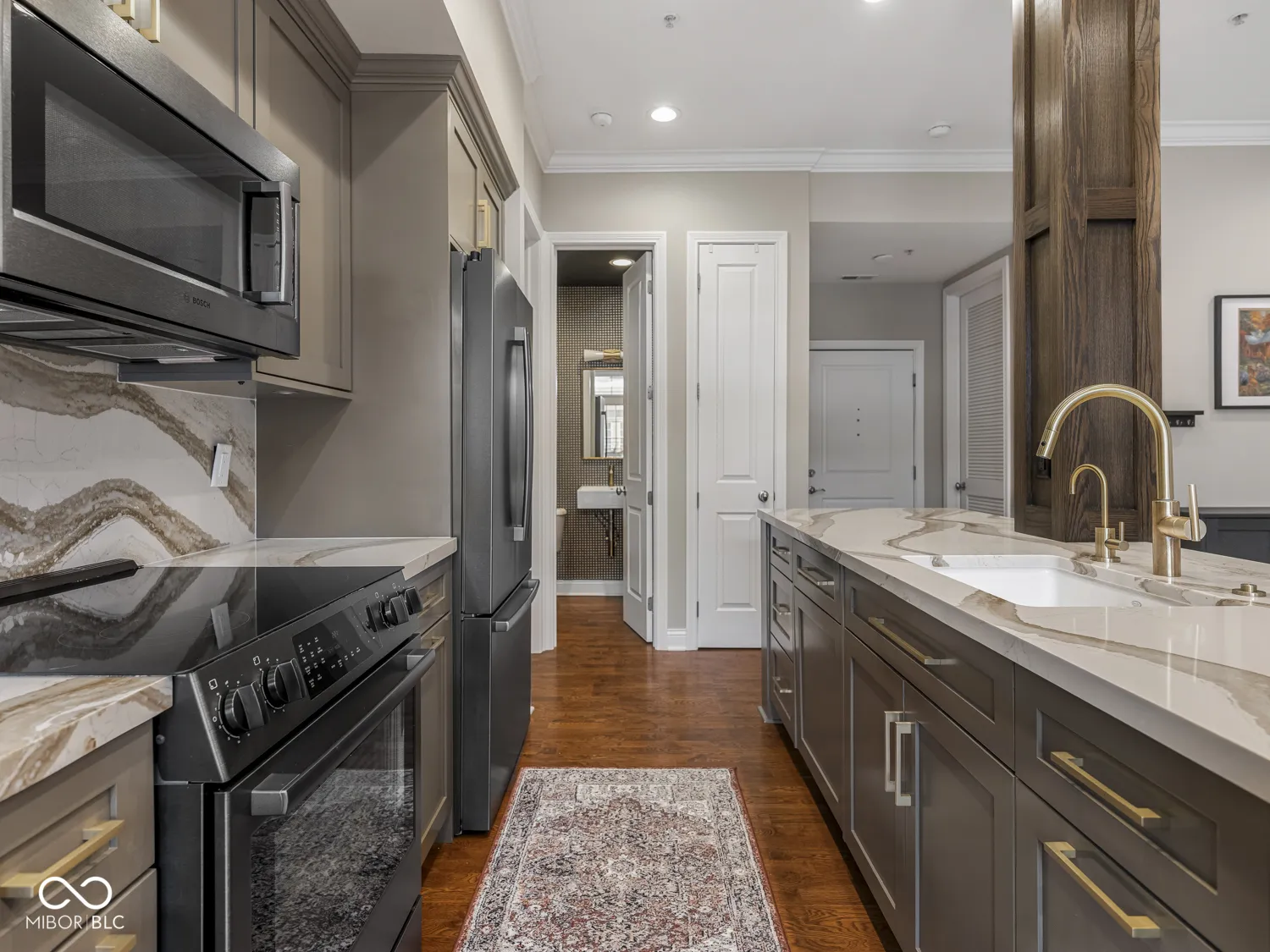 Get ready to live out your downtown Indy dreams // Say hello to this stunning 1 bed, 1.5 bath condo in the Hudson. Luxury meets low-maintenance, with all the things downtown has to offer right outside your door. Beautifully updated in 2020 with quartz countertops, custom cabinets, Bosch kitchen appliances, Asko washer & Dryer, hardwood floors in living space, new carpet (2024) in bedroom, light fixtures, water fixtures, tankless water heater, water softener, and more. Cozy up around the gas fireplace or enjoy mornings on the balcony overlooking the courtyard. Bedroom has a walk-in closet with custom shelving and an updated primary bathroom with shower stall and soaking tub. Garage parking spot with EV charger included. Steps from Tinker Coffee, Whole Foods, the Indianapolis Cultural Trail, and more.
