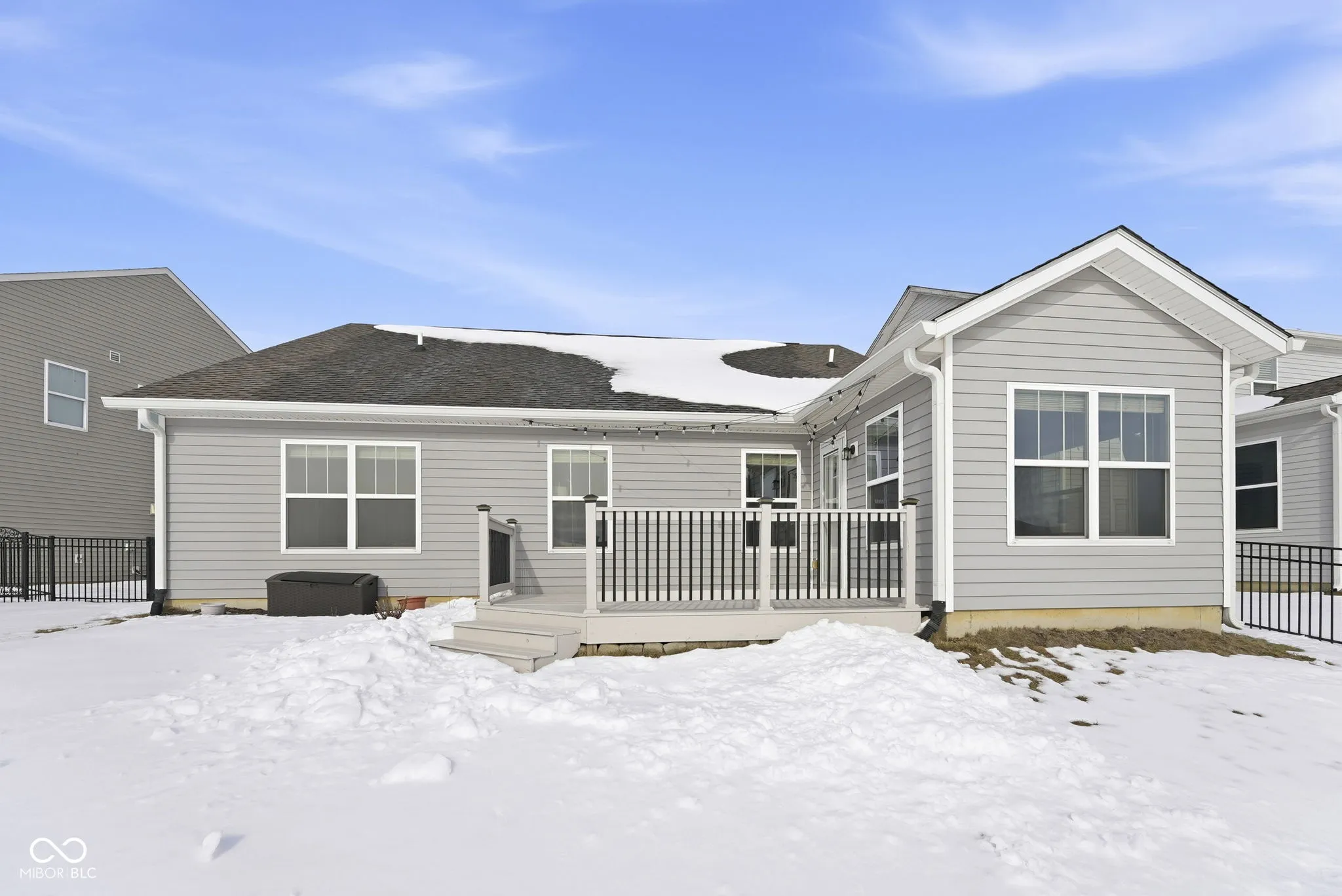 Beautifully updated and thoughtfully maintained, this 3-bedroom, 2-bath single-level home offers comfort, quality, and modern style in a highly desirable Whitestown location. Positioned on a premium pond-view lot, it provides both convenience and a peaceful backdrop. Inside, the open layout and vaulted ceilings create a bright, welcoming feel. The kitchen stands out with a marble backsplash, mitered-edge quartzite island and matching countertops, custom hardware, and stainless steel appliances – elevated finishes that balance style and everyday function. The primary suite has been tastefully refreshed with a fully tiled shower, dual vanity with quartz top, updated fixtures, and excellent storage, creating a clean, modern retreat. Updated flooring, lighting, and thoughtful details throughout reflect consistent care and attention. Major improvements include a new roof (2023), water heater (2024), fence (2024), insulated garage door (2022), and a freshly refinished deck (2025). Pond views, an in-ground fire pit, and an inviting outdoor space complete the setting. The neighborhood adds even more appeal with a community pool, park, dog park, and a nearby summer farmers market on Thursday evenings. Designed for easy everyday living, with the setting, updates, and peace of mind that let you truly enjoy being home.