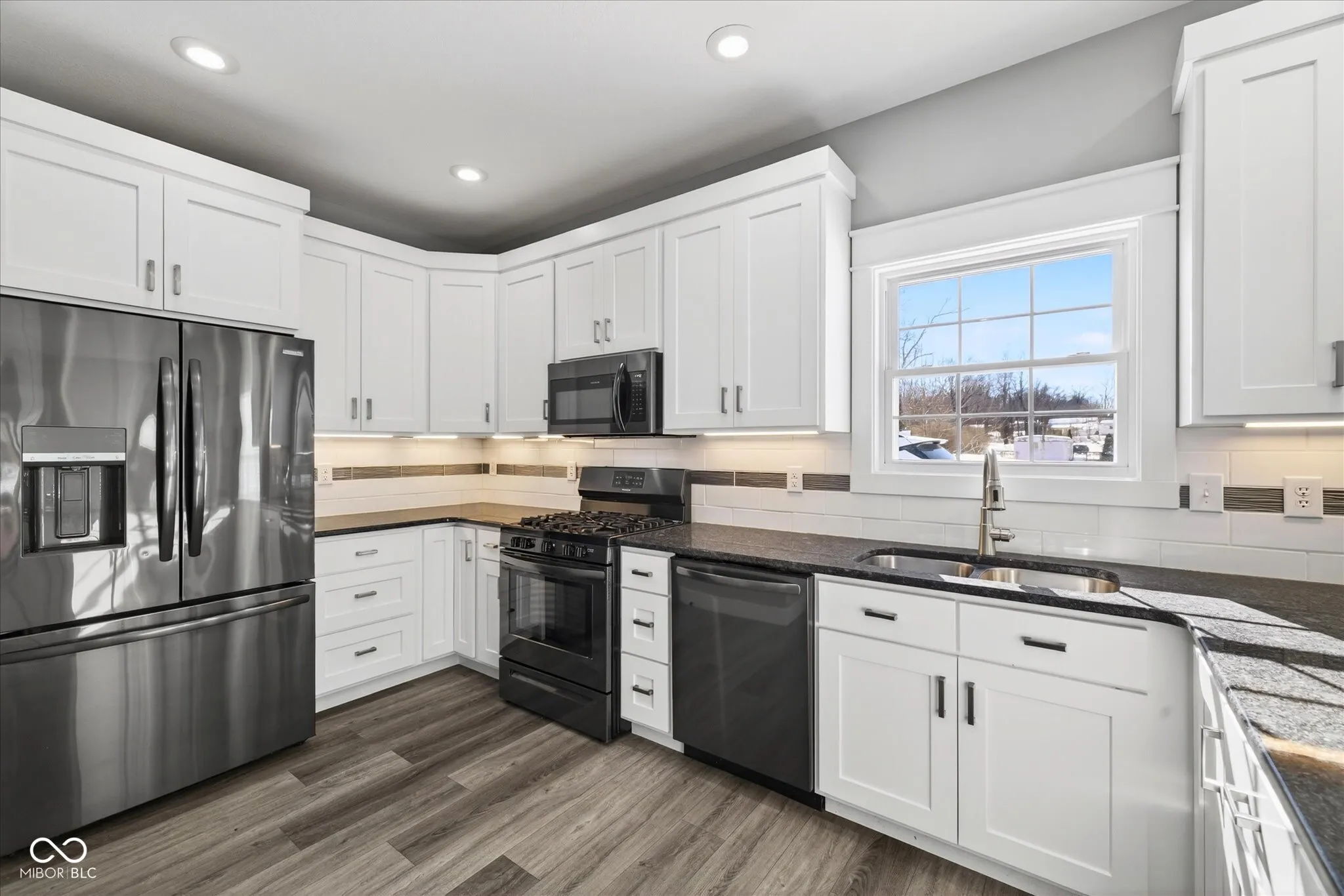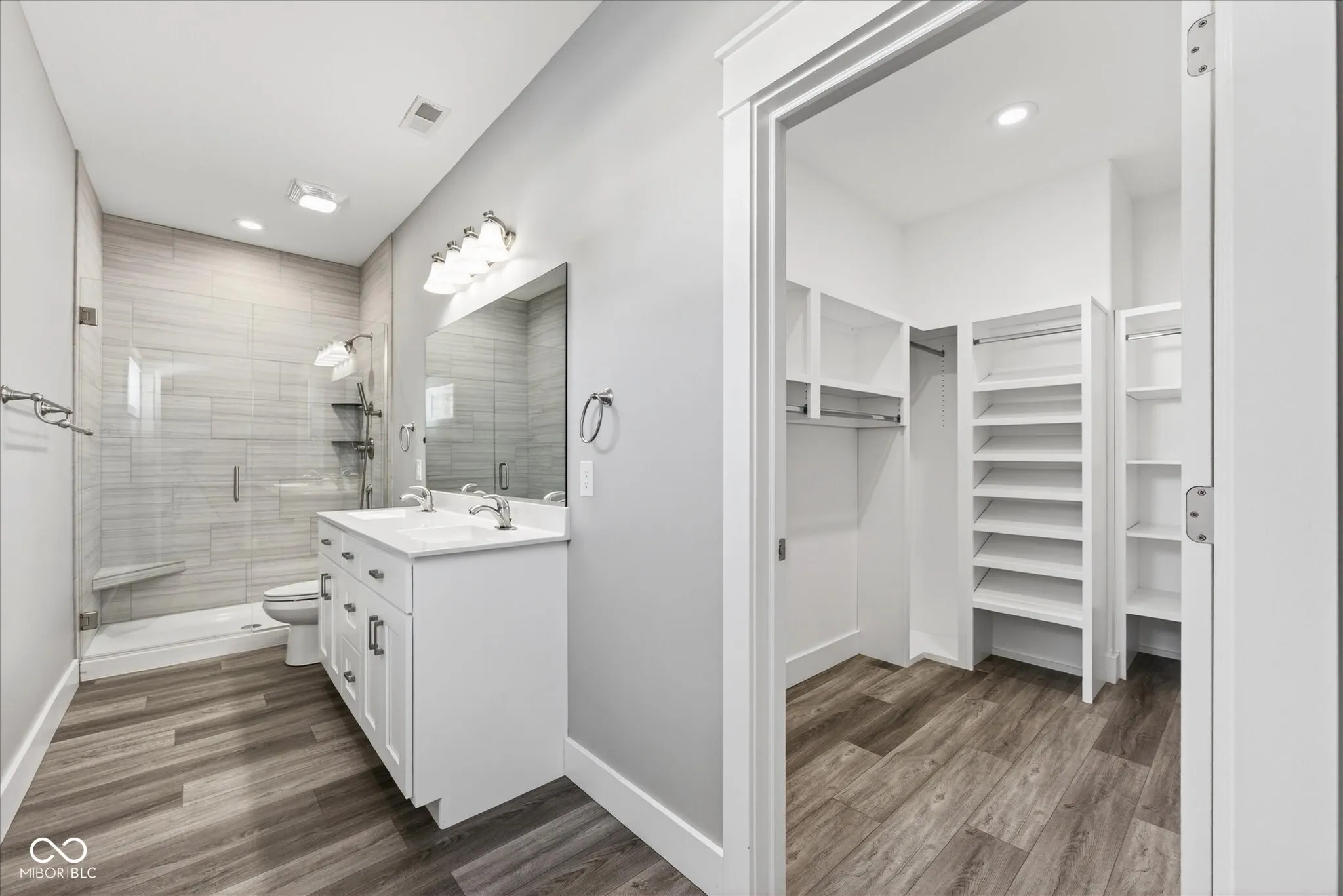 Newer custom home with all on one level living! This like new construction home offers an open floor plan with an inviting fireplace in the living room. The kitchen offers quality solid wood cabinets with dovetail drawers that soft close, granite countertops and stainless steel appliances. There’s also a beautiful tile backsplash and undercabinet lighting. There’s plenty of counterspace for projects and bar seating. The main floor offers 9 foot ceilings and luxury vinyl plank flooring throughout. The main level primary bedroom has an ensuite bathroom and walk in closet. The second main floor bedroom is across from a full bathroom. Next to the kitchen is the main floor laundry and entry from the attached garage. Upstairs you’ll find a third bedroom and third full bath and walk in closet, and a bonus room perfect for entertaining, a home office, tv den or workout room. The home is sited on .45 acre lot and offers a flat, sunny backyard for gardening. The home has an attractive board and batten exterior complimented by stone on the covered front porch. The location of this home is great for commuters as it has quick access to Interstate 69. Moments away is Lake Monroe and downtown Bloomington. Property taxes do not reflect a homestead exemption. According to the Indiana DLGF, taxes payable in 2025 would be estimated at $3,380.00 a year if a homestead exemption was applied.