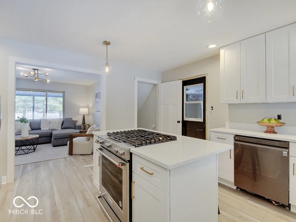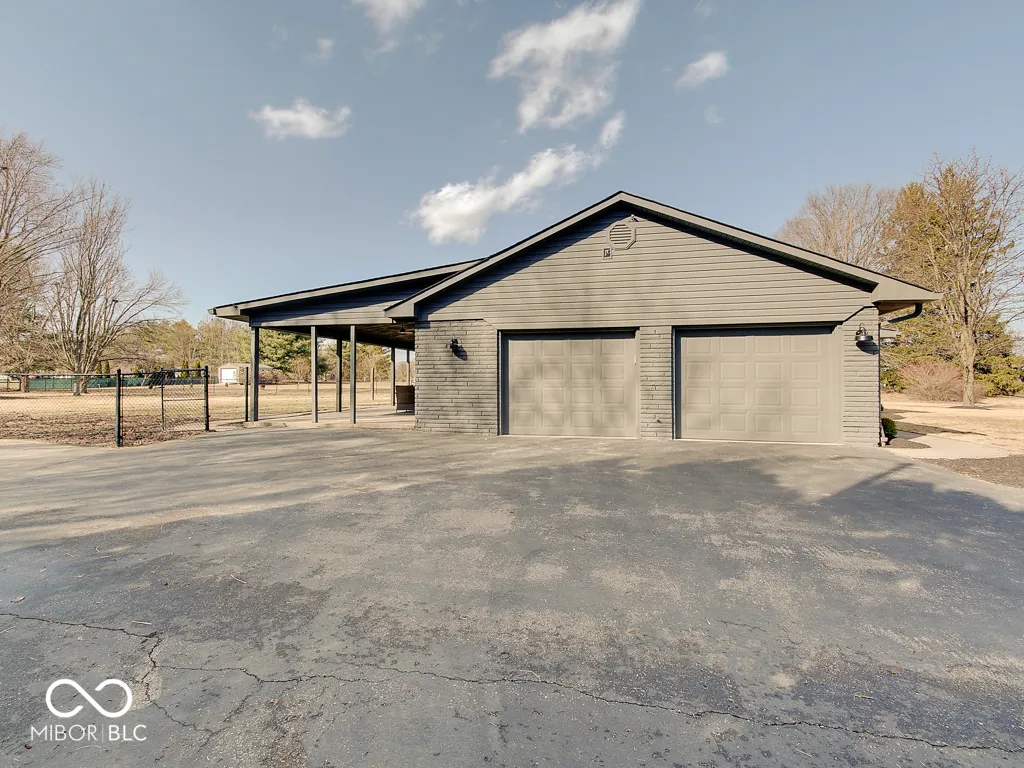 Hard-to-find stone ranch with a full basement on 1 acre in Center Grove Schools, just minutes from downtown Bargersville and within walking distance of Center Grove High School. This beautifully remodeled home offers 3 bedrooms and 3.5 baths, featuring a brand-new kitchen with updated cabinetry and countertops, along with new flooring throughout. A dedicated in-home office with built-in desks and shelving provides the ideal work-from-home setup. The full unfinished basement offers excellent potential for future living space and includes built-in cabinetry for additional storage. The oversized garage features a full bathroom and workshop area, perfect for added functionality. Enjoy a long asphalt driveway, fenced yard, and a mini barn for extra storage. Outdoor living is enhanced by a large covered front porch and a covered back patio, ideal for entertaining. A rare combination of location, acreage, and updates-this property is a must-see.
