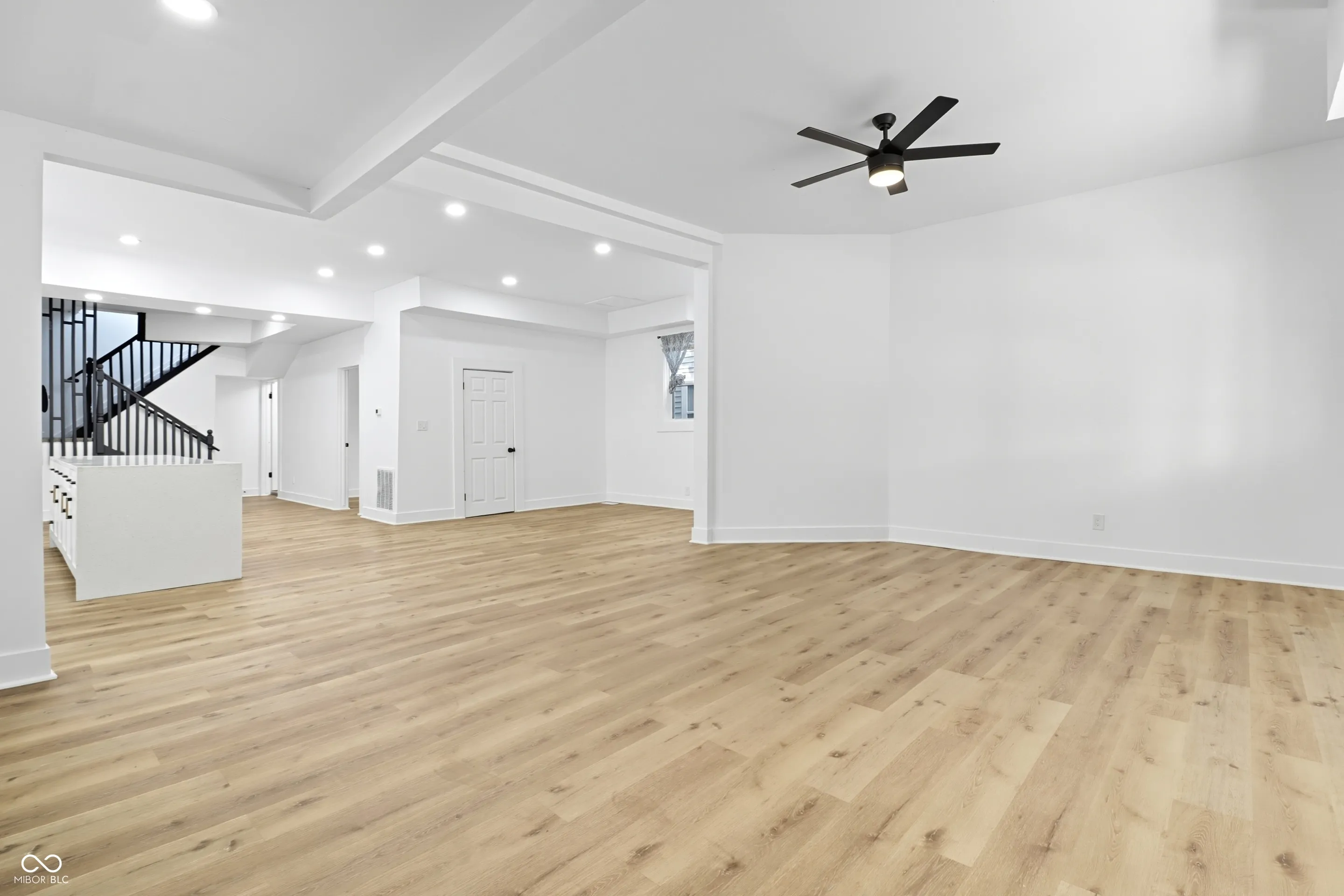 Fully renovated and move in ready, this 5 bed, 3 bath home blends character with modern finishes. Step in your bright and spacious main level entertaining area, where you’ll be invited into the living , kitchen, and dining area. Facing towards the dining area, a sleek kitchen featuring quartz countertops, waterfall island, mosaic black-splash, and stainless steel appliances. The main floor primary ensuite is ducked off in the rear of the home, for added privacy and relaxation. All the rooms are nicely sized with an additional bedroom or office on the main, as well as one full bath. Upstairs you’ll find three oversized bedrooms plus one full chic bath. All bathrooms have contemporary custom tile and Matte black fixtures. Easy access to parks, dining, and downtown attractions including Lucas Oil Stadium.