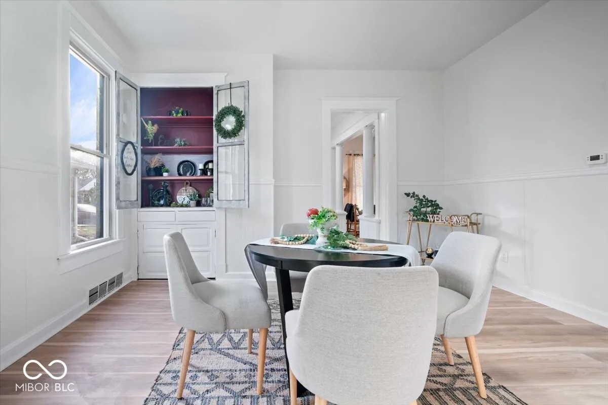 Welcome to 1741 S State Ave – where timeless character meets modern updates. Originally built in 1910, this beautifully refreshed two-story home offers over 2,100 square feet of thoughtfully updated living space while preserving its historic charm. A covered front porch invites you inside to a formal foyer perfect for greeting guests. The main level features luxury vinyl plank flooring throughout, a spacious formal dining room with classic built-ins, and a fully renovated kitchen showcasing quartz countertops, stylish finishes, and an open layout ideal for everyday living and entertaining. One bedroom and a full bath on the main level provide flexible living options for guests, a home office, or multi-generational needs. Upstairs, you’ll find additional bedrooms plus a versatile loft space perfect for a home office, playroom, or secondary living area. With four bedrooms and two full baths total, the layout offers both functionality and privacy across two well-designed levels. Major updates provide peace of mind, including a brand-new HVAC system, A/C unit, water heater, and roof. The refrigerator and dishwasher are included, making this home truly move-in ready. Outside, a new fence is being completed, and the rear of the property offers ample parking along with space to enjoy outdoor living or create your own landscaping vision. Located just minutes from downtown Indianapolis, Garfield Park, Pleasant Run Greenway, the new Marion County Community Justice Campus, Fountain Square, and University of Indianapolis, this home offers both convenience and connection to some of the city’s most vibrant destinations. This is a rare opportunity to own a piece of history with the updates today’s buyers are looking for – ready to welcome its next chapter. *ASK About special grants and funding for this home*