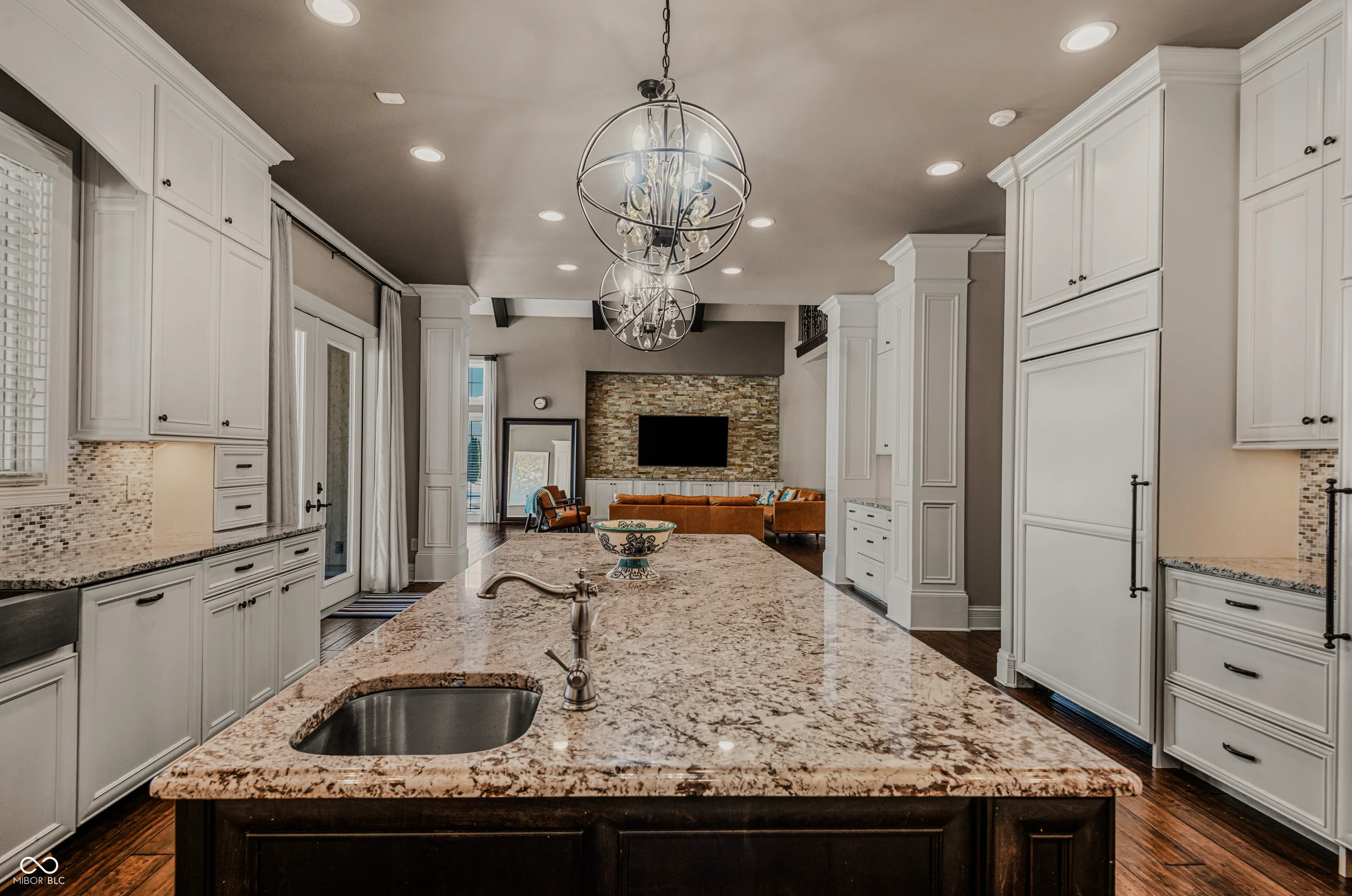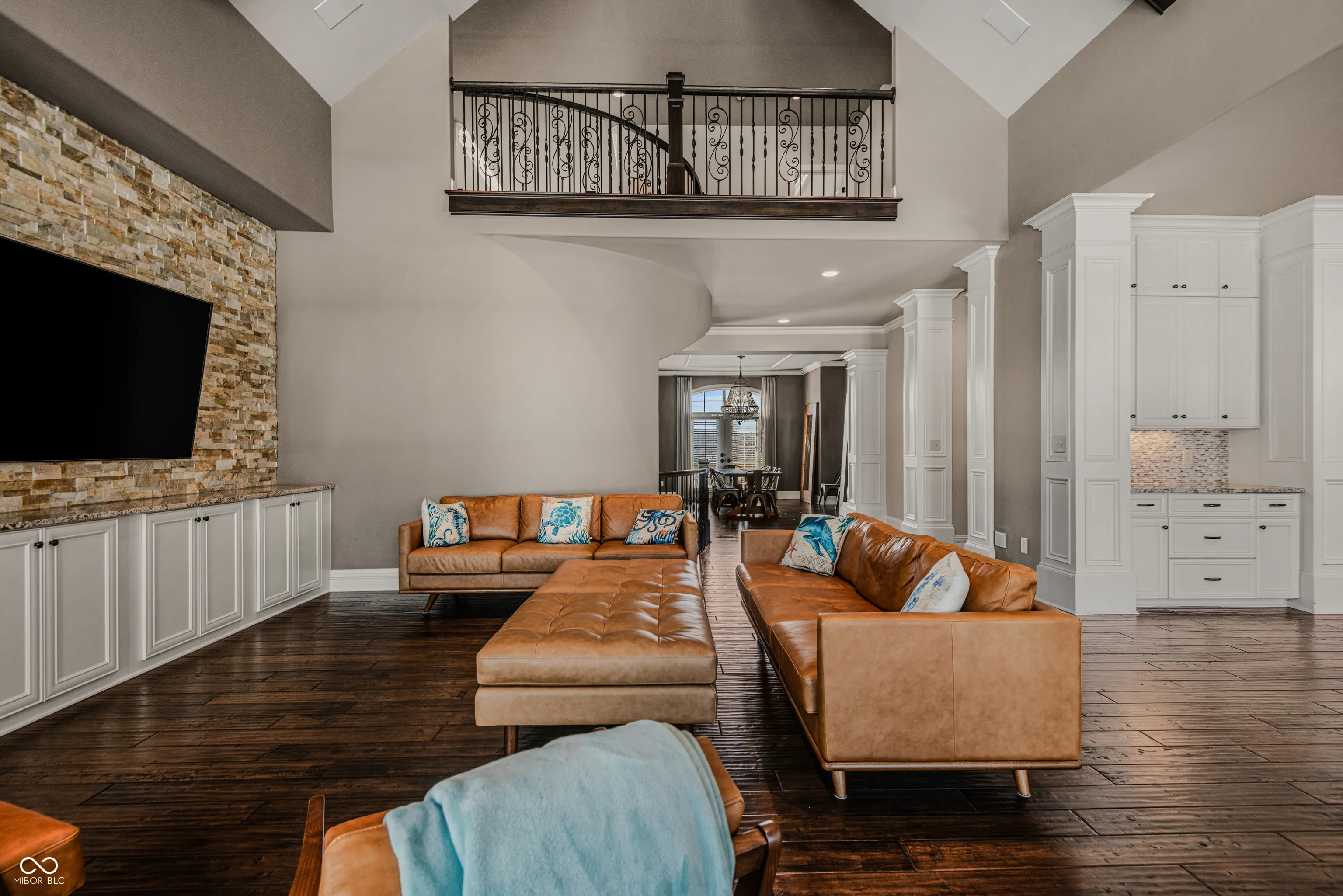 Stunning Custom-Built Estate in Tipton Lakes. Experience timeless elegance blended with modern innovation in this exceptional custom residence located in the prestigious Tipton Lakes community. Spanning approximately 9,000 square feet, this remarkable home combines classic architectural detail with advanced smart-home technology, creating a refined yet highly functional living environment. A grand foyer welcomes you with a sweeping staircase that introduces the craftsmanship and custom finishes found throughout. The sunlit family room features a dramatic two-story cathedral ceiling with exposed beams and flows seamlessly into the gourmet kitchen. Designed for both beauty and performance, the kitchen offers custom Amish cabinetry, a generous center island, granite countertops, GE Monogram appliances, and custom wall refrigerators, ideal for everyday living and effortless entertaining. The formal dining room provides an elegant setting for memorable gatherings. The main level also includes a walk-in pantry, butler’s pantry, mudroom, powder room, and a private guest suite. A dedicated office offers flexibility for work or quiet retreat. Upstairs, the primary suite serves as a true sanctuary with a sitting area, custom walk-in closet, and spa-inspired bath featuring heated floors and a luxurious shower. Two additional ensuite bedrooms with walk-in closets, a guest room or playroom, and a conveniently located laundry room complete the upper level. The lower level is designed for recreation and relaxation, showcasing a theater room, billiards area, spacious rec room, fitness room, bonus room, and guest suite. Outdoor living is equally inviting with a covered patio, cozy fireplace, and built-in gas stovetop for year-round enjoyment. An oversized garage with epoxy flooring, additional washer and dryer hookup, and abundant storage enhances the thoughtful layout. This estate is more than a home; it is a lifestyle defined by comfort, quality, and exceptional craftsmanship.