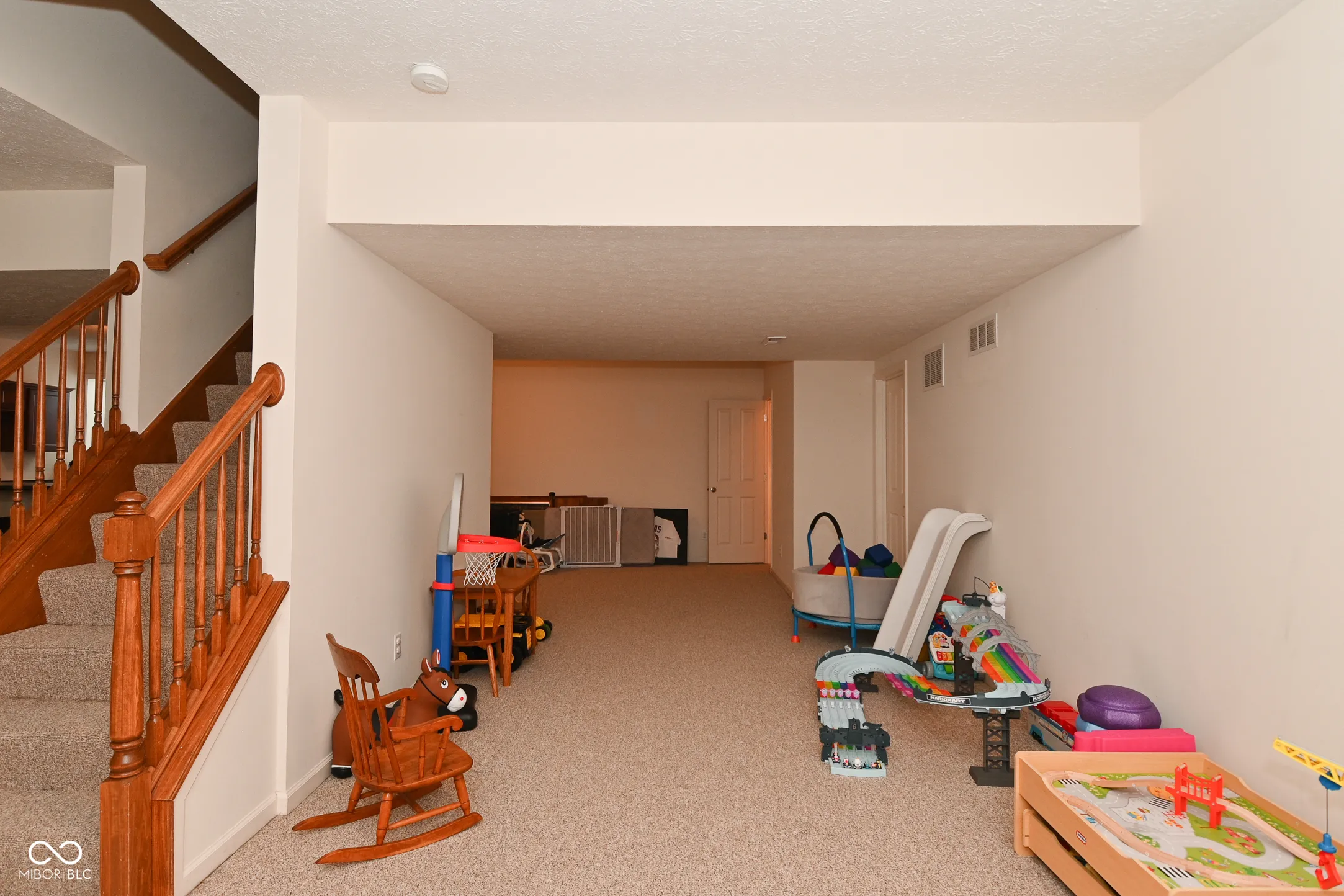 Beautiful Zionsville home in Rock Bridge. Main and second levels updated with LVP flooring & new carpet, paint, light fixtures, and custom touches. You will love the brand new kitchen with large center island, tiled backsplash, quartz countertops, and SS appliances. Great room gives all the cozy feels with wood beams and a fireplace. Home office with glass French doors and a formal living room off the foyer. Upstairs are four spacious bedrooms. The finished basement is perfect for entertaining with a wet bar & appliances, large family room, and full bathroom. The garage has a tandem bay and allows room for 3 cars. Enjoy the new low maintenance composite deck and private tree lined fenced in yard. Community pool and playground too.