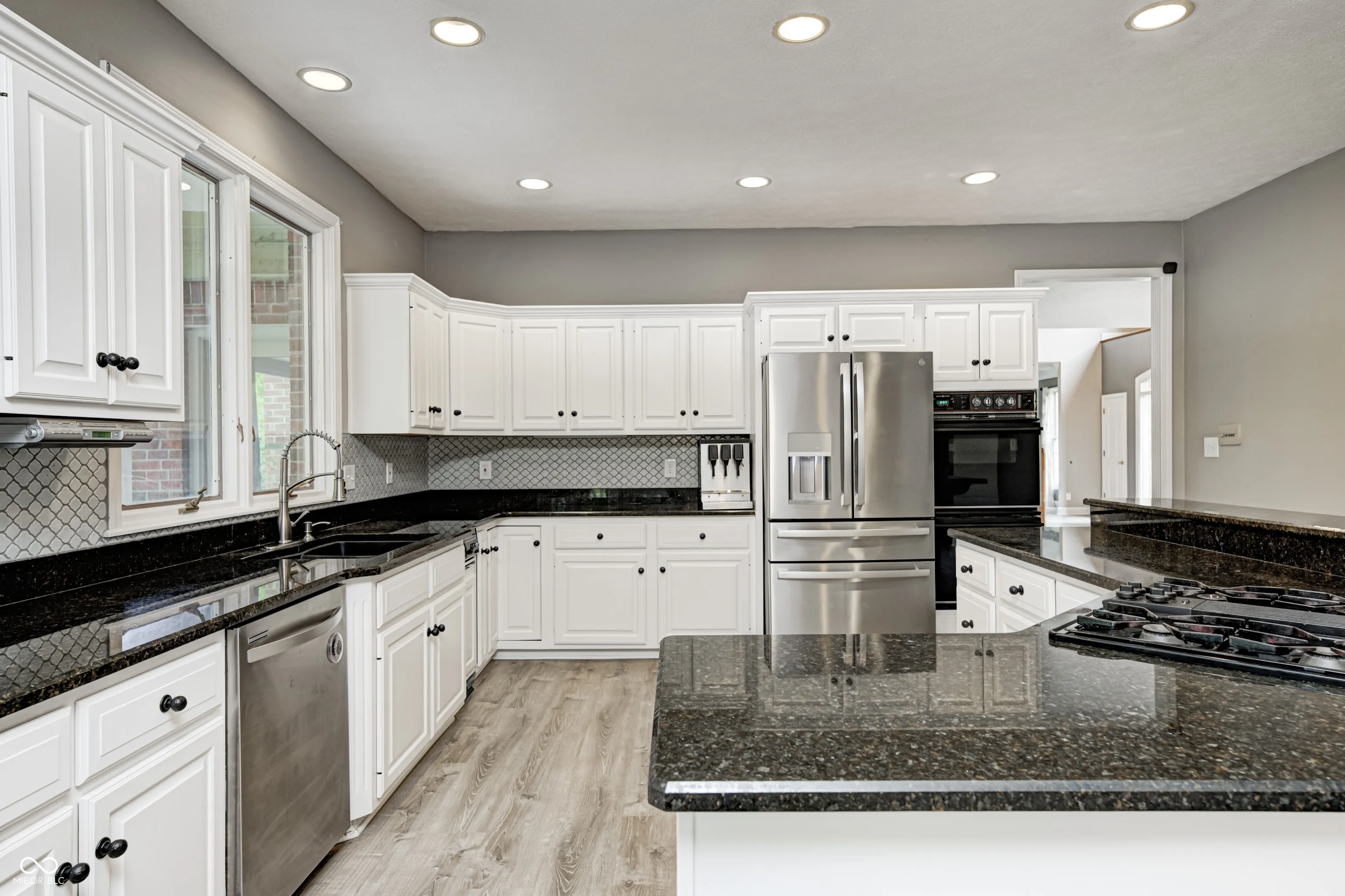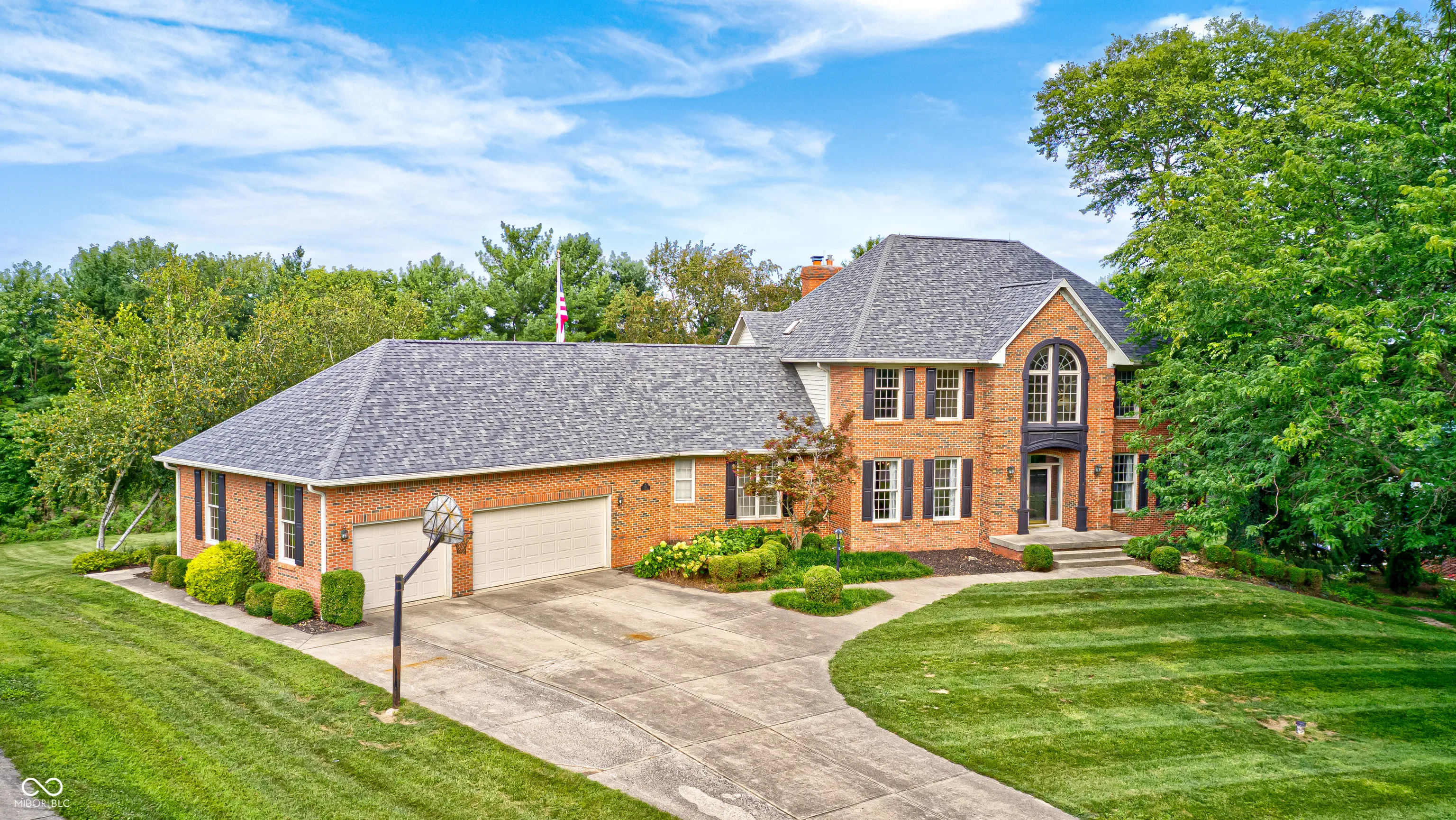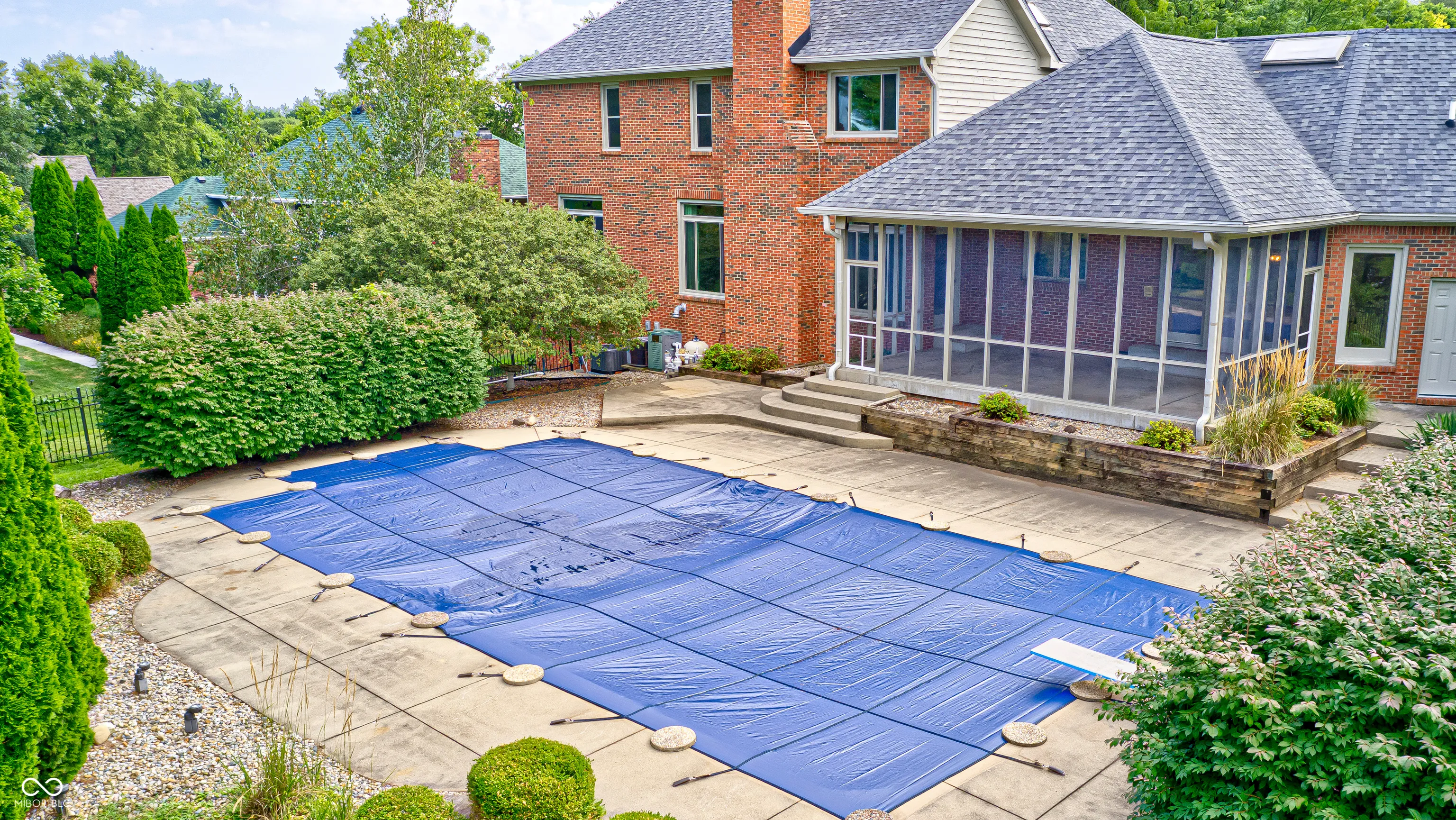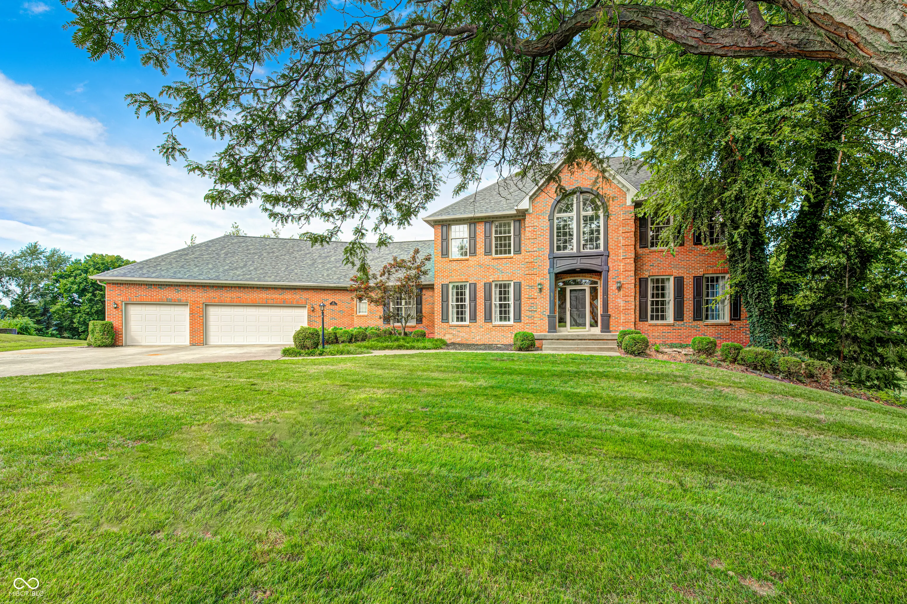 Discover your dream home in the highly sought-after Big Four Crossing subdivision of Crawfordsville! This beautiful custom two-story brick residence sits on a generous 0.59-acre lot, showcasing professionally landscaped yard. As you step through the grand entrance, you’ll be greeted by an eye-catching split stairway leading to a luxurious main bedroom suite, complete with a spacious walk-in closet and a retreat-style bath featuring a custom two-person tile walk-in shower. Two additional upper-level bedrooms, each with their own ensuite full bathroom for privacy. The main level boasts a guest bedroom with a convenient half bath just outside the door, a formal living room, and a dining room perfect for entertaining. The great room, highlighted by a charming brick fireplace, and the new energy efficient oversized windows that overlooks the in-ground pool and sprawling fields. The pool has a brand-new liner and new pool heater. Culinary enthusiasts will love the large custom chef’s kitchen, equipped with a gas stove, double ovens, and all kitchen appliances included-even a built-in 3-head beverage system for soda lovers! The kitchen features granite countertops and custom wood cabinetry, providing an inviting space for cooking and family gatherings, complete with an informal eating area. Step outside to the expansive newly refurbished screened-in porch, perfect for enjoying warm evenings without the bother of bugs, overlooking the 20×40 in-ground pool. Fenced in backyard. 3 -car attached garage and oversized rooms throughout, this home offers plenty of space for all your needs. The finished basement includes a family room, additional bedroom and full bathroom, creating an ideal private space for guests or the perfect area for a gym. Fresh paint throughout.