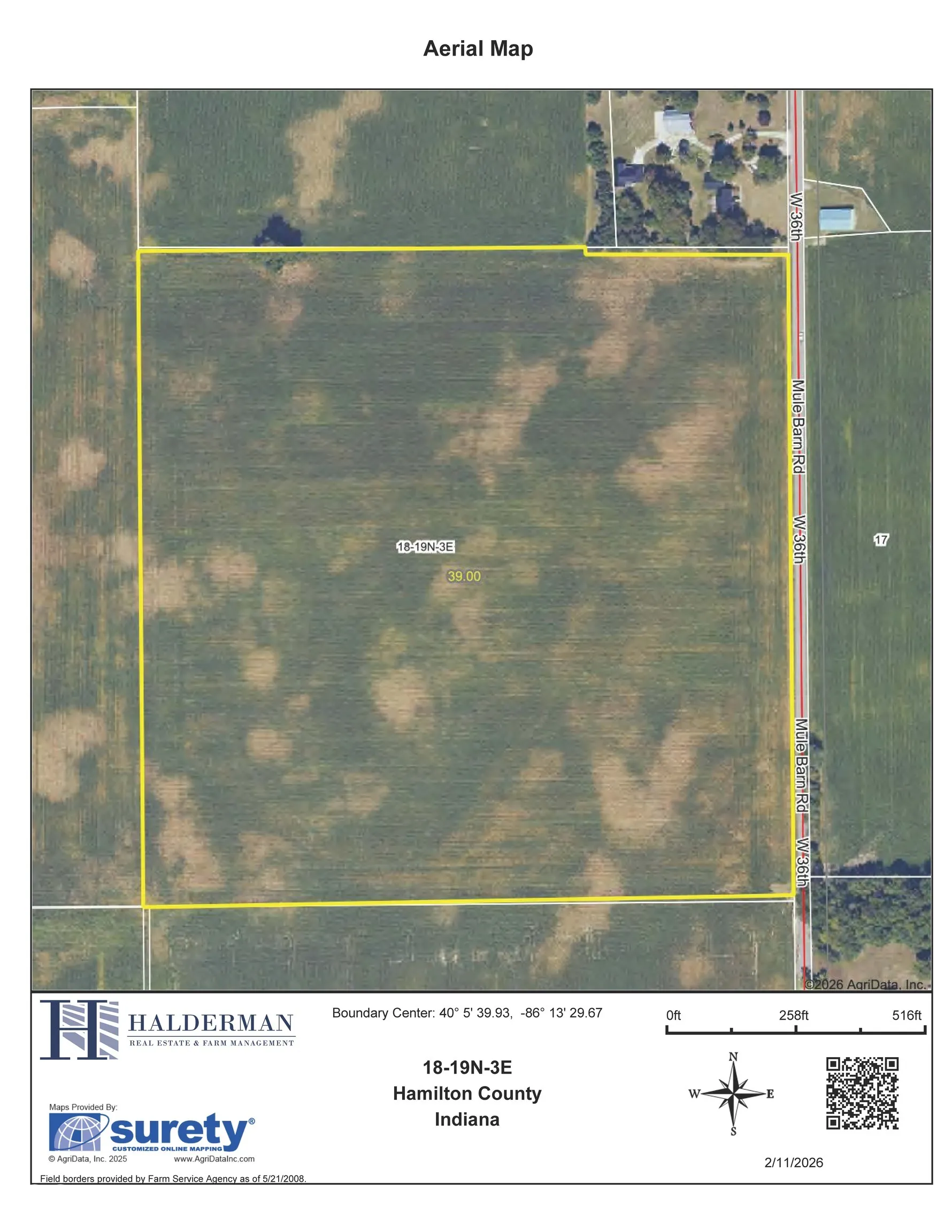 Rare 39-acre parcel strategically located between the growing communities of Westfield and Sheridan, this tract offers top-notch farm productivity, scenic rural character, and flexible development potential. It is a perfect opportunity for a mini farm, builders looking for large lot acreage, or investors seeking a farm with long-term value. This property features level terrain well suited for continued row crop production, hobby farm use, or peaceful country living just minutes from everyday conveniences and major roadways. Whether you’re looking to expand your existing land holdings, build your dream estate in a tranquil rural setting, or position a versatile investment in one of central Indiana’s most desirable growth corridors, this 39-acre farm represents a truly unique opportunity. Visit Halderman website for aerial tour and more information.