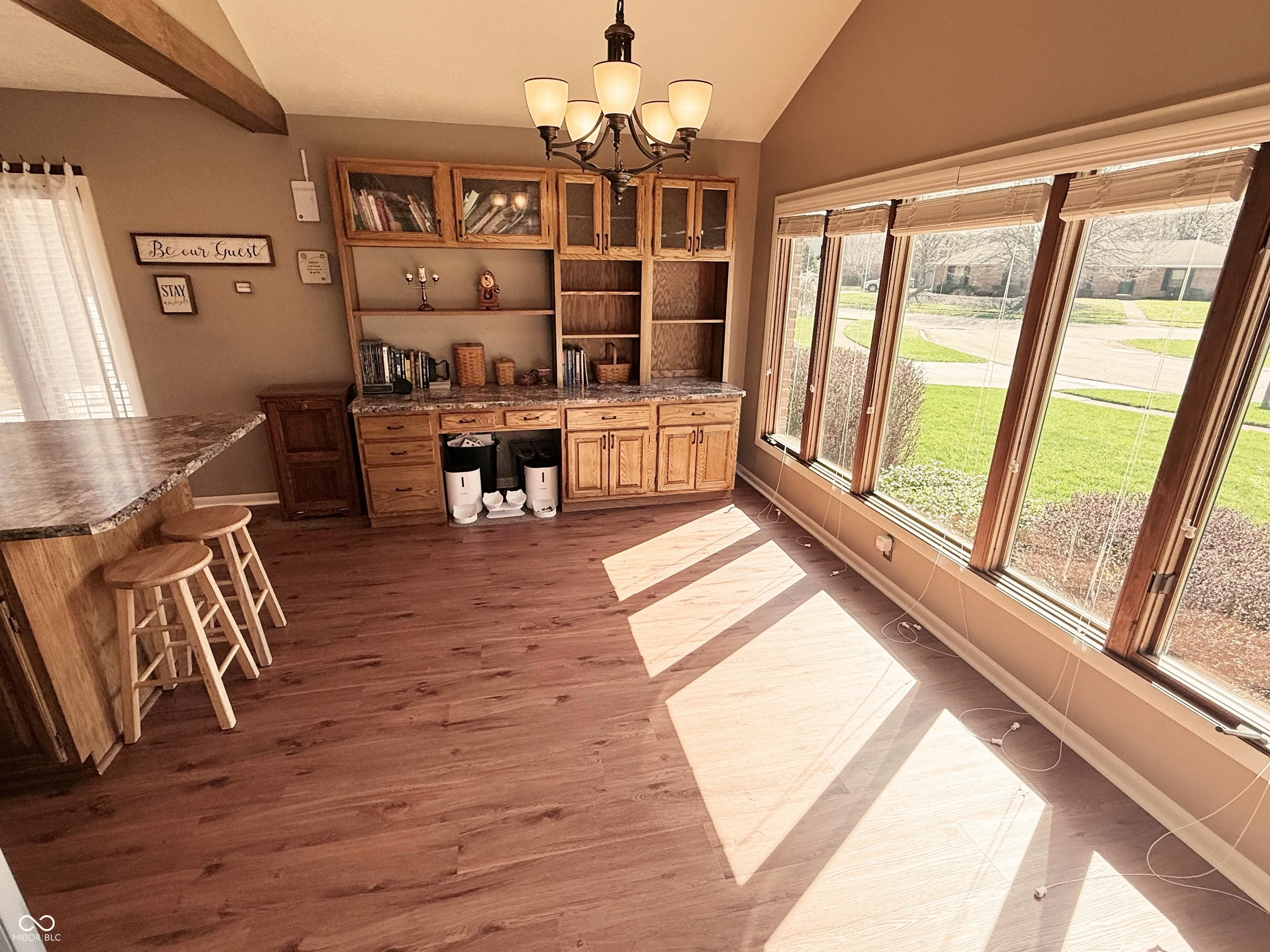 Fall in love with this wonderfully maintained home featuring a sparkling in-ground pool and a lovely backyard perfect for entertaining. This unique property offers 3 bedrooms, 2 full bathrooms, and a fully finished basement, providing plenty of space for comfortable living. Step inside to find new vinyl plank flooring in the entry, kitchen/dining area, and family room. Cathedral ceilings elevate the dining room and large living room, filling the space with abundant natural light and offering a lovely view of the neighborhood. The cozy family room with fireplace opens to a charming threeseason sunroom, which overlooks the patio and pool area-ideal for relaxing or hosting gatherings. The pool house, complete with a half bath, keeps all pool equipment neatly stored, while an additional backyard storage shed provides space for lawn tools and more. This home blends beauty, functionality, and outdoor enjoyment in one inviting package.
