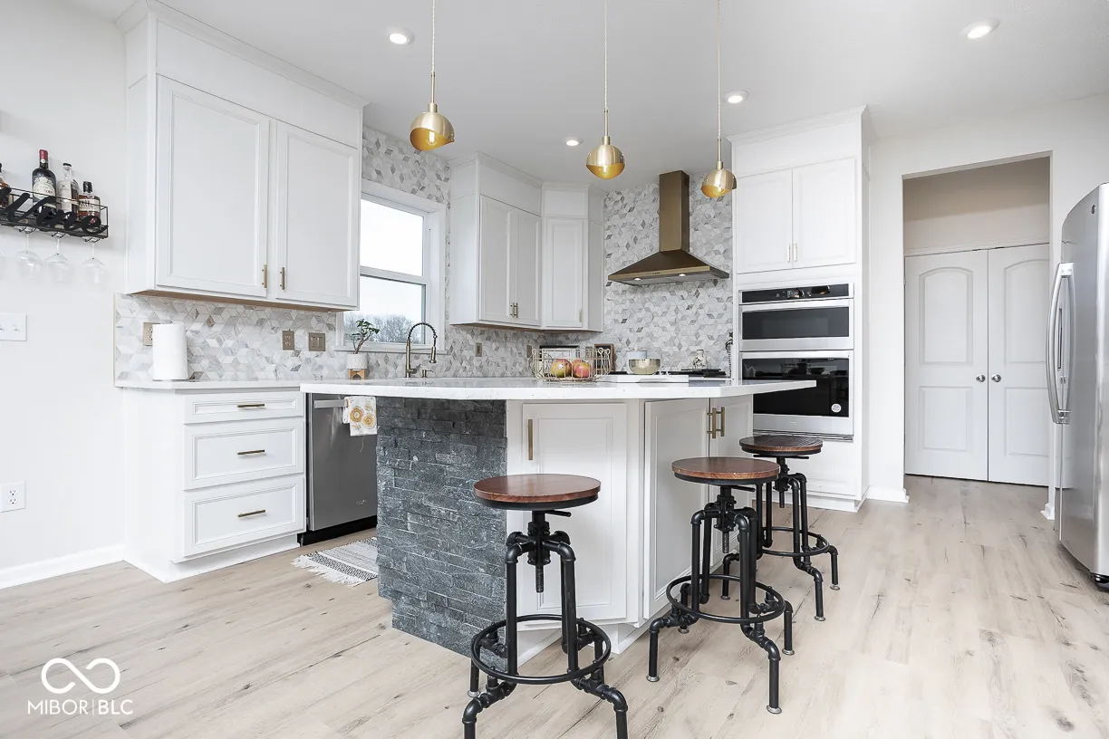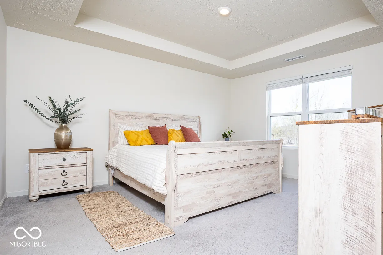Stunning 5-bedroom, 3-full bath home with a 3-car garage and premium upgrades throughout. Features a rare main-level guest suite with full bath-perfect for guests, multi-generational living, or a home office. The chef’s kitchen offers ceiling-height white cabinetry, quartz countertops, designer backsplash, stainless-steel appliances, a large island, and walk-in pantry, opening to the dining area and great room with a cozy gas fireplace. Upstairs includes a private owner’s suite with tray ceiling, custom walk-in closet, and ensuite bath, plus three additional bedrooms with walk-in closets and a spacious loft. Enjoy the oversized patio with pergola and firepit overlooking a scenic pond. Convenient to Hazel Dell Rd, 146th St, US-31, Clay Terrace, and Dillon Park. Major systems only 2.5 years old, plus smart thermostat, Ring doorbell, and security cameras.