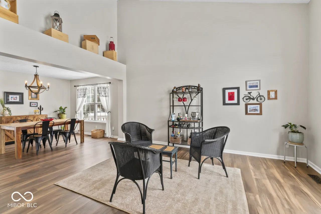 Nestled in Fishers, IN, this residence presents an attractive property in great condition, offering a distinguished setting for aspirational living. The inviting living room provides an expansive atmosphere with its high ceiling, creating an airy sense of openness. A charming fireplace serves as a focal point, perfect for quiet evenings, while thoughtfully integrated built-in shelves offer elegant display opportunities for cherished possessions. Culinary endeavors become a delight within the sophisticated kitchen, featuring a stylish backsplash that complements the design. A kitchen island stands ready for both meal preparation and casual gatherings, surrounded by the enduring elegance of stone countertops and the refined aesthetic of shaker cabinets. Discover a serene personal retreat within a comfortable bedroom, complete with the convenience of an ensuite bathroom. This private sanctuary ensures ease and relaxation, while a separate bathroom boasts a double vanity for effortless morning routines and a spacious walk in shower, promising a refreshing experience. Beyond the interior, a dedicated laundry room simplifies daily tasks, contributing to a seamless living experience. The exterior offers a private haven with a fenced backyard, ensuring peaceful enjoyment. A welcoming deck extends the living space outdoors, providing an ideal setting for an outdoor dining area, perfect for enjoying meals under the open sky, and a versatile outdoor living space that invites relaxation and leisure. This property provides a remarkable foundation for crafting a life of comfort and refined enjoyment.