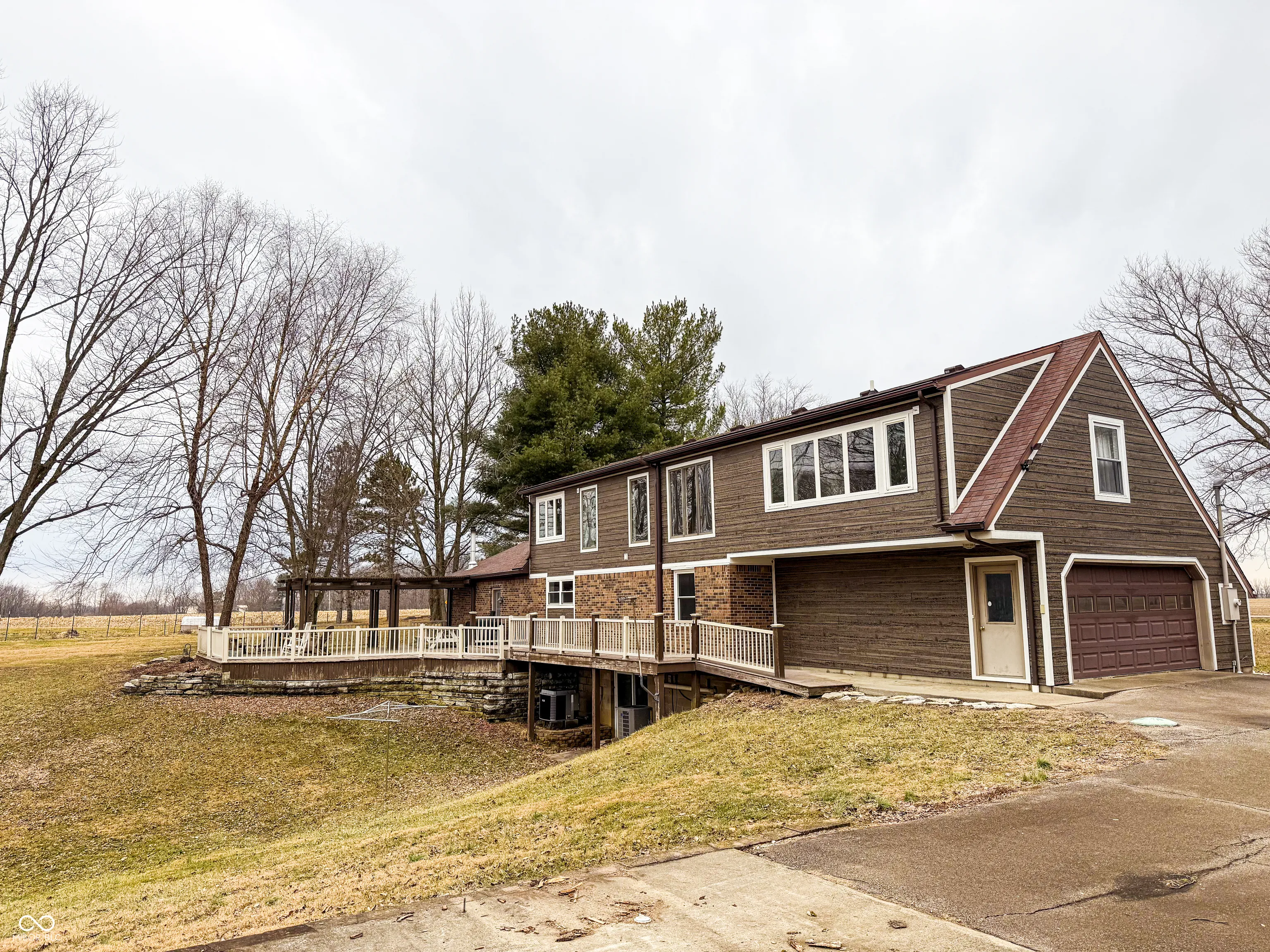 Welcome to this truly unique home situated on just over 4 acres on the outskirts of Greensburg, Indiana. With space, versatility, and thoughtful updates throughout, this property offers something for everyone. The main level features a spacious living room, an updated dining room, a full bathroom, bedroom, and a mudroom perfect for everyday convenience. The beautifully remodeled kitchen is equipped with stainless steel appliances and opens into a stunning living area highlighted by a cozy wood-burning stove and accent wall. Upstairs, you’ll find the large primary en-suite complete with new flooring, a walk-in closet, additional closet, and full bath. This level also includes a second bedroom suite, with a beautifully updated full bathroom, the laundry room, and a spacious bonus/living area offering flexibility for work or relaxation. The partially finished walk-out basement provides additional living or storage space, and the attached two-car garage offers ample room for vehicles and equipment. Attached to the main home is a gorgeous porch perfect for entertaining or simply relaxing and enjoying the surrounding nature. The above-ground pool was used for only one summer, and the garden area is ready for your personal touch. Step outside and enjoy everything this property has to offer. A guest house sits privately on the property and includes a full kitchen and living area, washer and dryer, half bath, large bedroom, and full bathroom-ideal for out-of-town guests or extended stays. There is also an additional garage and storage building, ensuring plenty of space for all your needs. This property truly sets itself apart with space, versatility, and country charm just minutes from town.