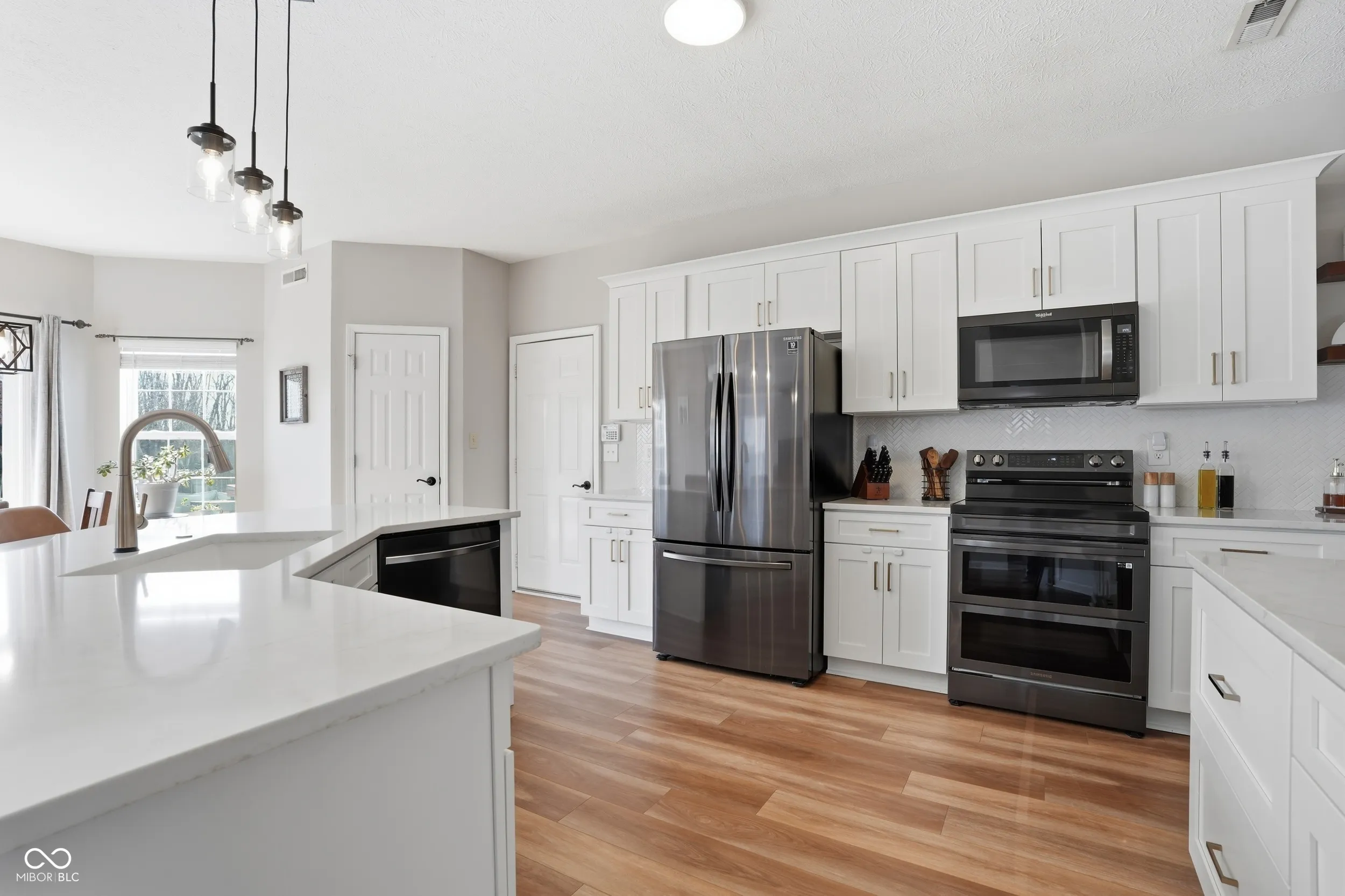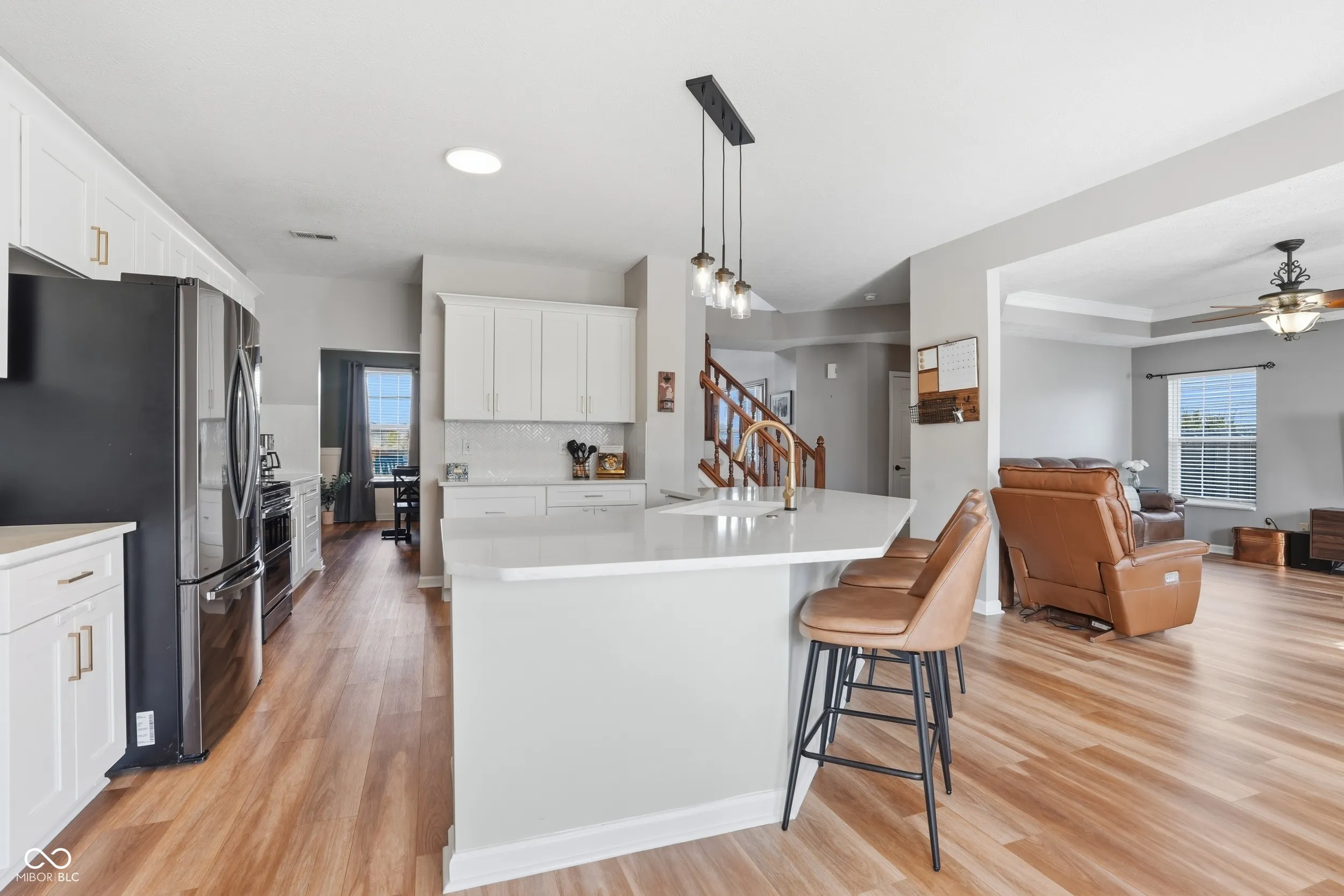 This lovely two-story home features beautiful and practical updates, creating a special opportunity for househunters. Offering 4 bedrooms, 2.5 baths, as well as multiple living and dining spaces, this home is completely turn-key and conveniently located. This home has been lovingly updated with a brand-new kitchen remodel, including soft-close cabinets with upgraded roll-out drawers, quartz countertops, a herringbone tile backsplash, hardwired under-cabinet lighting, a touch-activated sink faucet, open shelving over the coffee bar, and light fixtures. Flooring for the entire main level of the home has been updated with luxury vinyl plank, new carpeting on the staircase, new LVP on the landing upstairs, and new vinyl tile in the laundry room, which also features new wooden shelving. Other important updates include a new furnace in 2023 (AC 2019), a new duo flex double oven (2025), smart thermostat (2023), and water heater (2022). You’ll love the fully-fenced backyard with a large stamped-concrete patio, the side-loading 3-car garage, and a wide, covered front porch.
