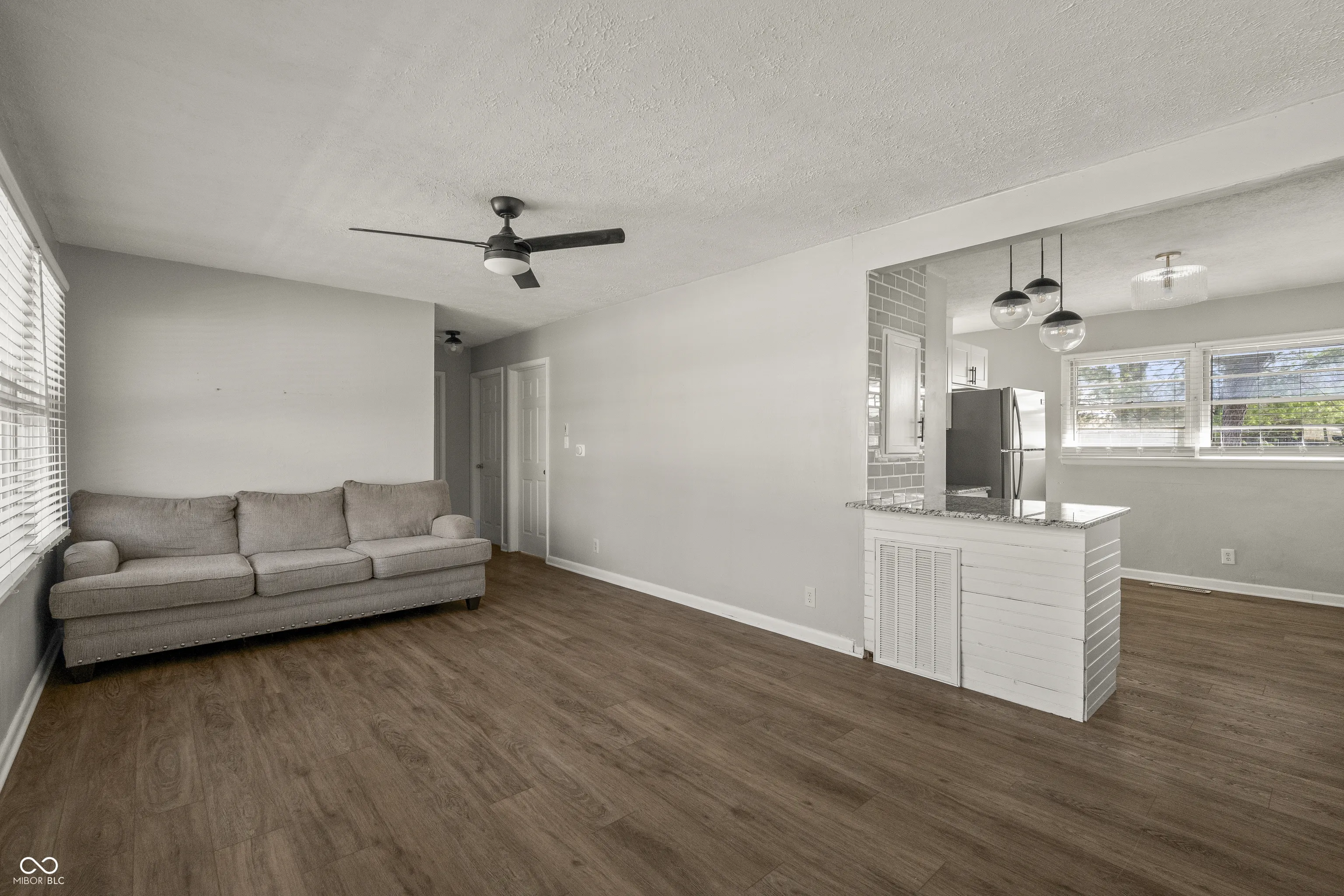 Welcome to this beautifully updated 3-bedroom, 1-bath bungalow nestled in the quiet Creekwood neighborhood of Washington Township, known for its spacious lots and mature trees. Ideally located just minutes from Nora, Broad Ripple Village, and beloved Sullivan Garden Center. The recently renovated kitchen is the heart of the home, featuring sleek edged granite countertops, a large new sink basin with updated faucet, white shaker soft-close cabinetry, shiplap backsplash, and stainless steel appliances. The breakfast bar opens seamlessly into the main living space – perfect for morning coffee or casual entertaining. The main bathroom has also been thoughtfully updated with fresh paint, a new vanity, tiled surround, and striking gold fixtures. Luxury vinyl flooring adds both durability and style throughout the home. Downstairs, the partially finished basement offers incredible versatility – ideal for an entertainment area with built-in bar, game room, home gym, or flex space to fit your needs. Step outside to a dual-level back deck designed for hosting, surrounded by mature trees and a fully fenced backyard that offers privacy and a peaceful setting. Convenient access to the two-car garage is located just off the back. Major mechanical update: HVAC replaced in 2025. This move-in-ready home blends thoughtful updates, functional space, and a prime location – don’t miss your opportunity to make it yours.
