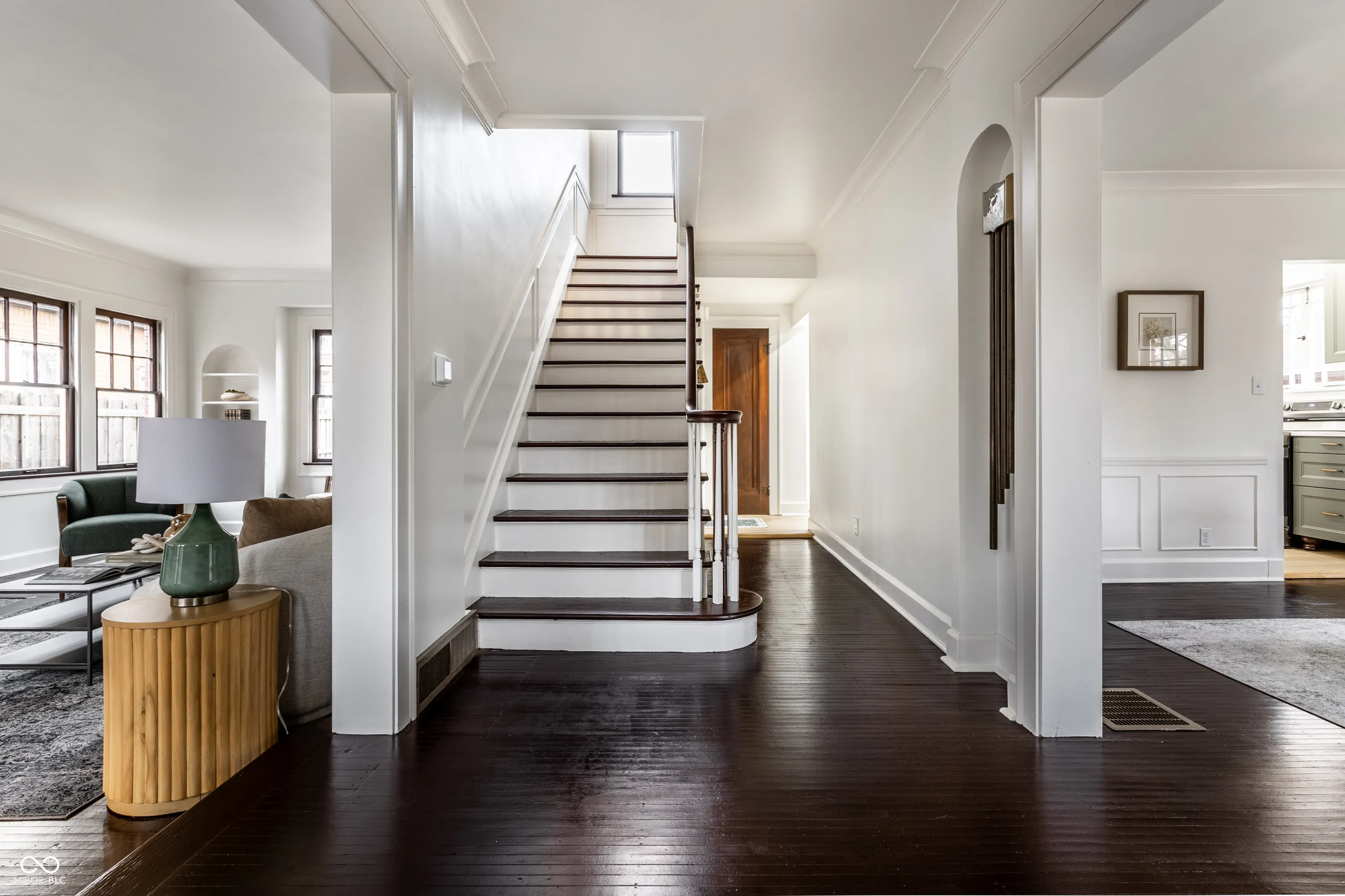 Carefully restored historic home in Irvington where every detail was thoughtfully revived. Refinished hardwood floors, a grand entry staircase, and two sets of French doors leading to the front porch, create a warm welcome. The renovated kitchen features muted green cabinetry, quartz counters, stainless appliances, and a charming breakfast nook, plus an adorable half bath on the main level. Upstairs offers three bedrooms, including a beautiful primary suite with a stunning attached bath and walk-in closet. Two guest rooms share a full bath with tub/shower combo. The partially finished basement includes a family room, decorative fireplace, wet bar, block windows, and half bath, plus storage with a new tankless water heater, softener, and furnace. New roof, gutters, driveway retaining wall, and landscaping. Across from the trail to Ellenberger Park!