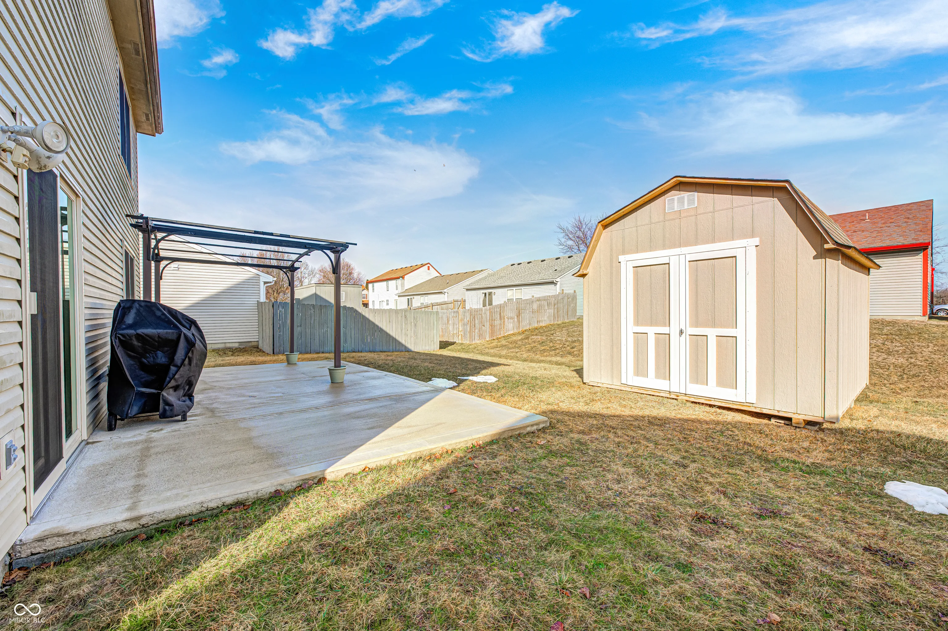 Nestled in a welcoming neighborhood, this beautifully maintained two-story home is ready to elevate your living experience. Step inside to discover a thoughtfully designed kitchen, complete with a stylish backsplash that blends elegance with everyday practicality. With 1,636 square feet of living space, the home offers three inviting bedrooms, including a primary suite with its own ensuite bathroom, a perfect retreat at the end of the day. Two full bathrooms, one featuring a serene tiled walk-in shower, and a convenient half bath round out the home’s functional layout. The charm continues outdoors, where a distinctive gambrel roof adds character, and a carefully crafted outdoor living space awaits. Picture yourself relaxing on the patio under the pergola, or enjoying the backyard making it a perfect spot for play, gardening, or simply unwinding. A practical storage shed adds even more convenience. This home is more than just a house; it’s a lifestyle upgrade, blending comfort, style, and functionality in one exceptional package. Don’t miss the chance to make it yours!