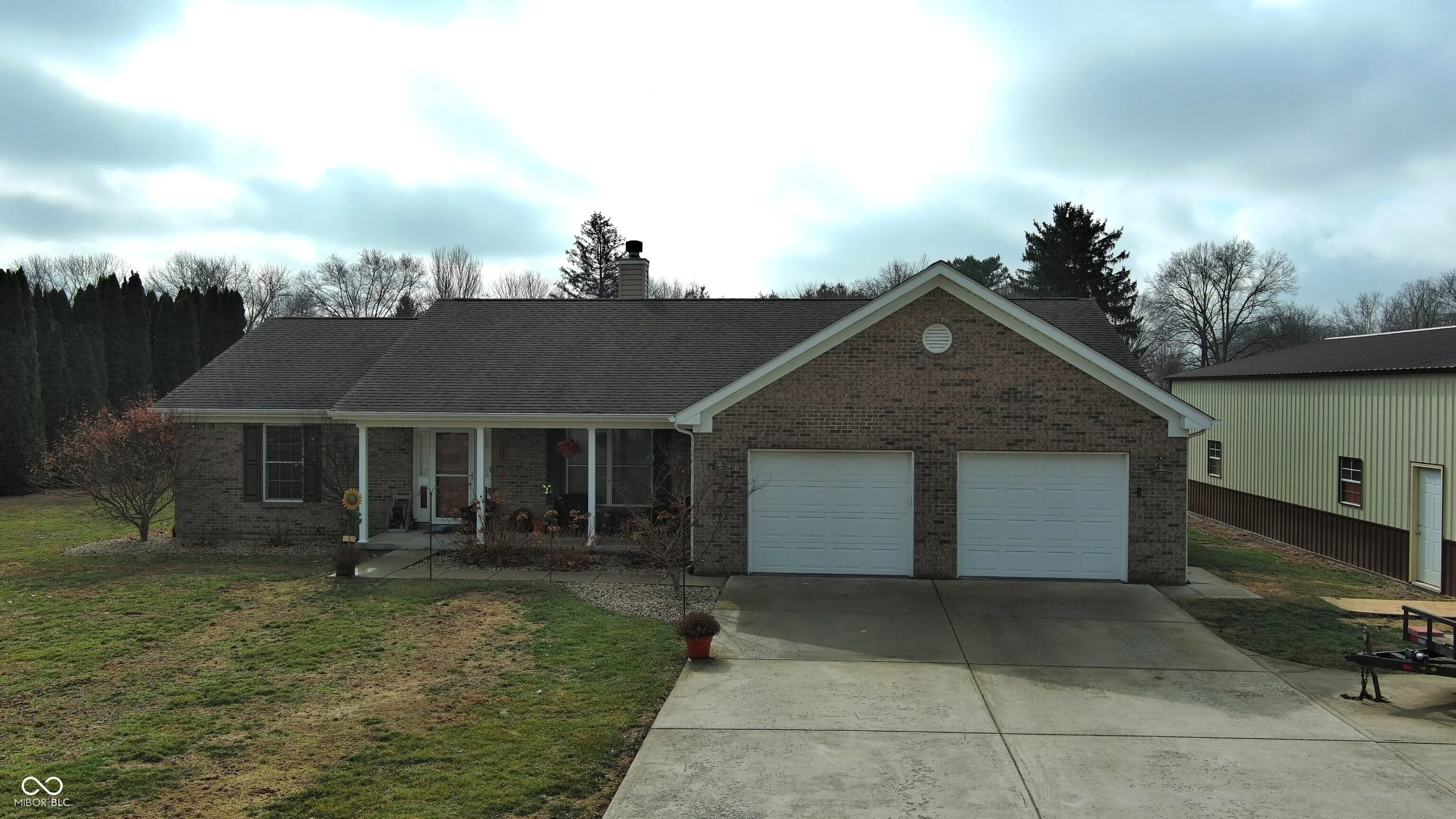 Welcome home to this beautifully maintained **3-bedroom, 2-bath** full brick residence built in 2014 and loaded with desirable amenities! This newer home offers a spacious living room featuring cathedral ceilings and a cozy woodburning fireplace-perfect for relaxing evenings or entertaining guests. The kitchen is well-appointed with vinyl plank flooring, a convenient breakfast bar, and all appliances included, making move-in a breeze. An adjoining room to the kitchen can be used for either a family room or dining room. The primary suite offers a large walk-in closet and a private en suite bath complete with a walk-in tile shower and an additional standard shower for added comfort and convenience. Enjoy the practicality of a 2-car attached garage plus a brand-new 42×30 pole barn with two automatic overhead doors-ideal for hobbies, storage, or workspace needs. The home also includes like-new front load washer and dryer. Property is available at closing-move in and start enjoying your new home right away!