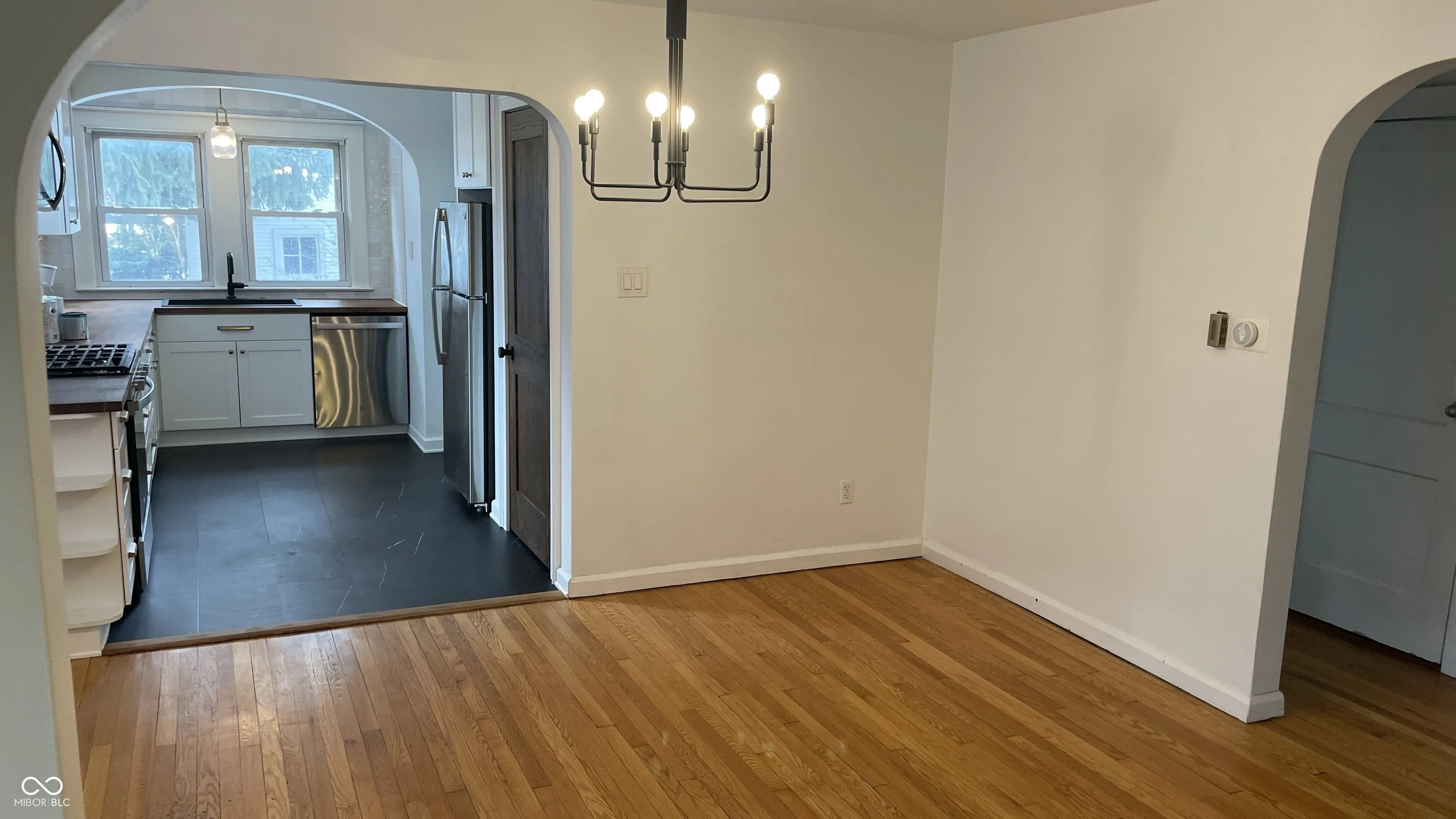 Charming 2-bedroom, 1-bath bungalow full of character and modern updates! Relax on the inviting front porch and enjoy a location just minutes from Garfield Park, the Garfield Park Conservatory, local restaurants, Fountain Square, and downtown Indianapolis. Inside, the updated kitchen features stylish butcher block countertops, tile backsplash & flooring, stunning cabinetry with gold hardware, and a huge walk-in pantry with a dedicated coffee bar-perfect for everyday convenience and entertaining. The new stainless gas stove/oven combination and dishwasher offer the complete package. The bathroom has been tastefully updated with new lighting, cabinetry, tile and shiplap while preserving the home’s charm. Original details shine throughout, including distinctive arched doorways that add warmth and character as well as original hardwood flooring in the main living area and the bedrooms. Basement is unfinished currently, but could be used for additional space. Nice fenced in back yard leads to a 1 car garage with driveway space and covered carport area. Steps from the neighborhood trail system-ideal for biking, walking, and running-with connections to Shelby bike lanes and the Indianapolis Cultural Trail. Enjoy the farmer’s market on Saturdays all summer, local concerts and more.