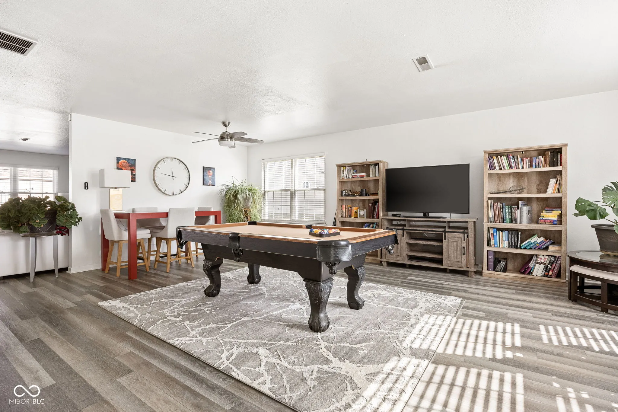 Endless space and style in this stunning home in Creekside Commons! You’ll love the contemporary front door that leads into this modern space. Luxury vinyl flooring throughout the main level has been upgraded and offers both convenience and a designer touch! Black stainless steel appliances are top-of-the-line. Sleek cabinetry and neutral countertops offer a nice backdrop in this spacious kitchen. Large eat-in area/breakfast nook could easily accommodate an island AND dining area if you choose. A sun-filled breakfast nook is a great spot to start your day with a cup of warm coffee! The family room is generous in size and anchored by a timeless fireplace. Front flex room can serve any number of uses – currently a game room… but could make a great play/hobby area, office, dining, or formal living area! Choose to suit your needs! A wide staircase leads up to a large landing that offers the primary suite to the left and the guest rooms to the right! You’ll notice soaring cathedral ceilings in the primary and a huge footprint for this suite. Over 400 sq feet! Dual vanities in the primary bath, a soaker tub and separate shower, plus an enormous walk-in closet are sure to please. The guest bath also offers double sinks. Three additional spare bedrooms upstairs with massive walk-in closets. You won’t be disappointed with the storage this home has to offer! Not to mention, you have a large 16×10 storage shed in the backyard! 2 car attached garage tops it off! Last but not least, the amenities include a park/playground, pool, trails and basketball… all within walking/biking distance to several Brownsburg schools!!!