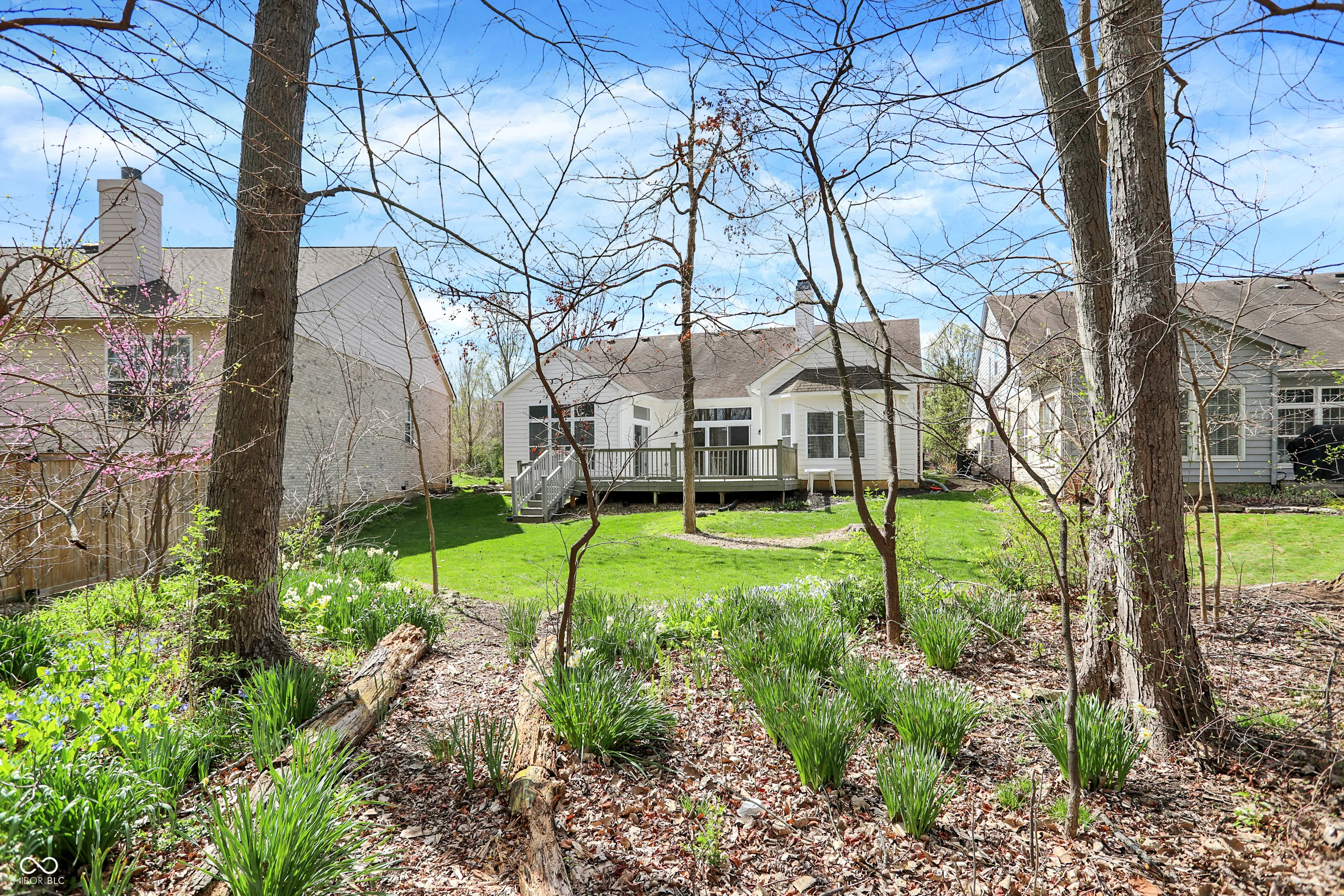 Beautiful home set on a desirable lot in Fairgreen Trace, offering a perfect blend of comfort, location, and curb appeal. This 3-bedroom, 2-bath home features 2,536 square feet of well-designed living space with 10-foot ceilings and abundant natural light throughout. The main level showcases hardwood floors and a spacious great room with a cozy gas fireplace and oversized windows that frame stunning views of the private 5-acre wooded backdrop. The kitchen comes fully equipped with all appliances, and the washer and dryer are also included for added convenience. Enjoy the peaceful setting year-round from the large composite deck or the inviting den/sunroom overlooking the woods-perfect for relaxing or entertaining. Upstairs, you’ll find a versatile bonus room along with massive attic storage. Additional highlights include a sprinkler system and security system, making this home as practical as it is beautiful. Ideally located less than half a mile from the entrance to the Monon Trail, just one mile to the Monon Center, and only 1.5 miles to concerts at the gazebo, this home offers easy access to some of the area’s best amenities-perfect for walking or biking. This is a rare opportunity to own a home with beautiful wooded views in a highly sought-after neighborhood.”