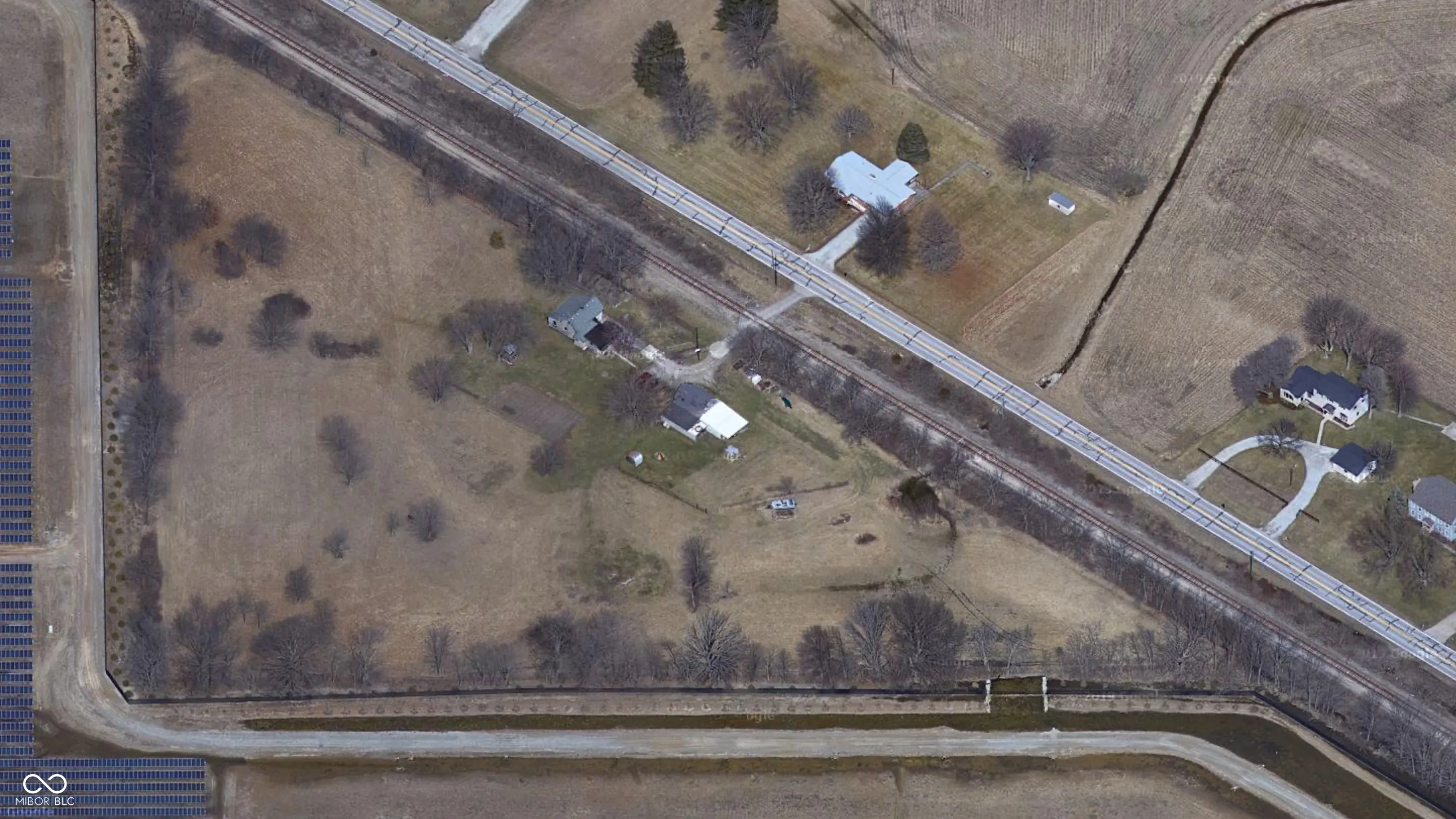 Situated on 5.36 secluded acres, this single-family home offers a unique opportunity for investors or handy homeowners ready to bring their vision to life. Surrounded by a solar farm, the property provides exceptional privacy and peaceful surroundings, complete with mature trees and a privacy screen fence. The home is a fixer-upper with solid potential. The roof is only 8 years old, offering a great head start on renovations. The main floor features a living room, kitchen, two bedrooms, and a full bath, with two additional bedrooms upstairs. Relax on the inviting front porch and enjoy your own private slice of country living. Additional features include a spacious barn with two garage doors, a rear lean-to, and an enclosed side storage area-perfect for equipment, hobbies, or extra storage. Access to the property is provided by an easement across the railroad tracks; the train passes just once daily in the afternoon. With over five acres of land and endless possibilities, this property is brimming with potential. Schedule your showing and come see the opportunity for yourself!