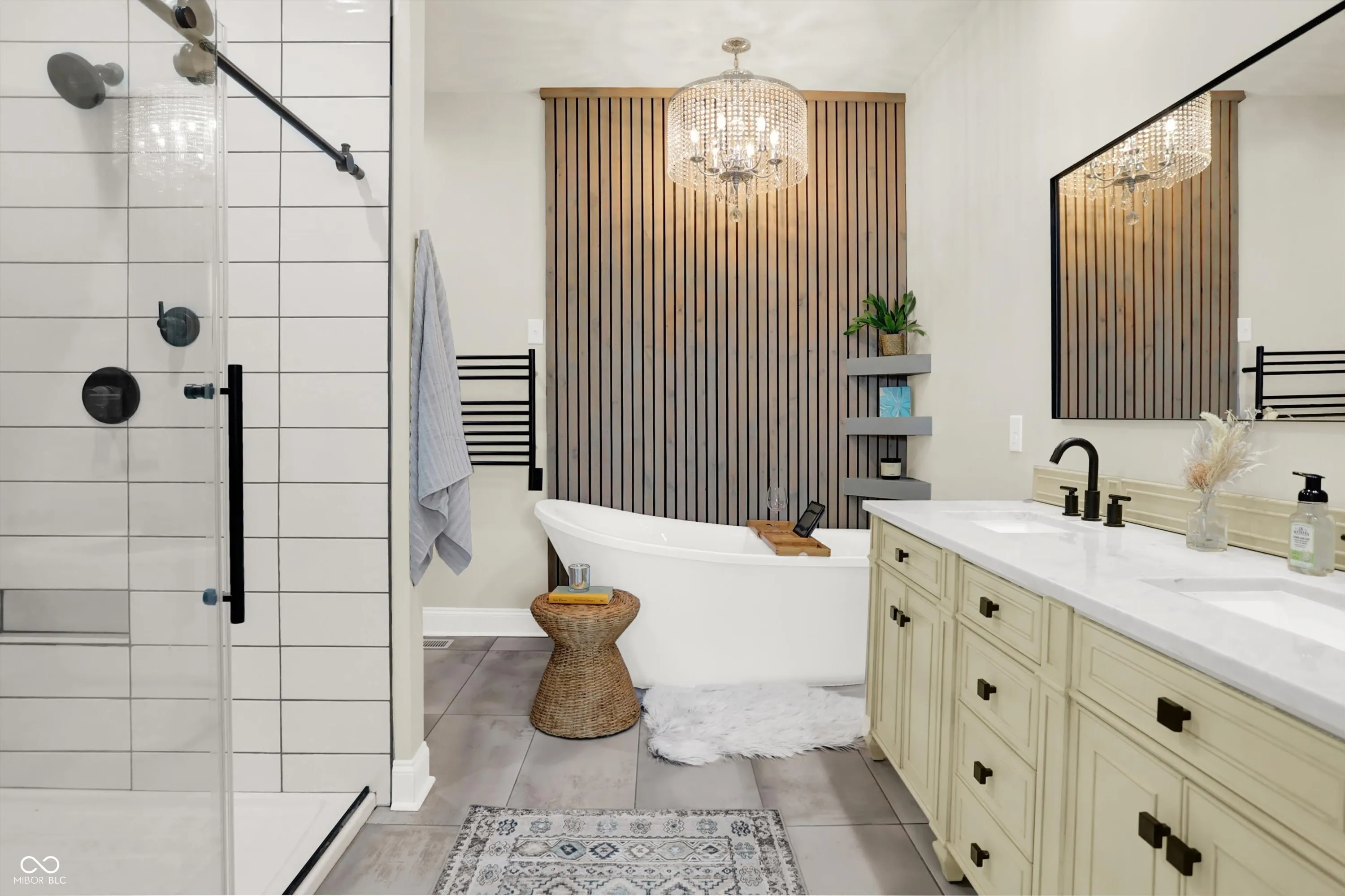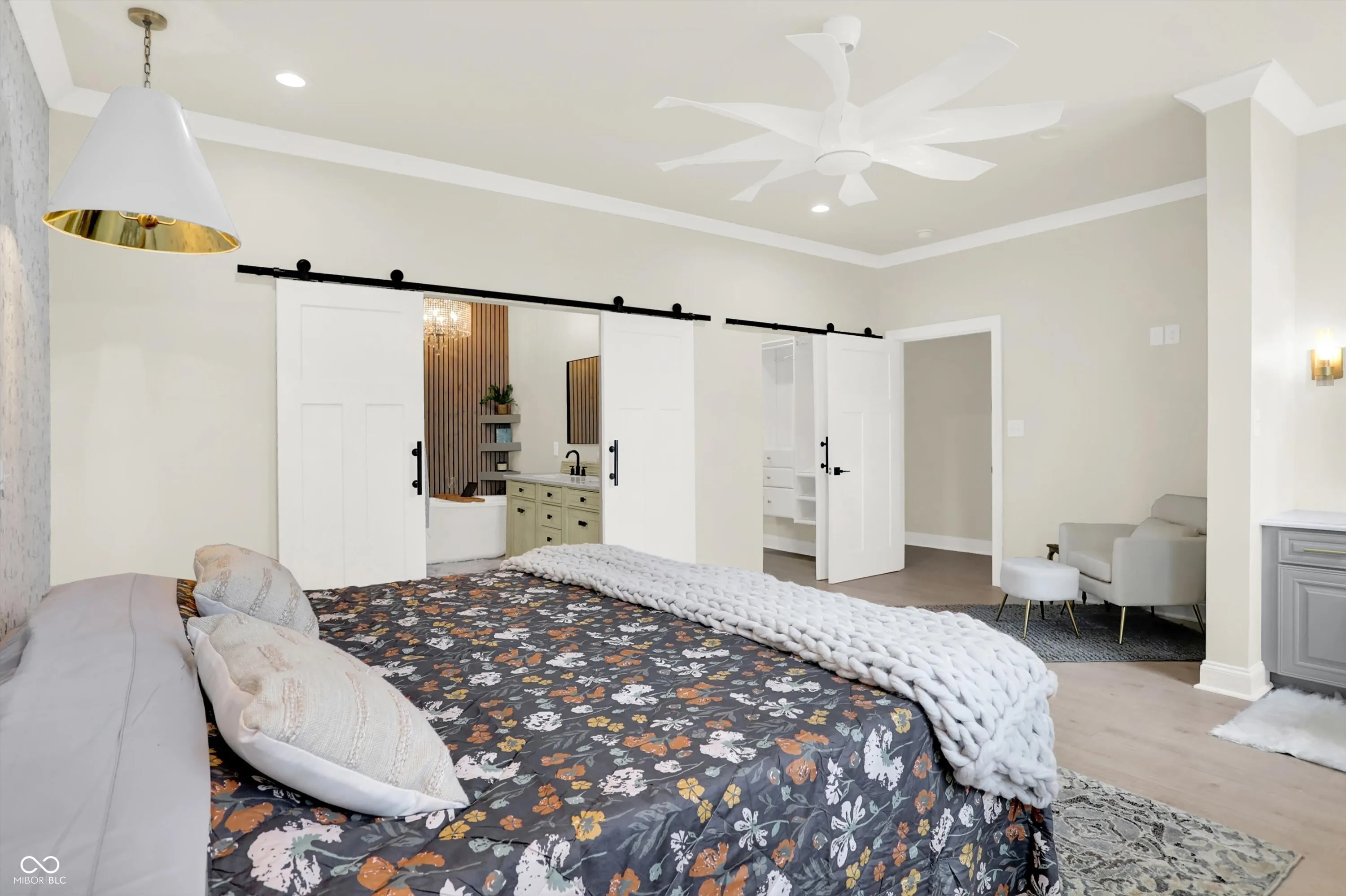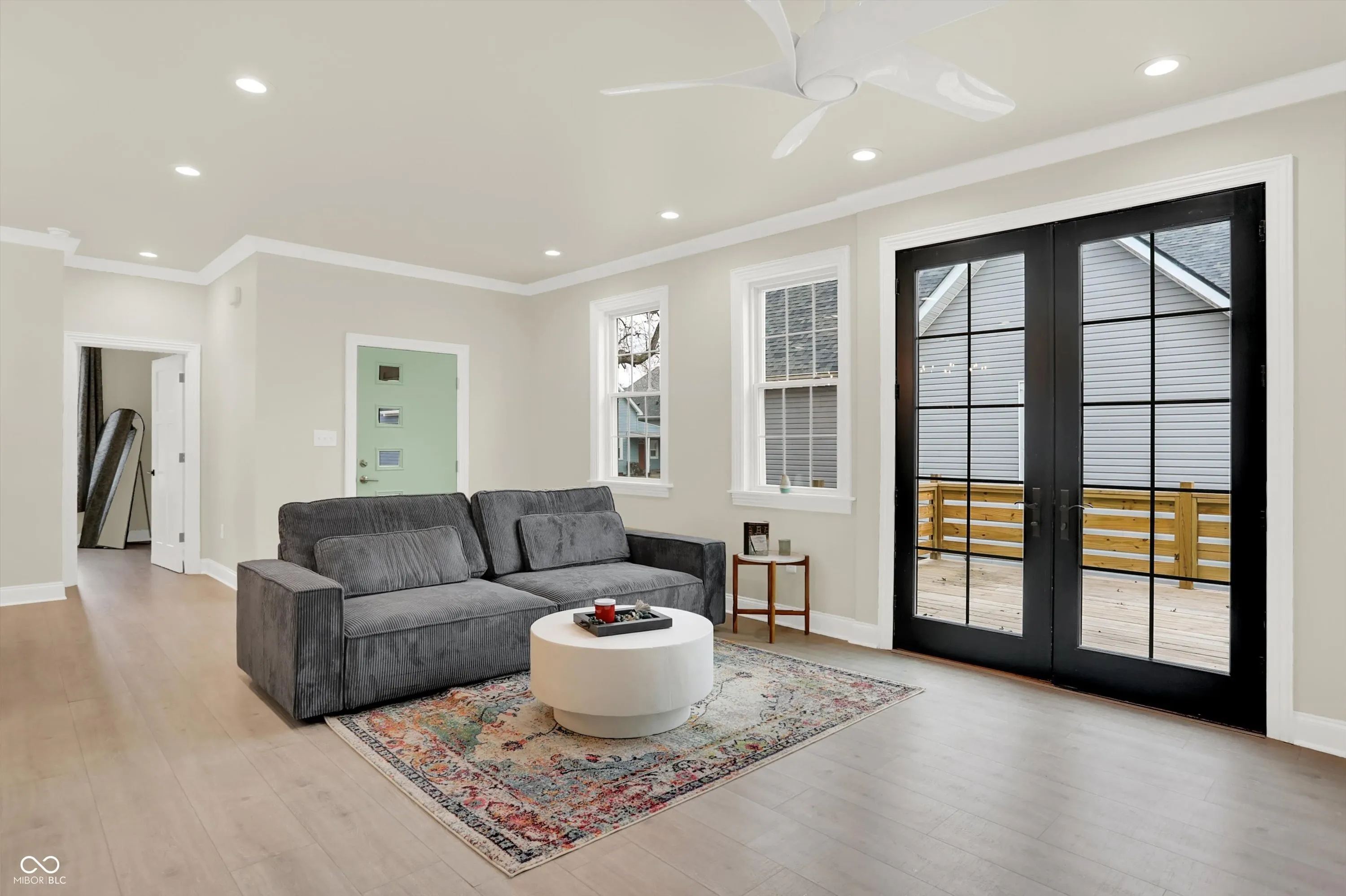 This stunning home could be your dream home or a turn-key investment. There is a Google Nest thermostat & video doorbell, high-efficiency tankless water heater and HVAC system. Nine foot+ ceilings, crown molding throughout. An open concept kitchen features a wet bar, wine cooler, high-end cabinetry w/ soft-close doors & drawers, quartz countertops, stainless steel appliances w/gas range & a big 6×6 island with an apron sink. All baths offer James Martin vanities and tile floors. The master suite offers a separate walk-in dual shower, shaving niche, & garden tub. Also featuring a built-in lighted mirror and a powder desk, as well as a large walk-in closet. Beautiful 8-foot Pella French Doors lead out to a large deck for entertaining. 1st floor laundry room. Buried utilities. Polaris windows. An oversized garage & fenced back yard! The house is equipped with a wireless SimpliSafe alarm system, which is compatible with the other Smart Home features. Six minute drive to Lucas Oil Stadium.