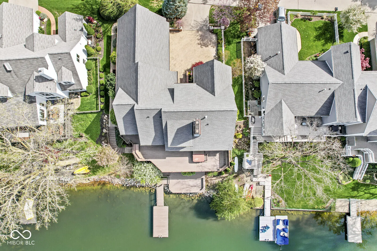 Once in a lifetime, Nantucket Bay masterpiece with breathtaking water views. Exquisite custom home stands as a testament to luxury living. Charm is enhanced by multiple decks and private boat dock, providing the perfect vantage point to soak in the beauty of the surrounding landscape. Step inside to discover a Chef’s kitchen equipped with Subzero and Wolf appliances, custom cabinetry and large center island. Seamless flow between the formal dining room and family room, adorned with a coffered ceiling, creates an inviting atmosphere for gatherings both large and small. Main level primary suite with a dream closet. Upstairs features a loft that overlooks the water, second ensuite bedroom and storage galore above the 3 car garage. Walkout lower level has two additional bedrooms ensuite, cozy family room with included pool table, wet bar and a climate-controlled wine room for the connoisseur. A dumbwaiter connects to the garage, ensuring effortless transportation of your prized collection. Embrace the low-maintenance lifestyle and immerse yourself in the tranquility of Nantucket Bay, where every day feels like a vacation.