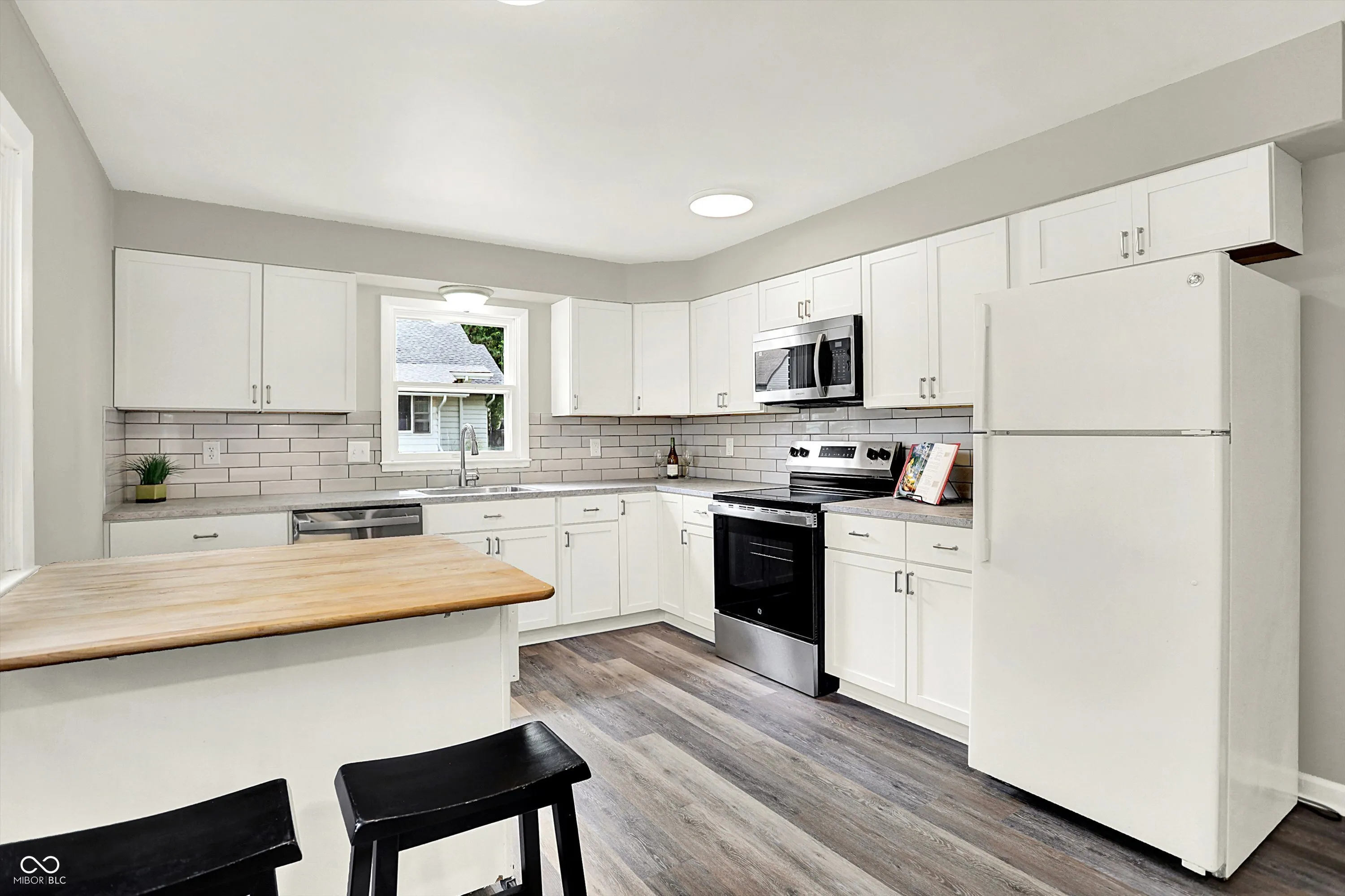 This Ranch has style! Totally updated, 1200 Sq Ft., 2 Bedroom, 2 Full Bath home now available for lease. Updated Kitchen with New Shaker cabinets, Kitchen island, backsplash The living room is spacious and with LVP flooring throughout. Both bathrooms showcase a beautifully tiled walk-in shower, alongside a double vanity offering plenty of space for daily routines Outside, a lovely porch extends a friendly greeting, and oversized 2+ Car garage with loads of storage and Mini barn. Easy walk or Bike to the Monon trail and miles of trails going south. Perfect option if you need a shorter term rental between building a home or longer term stay over 12 months.